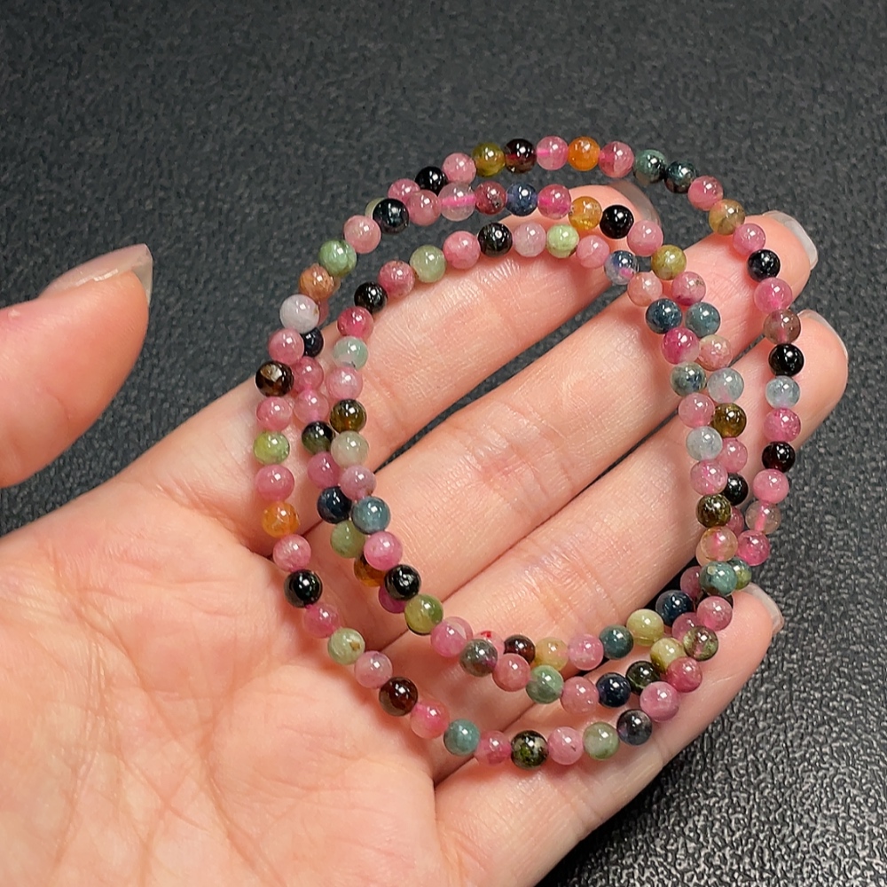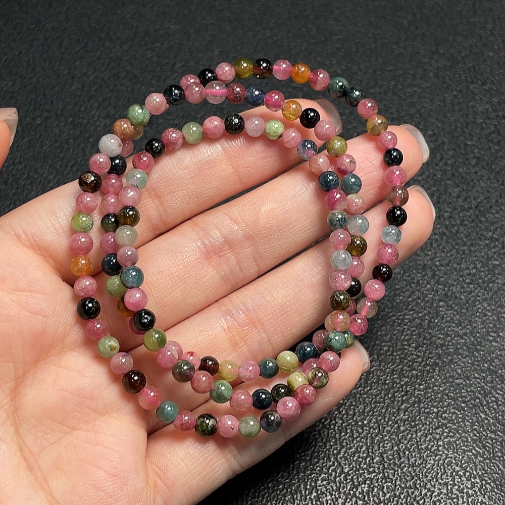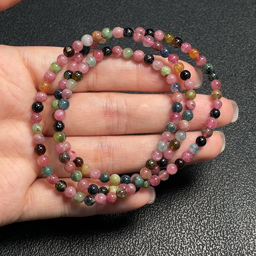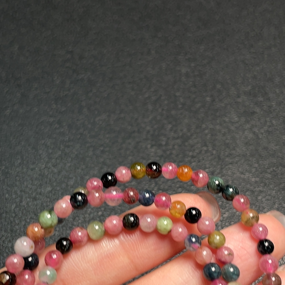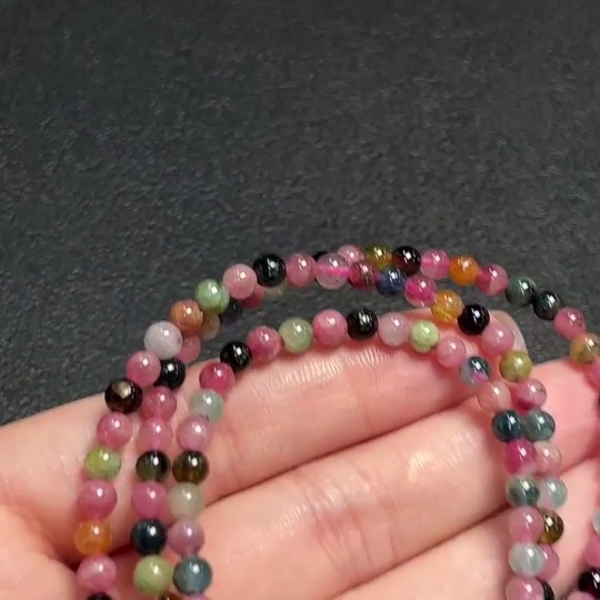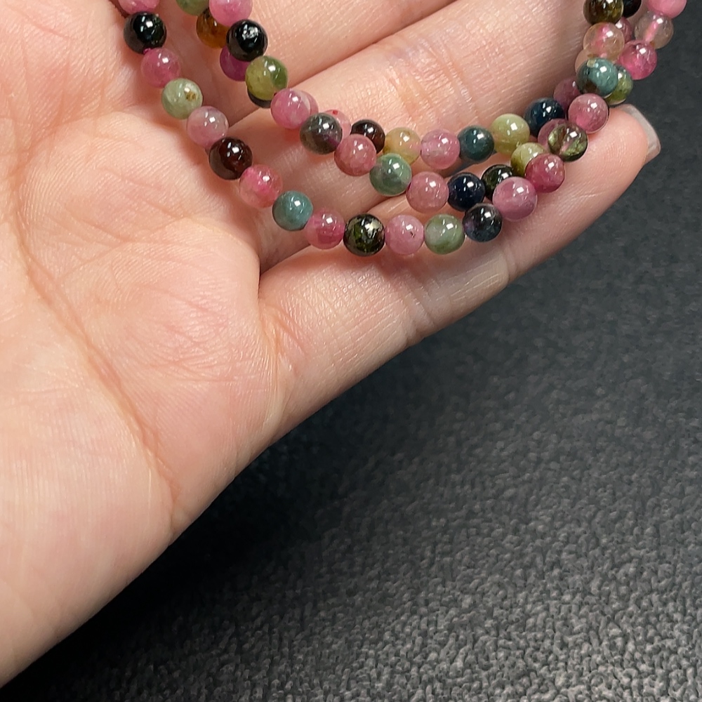 Tourmaline bead necklace with other mineral components, visible organic matter, total weight approx. 14.53g, bead size approx. 4.3mm (mixed stone)