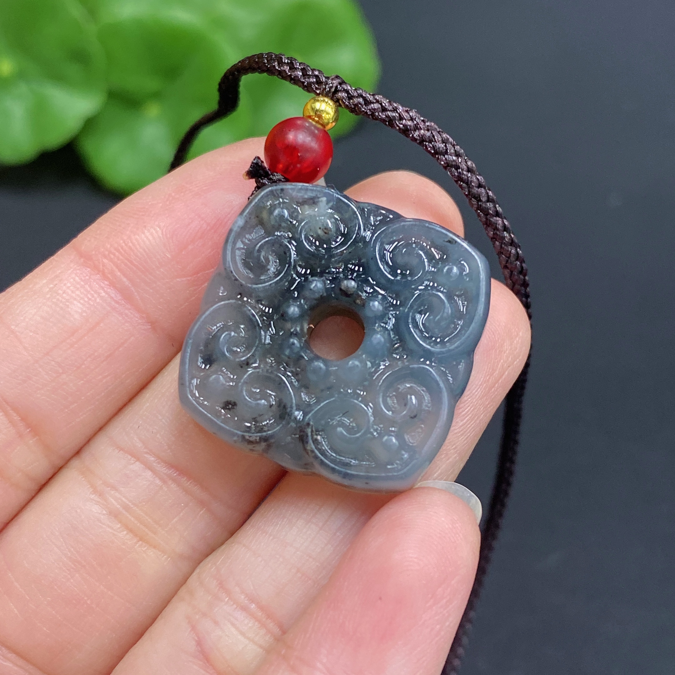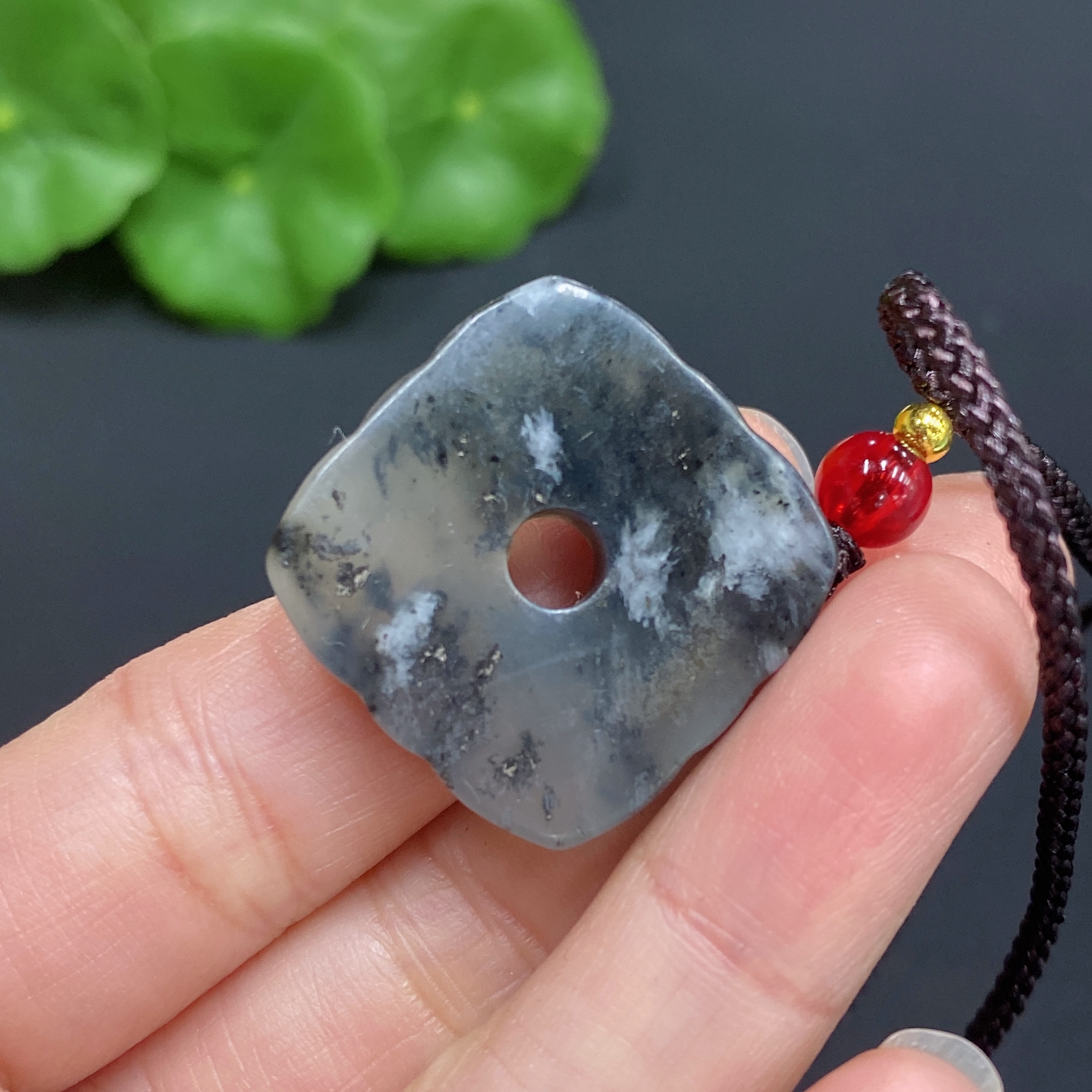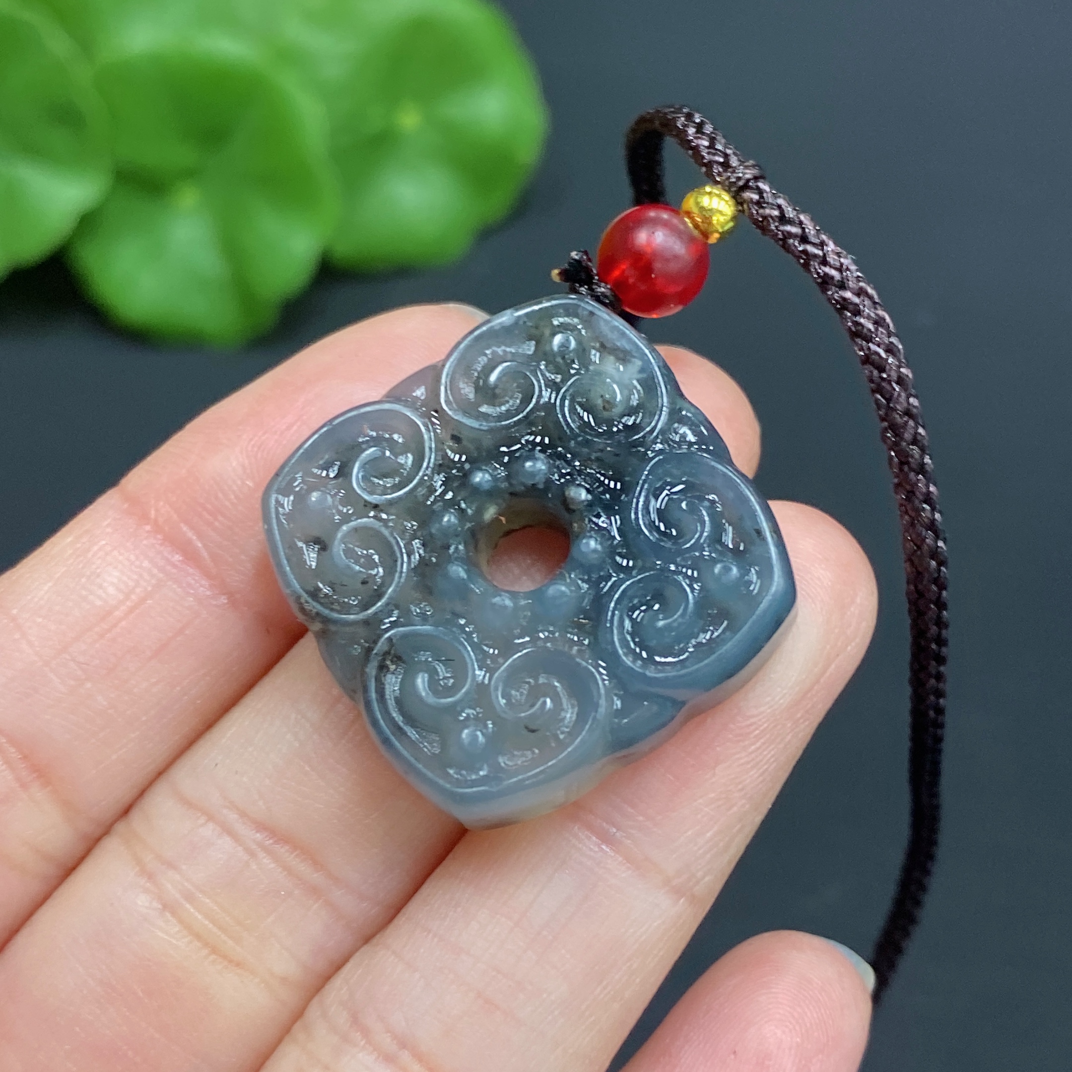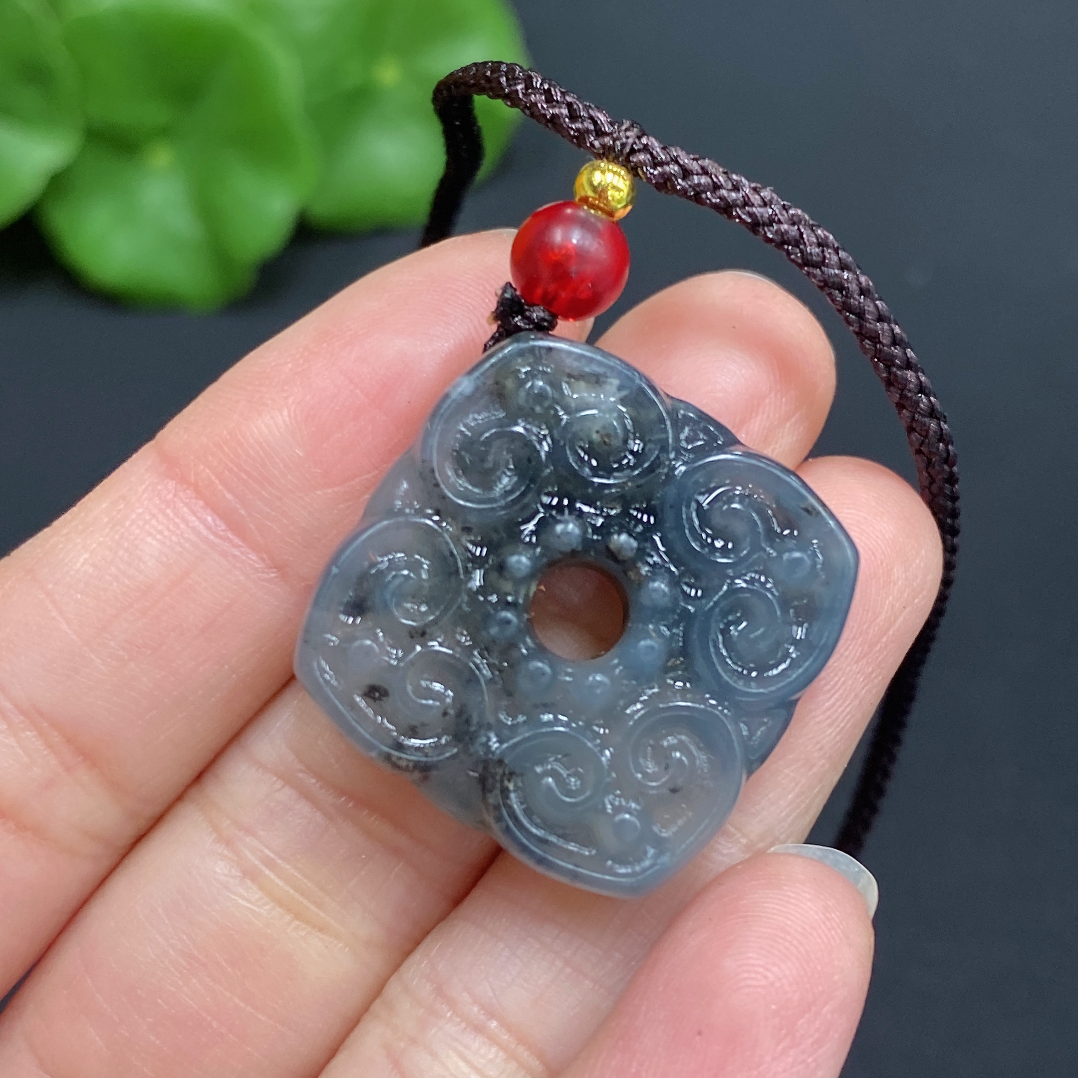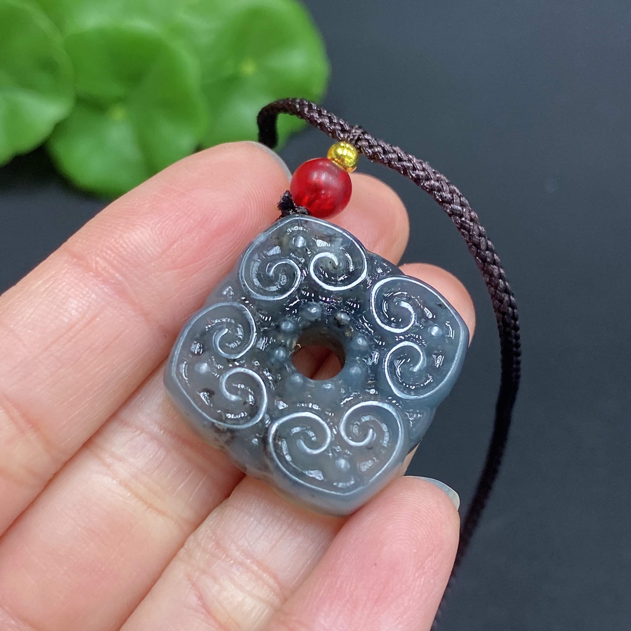 Xiuyu (serpentine jade) pendant, antique style, total weight approx. 9.3g (including rope)