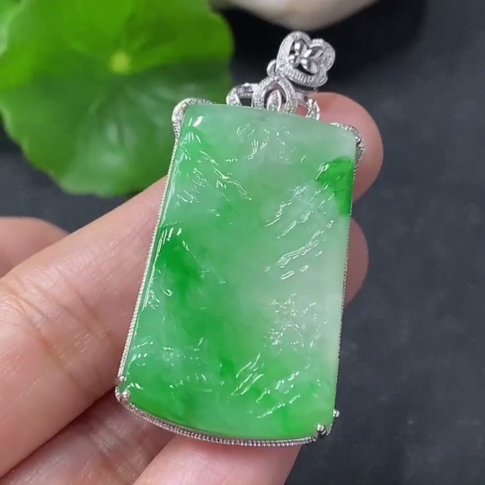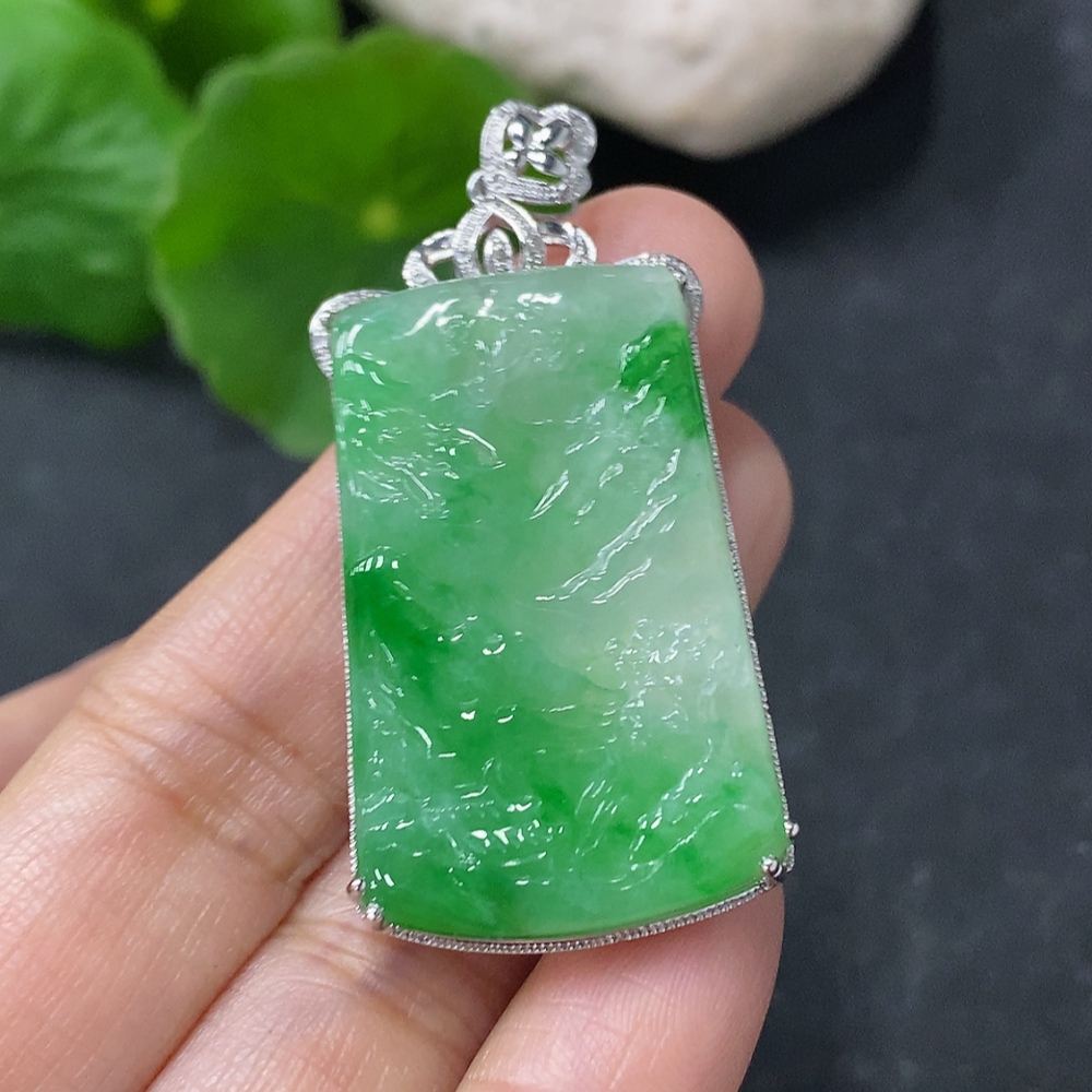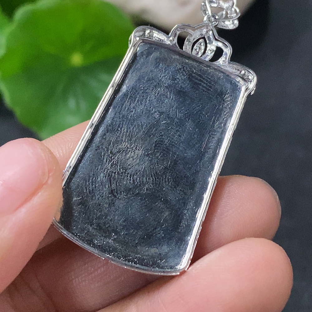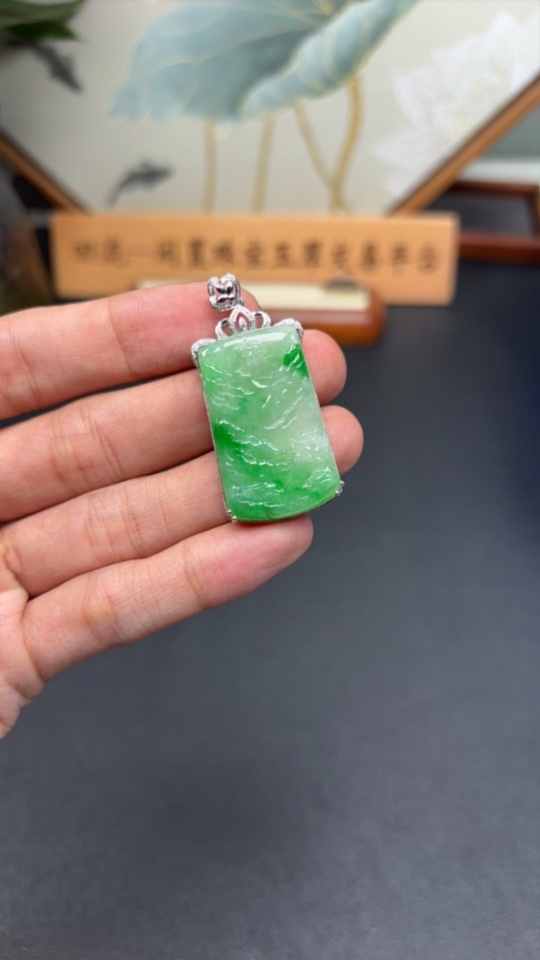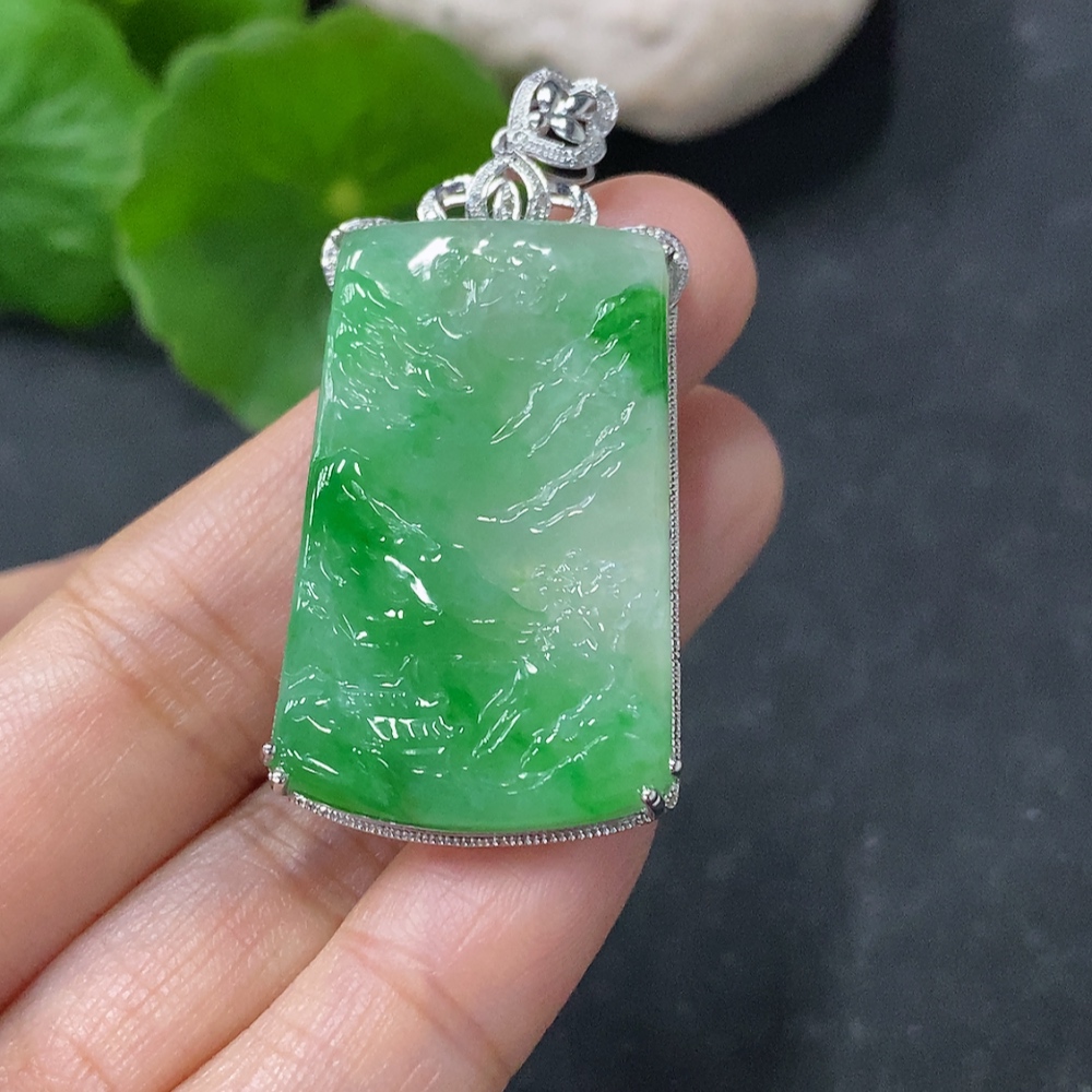 Jadeite Inlaid Landscape Pendant 18k Non-Diamond Total Weight Approx. 9.7g