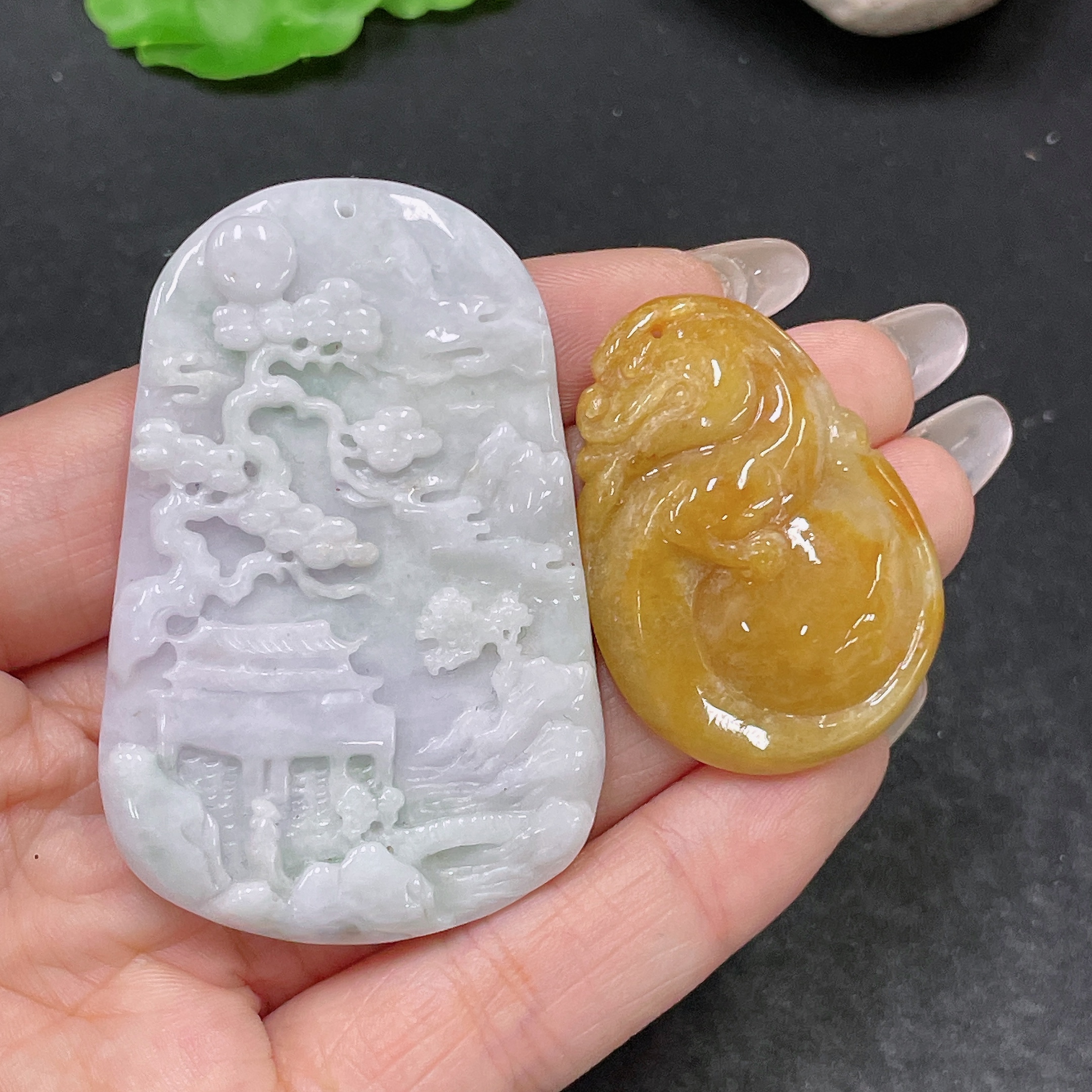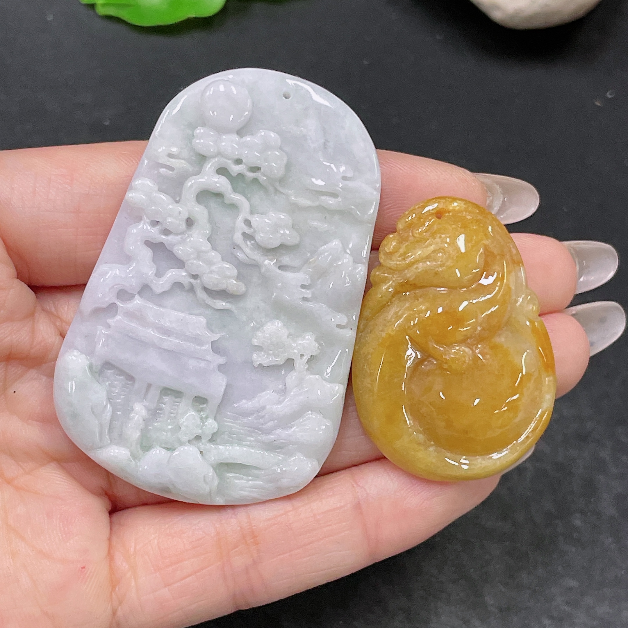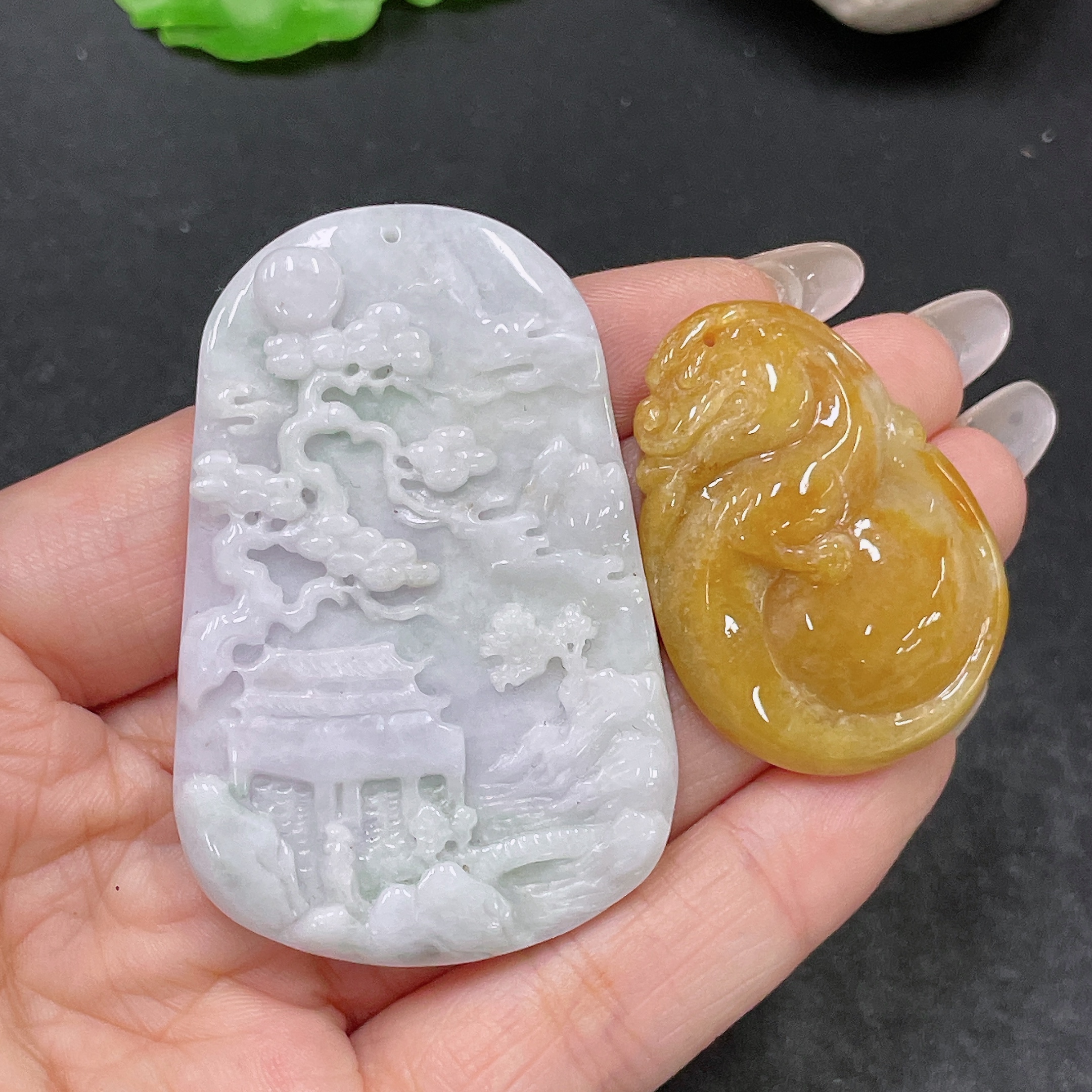 Jadeite Pendant Landscape + Gourd Sell as a Lot