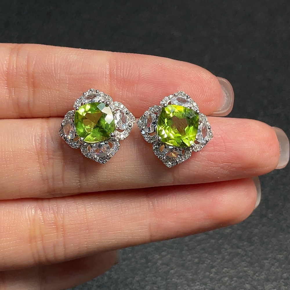 Peridot Earrings Non-Gold Total Weight Approx. 4.55g