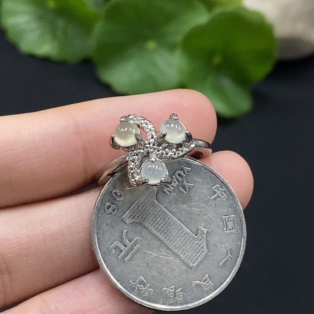 Jadeite cabochon ring, non-gold setting, adjustable, total weight approx. 2.52g
