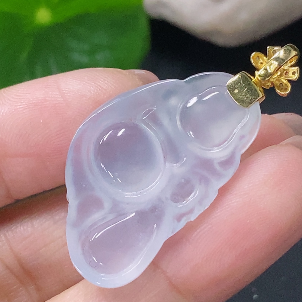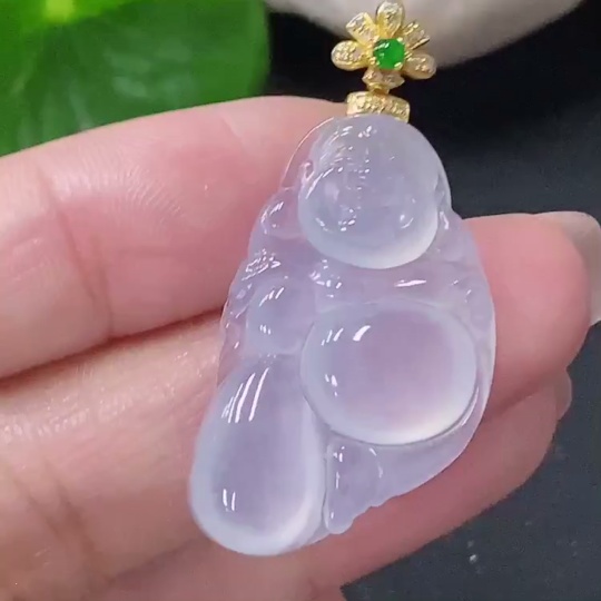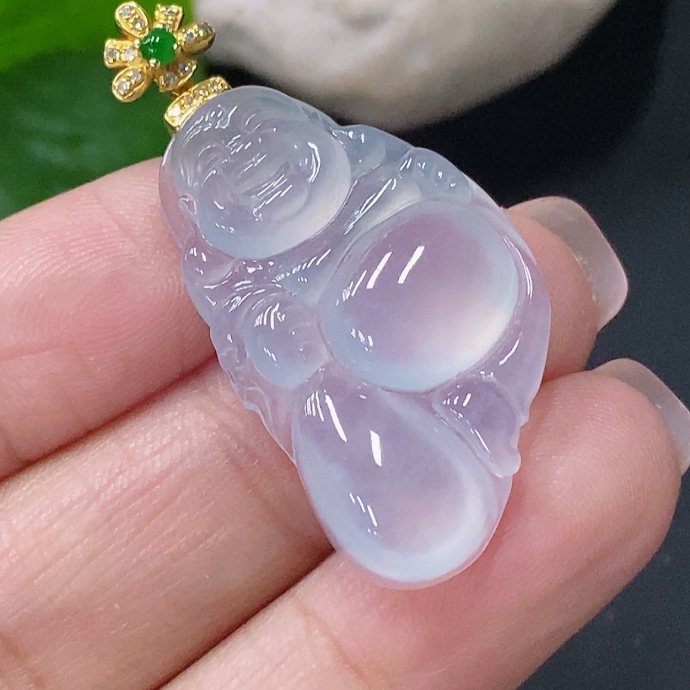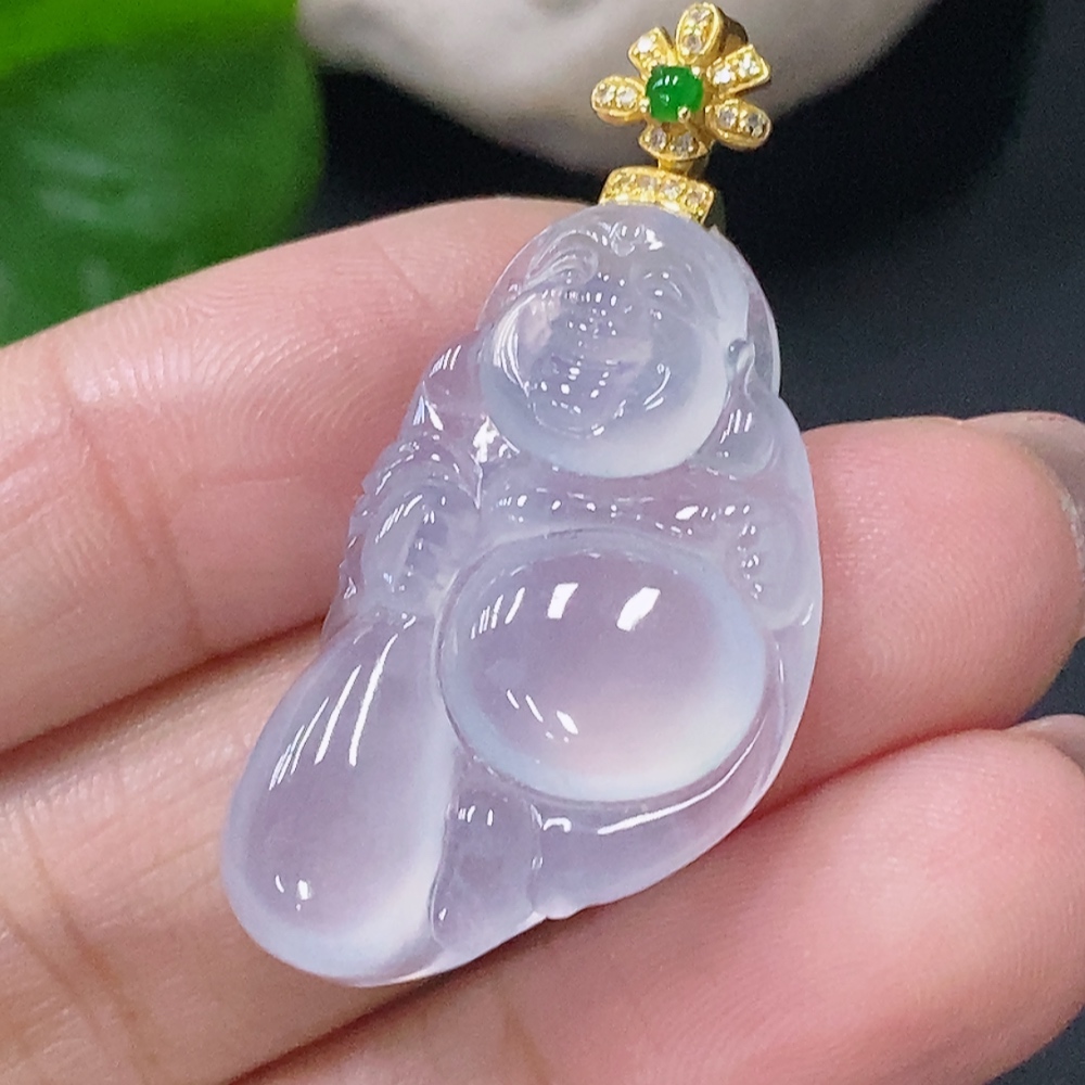 Jadeite Pendant Buddha with 18k Gold and Diamond Accents, Total Weight Approximately 5.6g