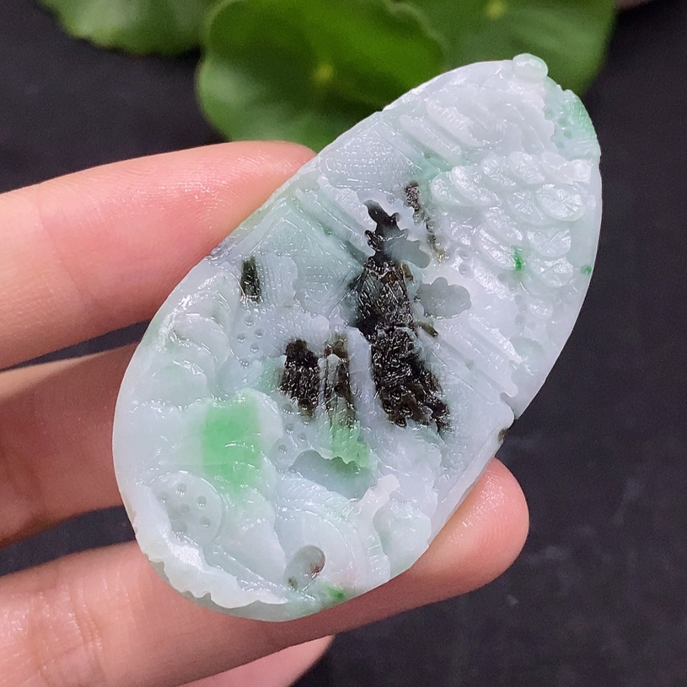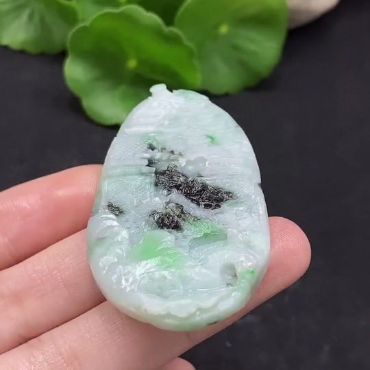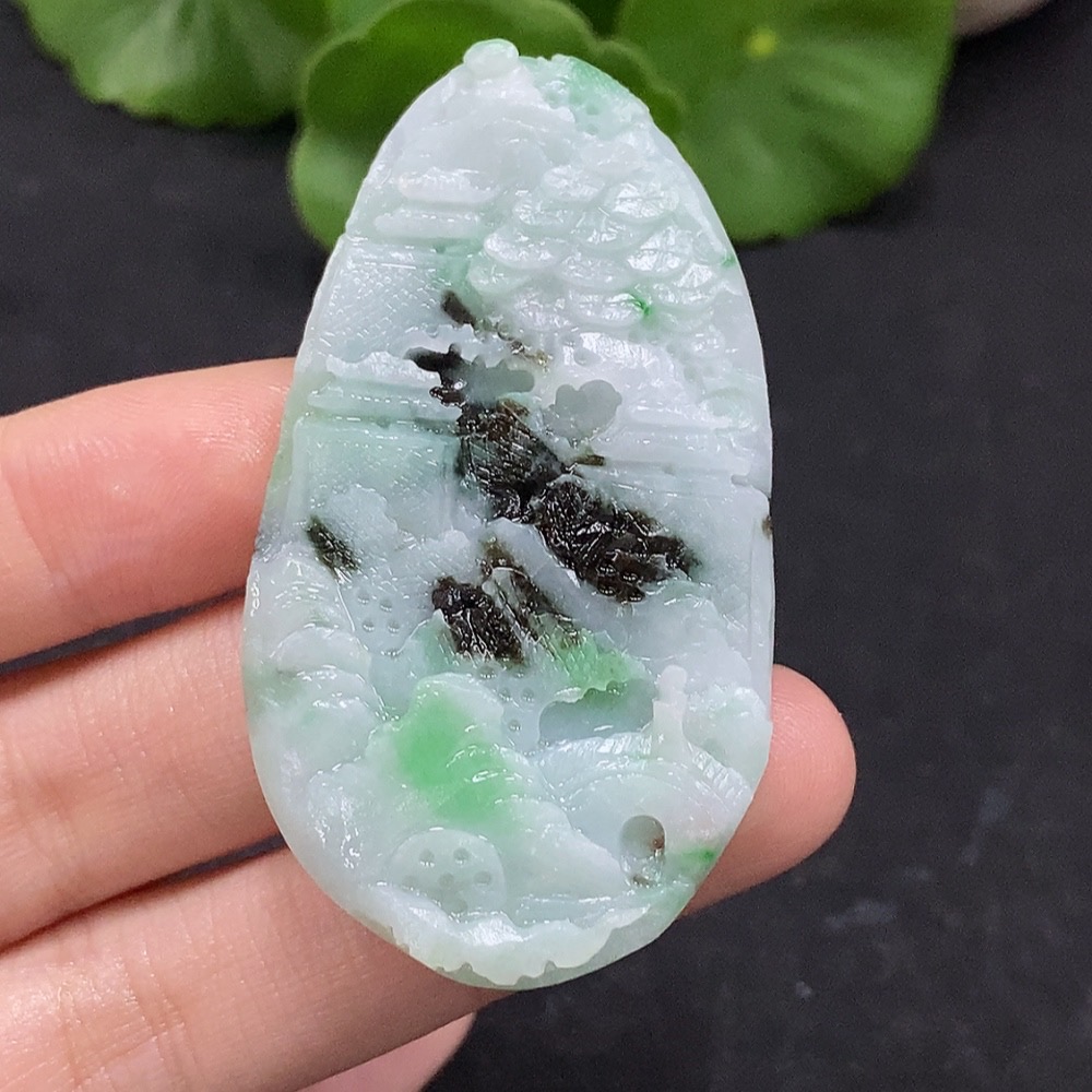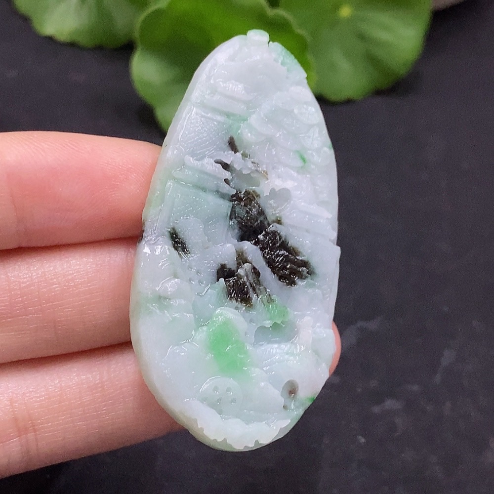 Jadeite Landscape Pendant Unpolished Total Weight Approx. 17.69g