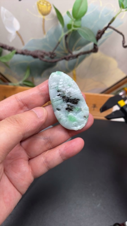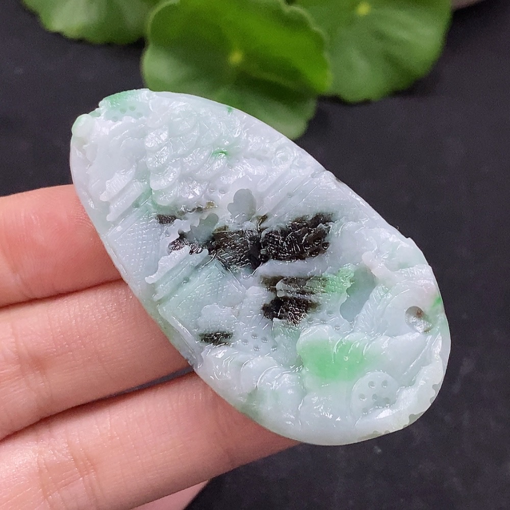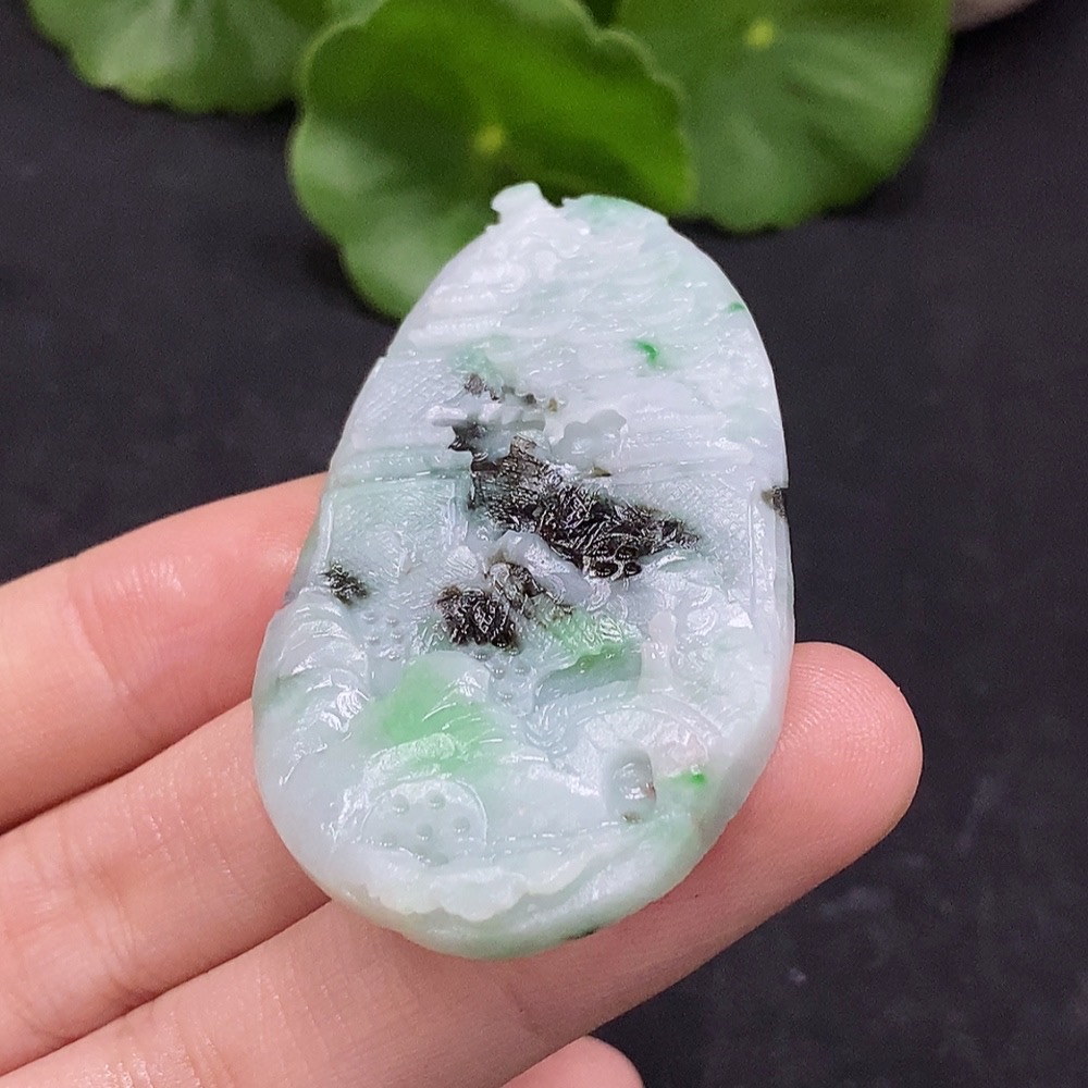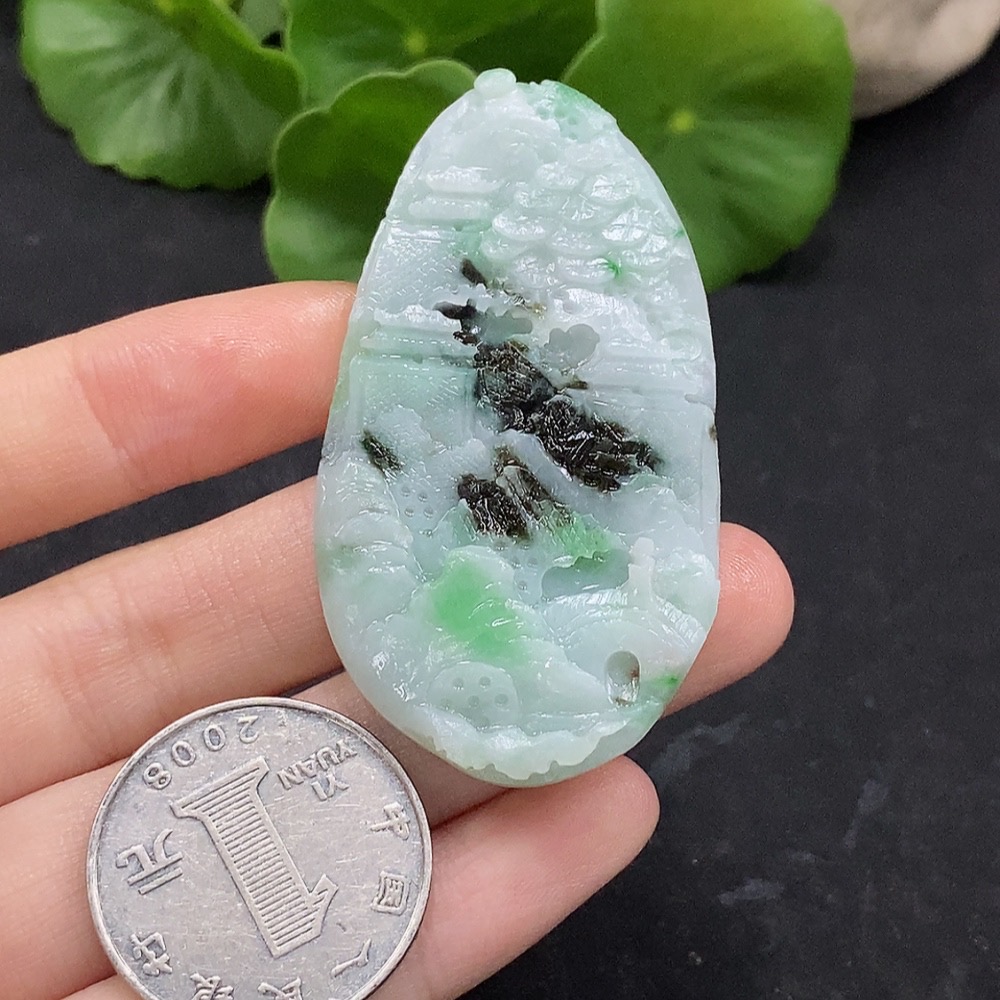 Jadeite Landscape Pendant Unpolished Total Weight Approx. 17.69g
