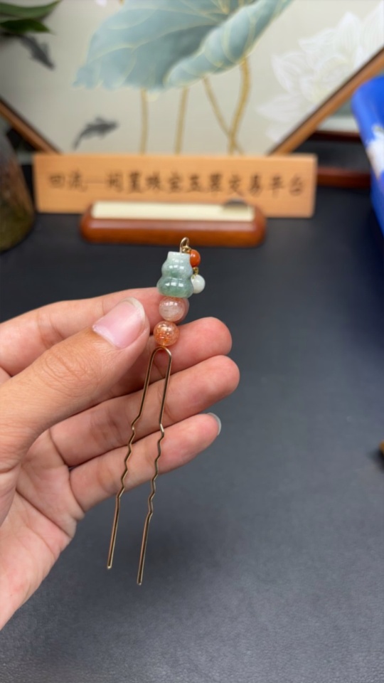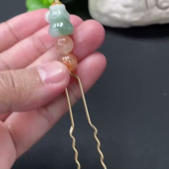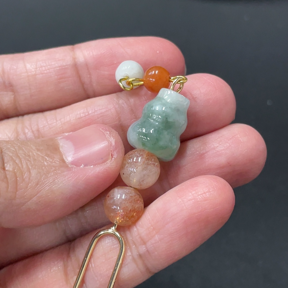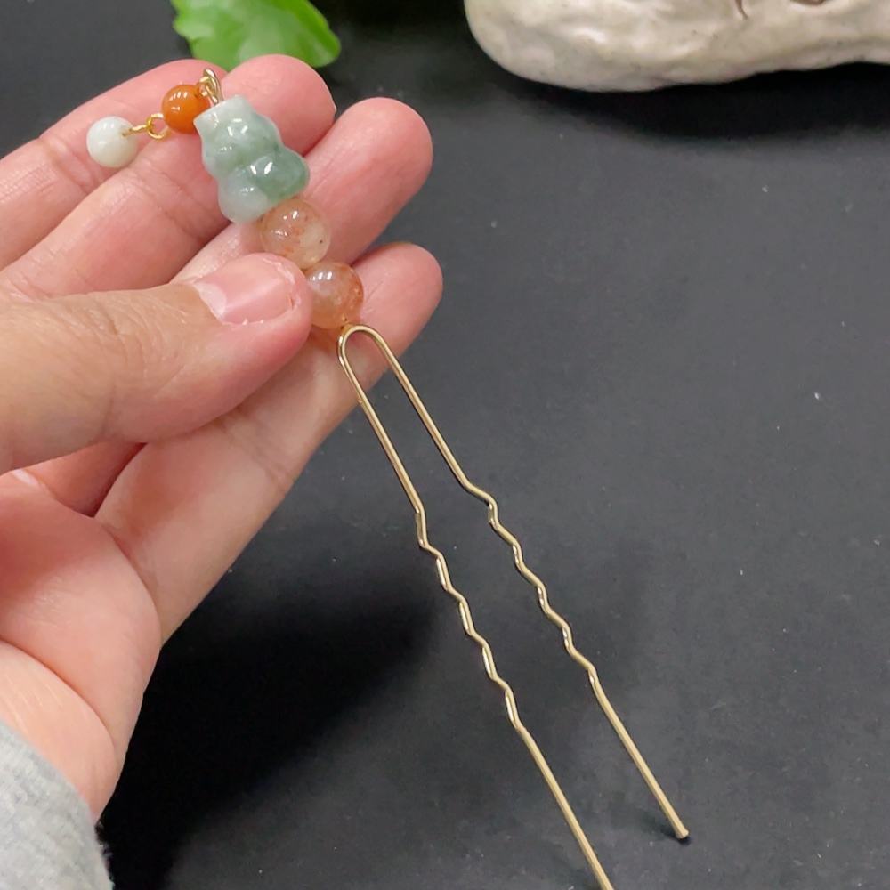 Jadeite Inlaid Hairpin with Red Beads Non-A Grade Non-Gold Inlaid Total Weight Approx. 7.2g