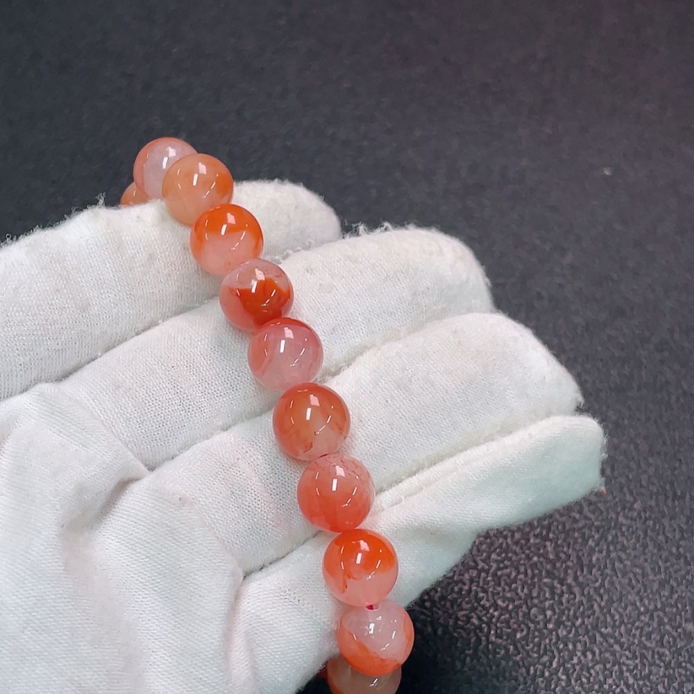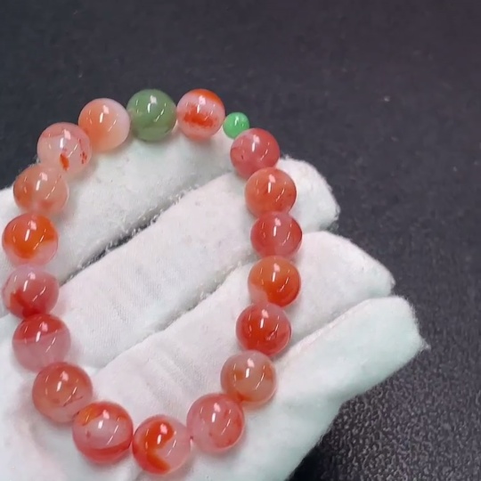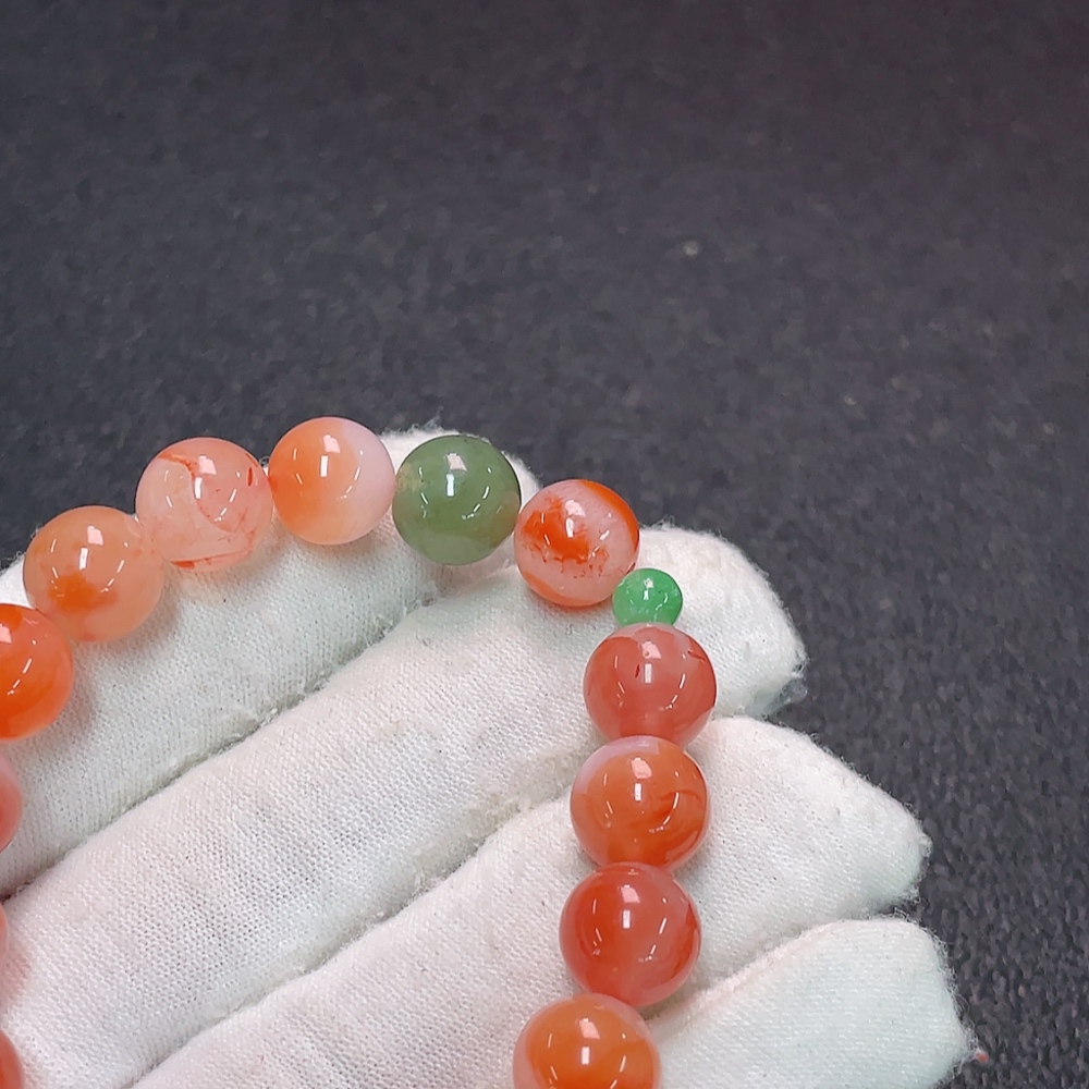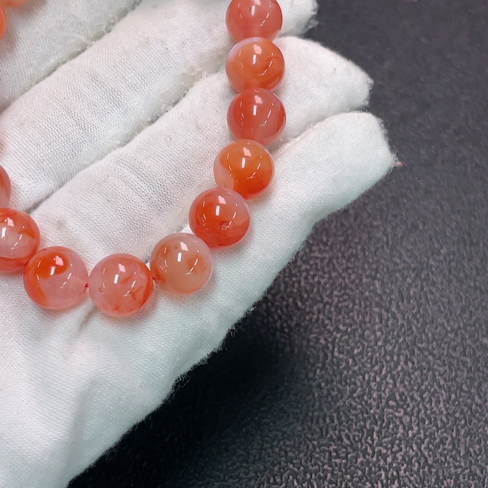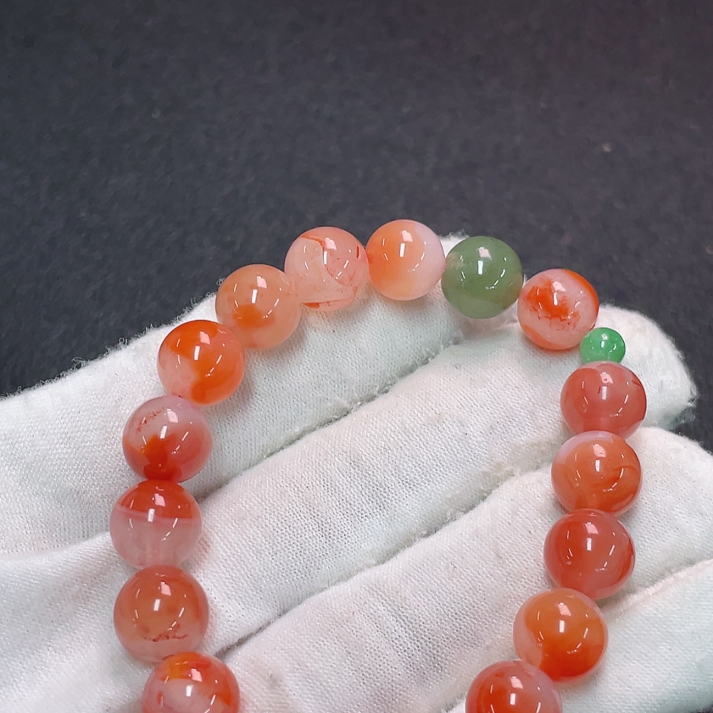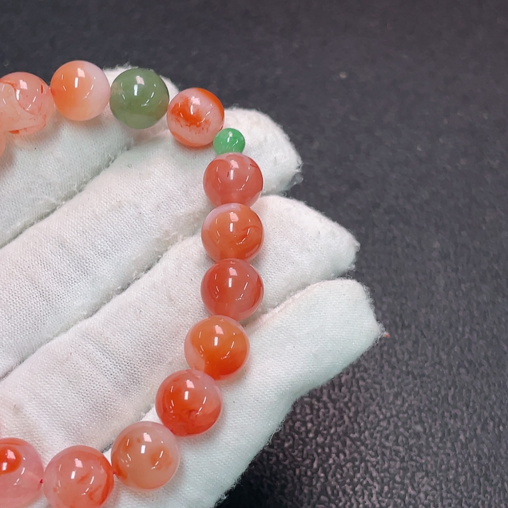 Red Agate Bracelet with Visible Organic Matter, Total Weight Approximately 23.17g, Bead Size About 9.6mm, Paired with Jadeite and Hetian Jade
