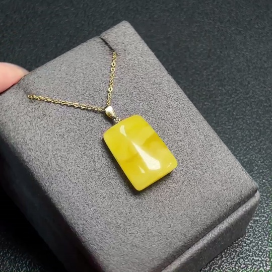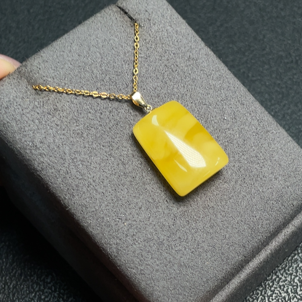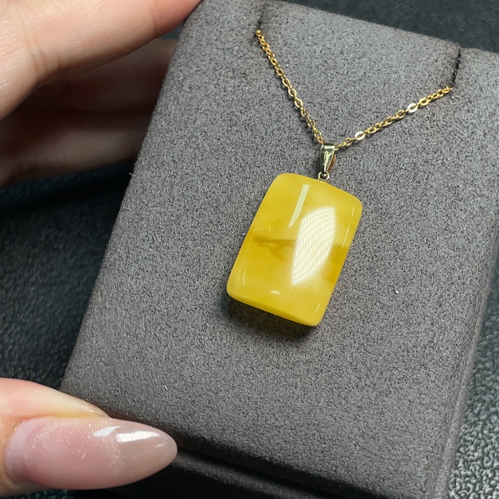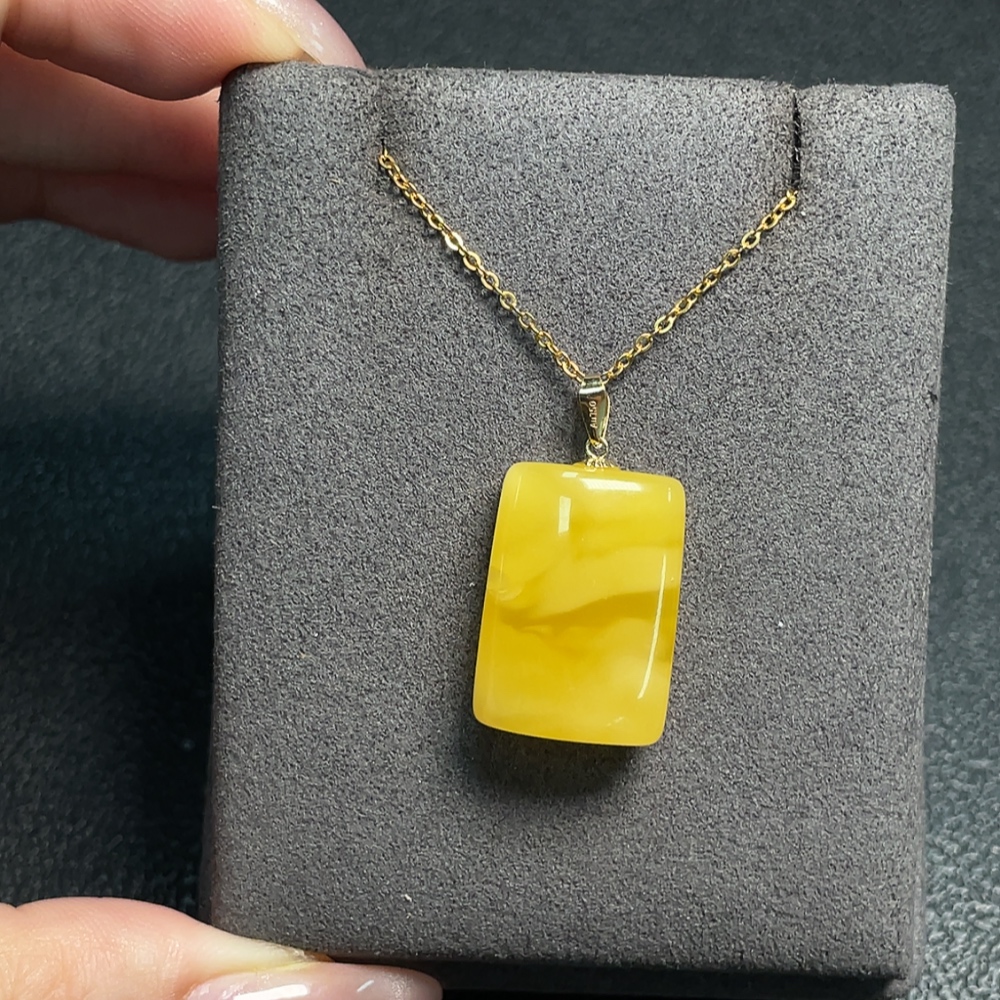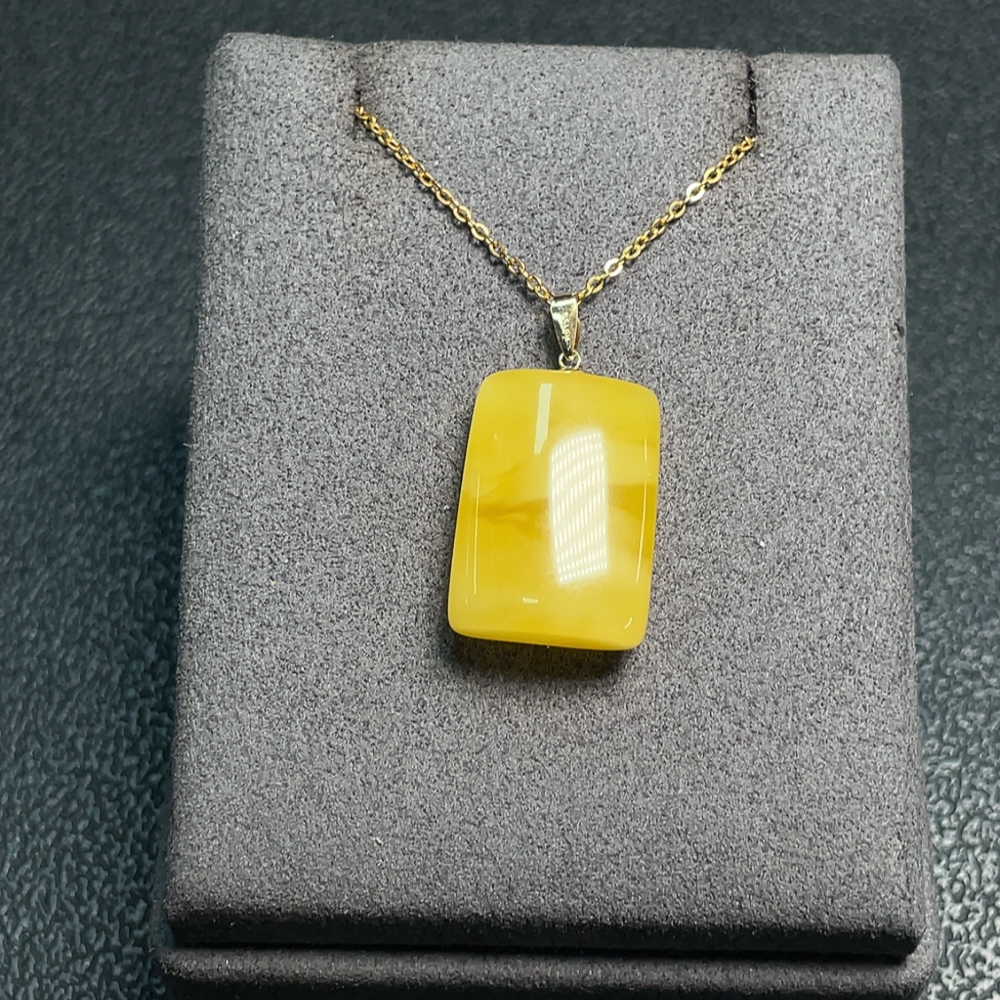 Amber Beeswax Pendant Necklace Non-Gold Chain 18K Gold Pendant Total Weight Approx. 3.03g Including Chain