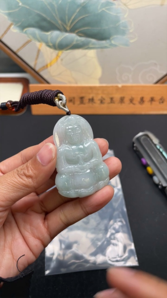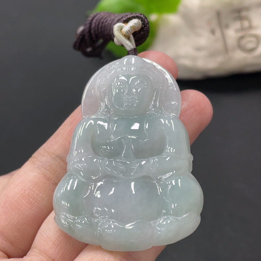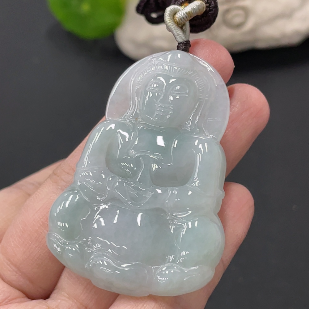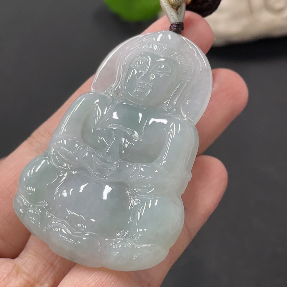 Jadeite Guanyin Pendant, Total Weight Approx. 22.5g