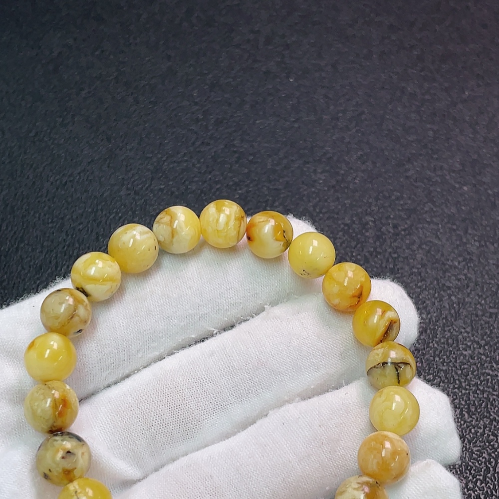 Amber Beeswax Bracelet Partial Repair Total Weight Approx. 9.51g Size About 9.1mm