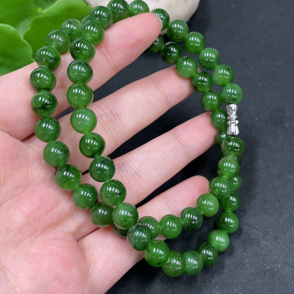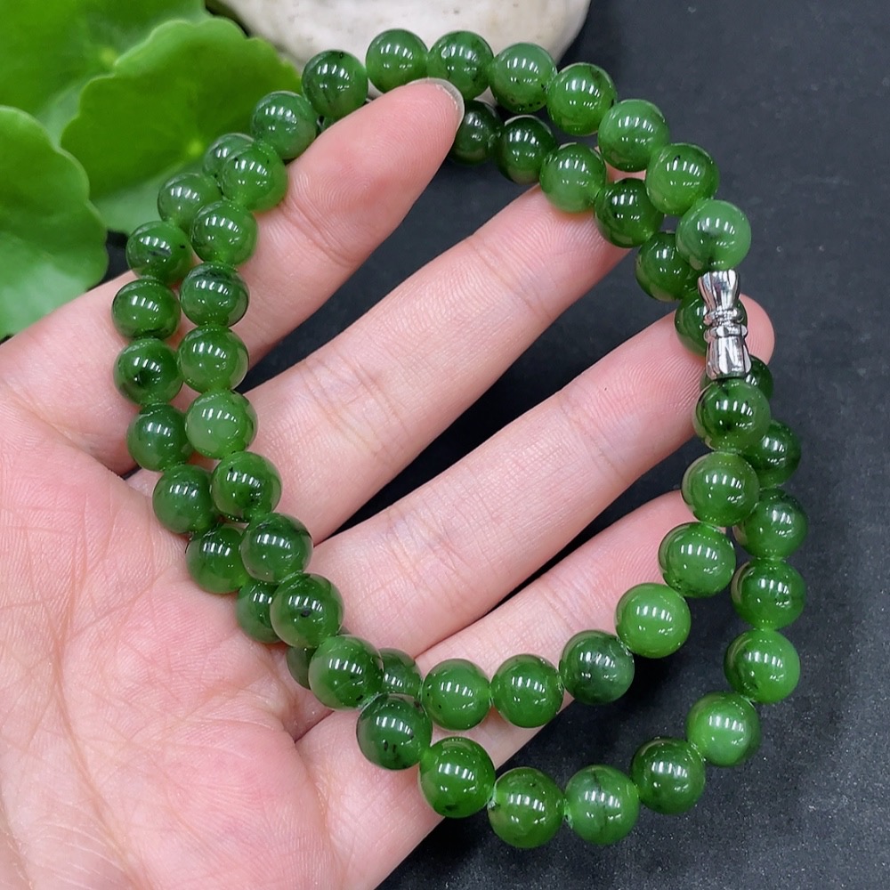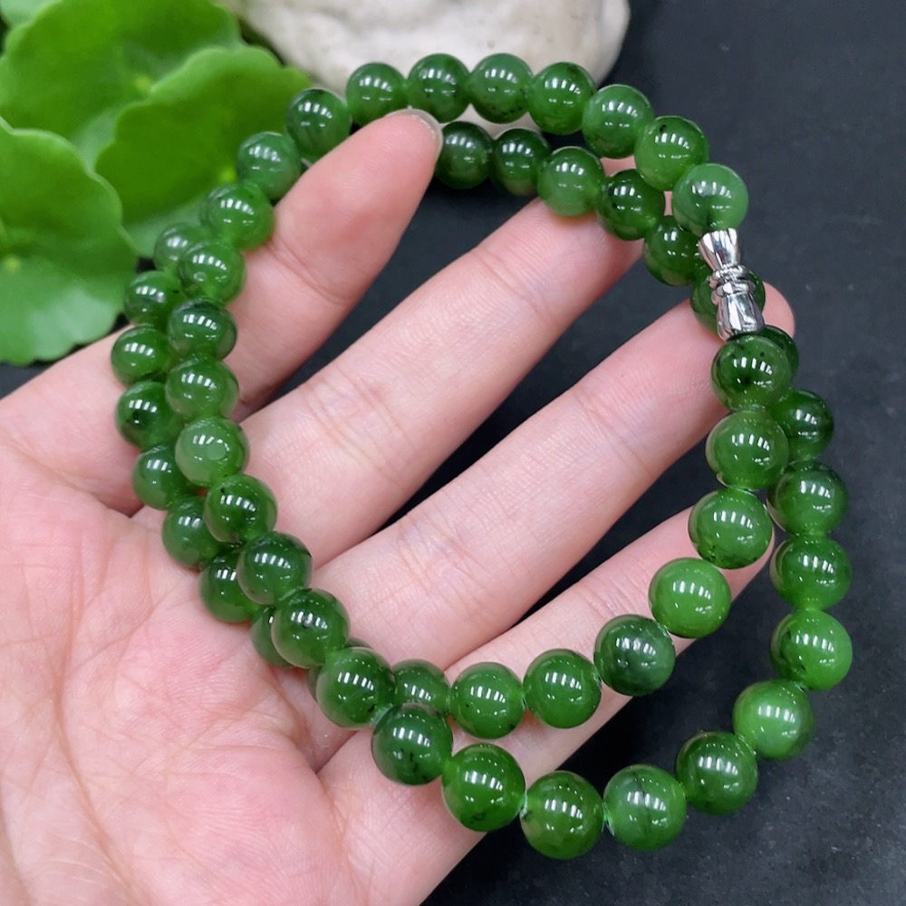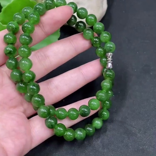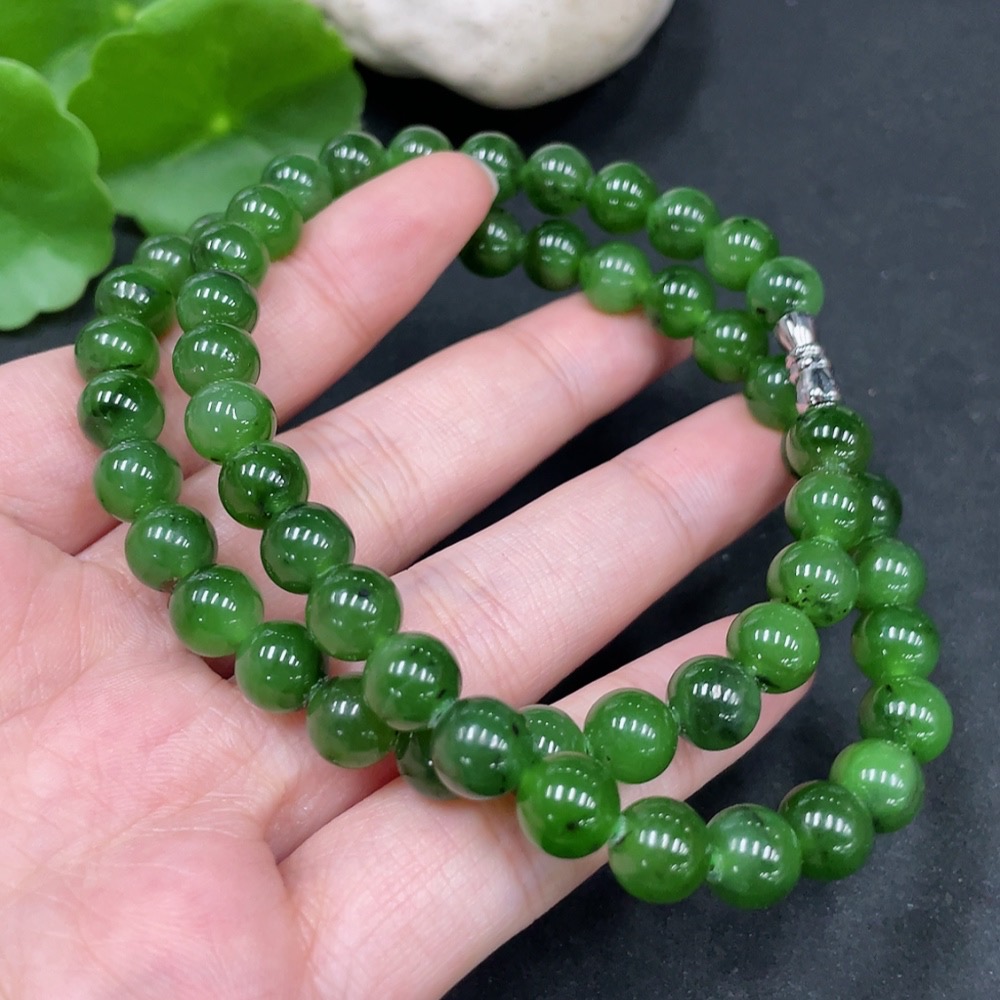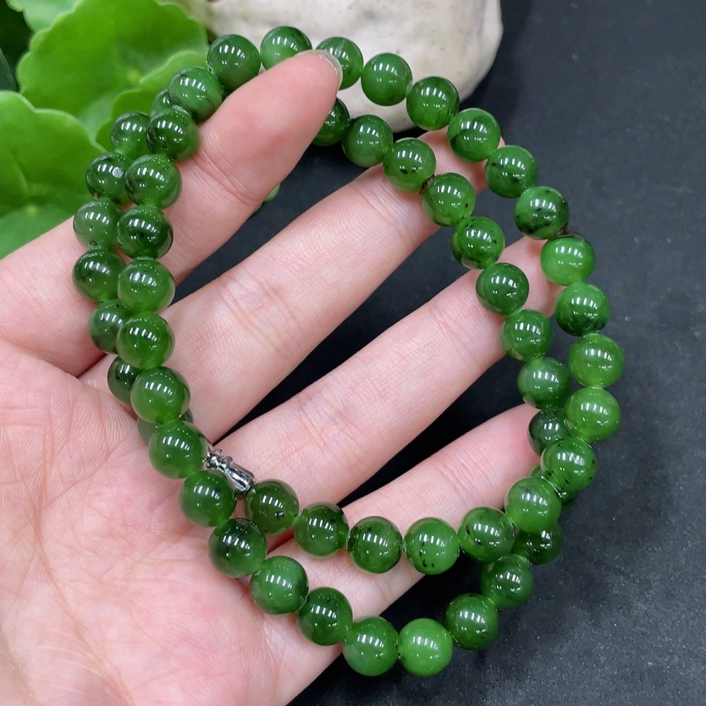 Hetian Jade Bead Necklace Non-Gold Approx. 7.5mm Total Weight About 43.7g