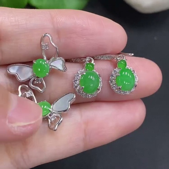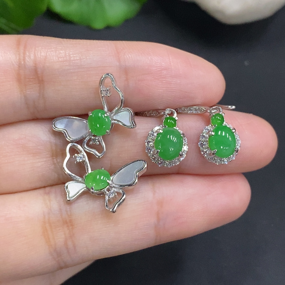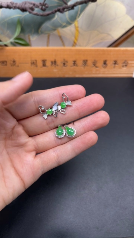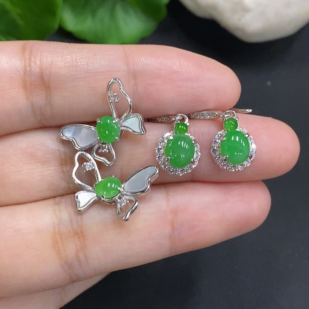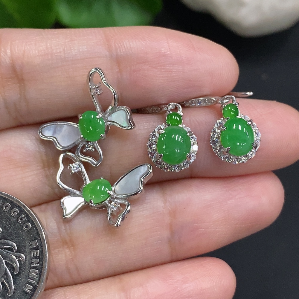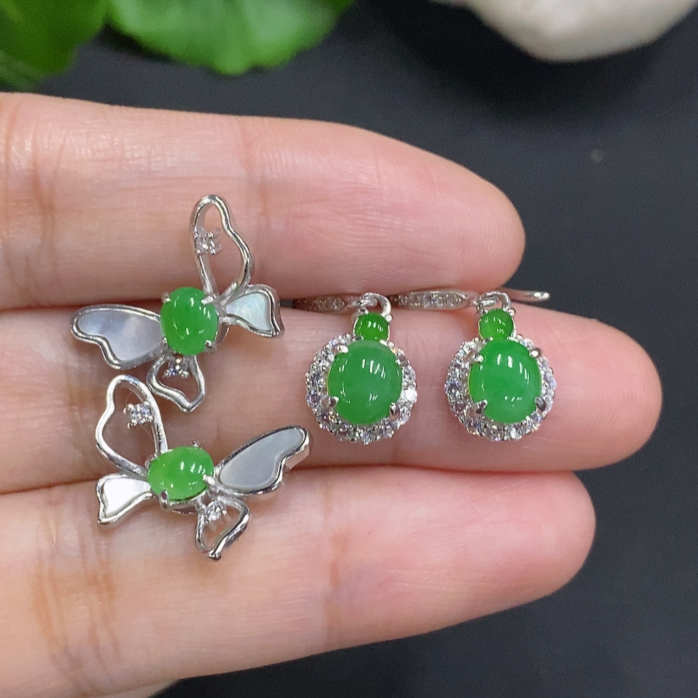 Jadeite Cabochon Stud Earrings Sell as a Lot Non-Gold Setting