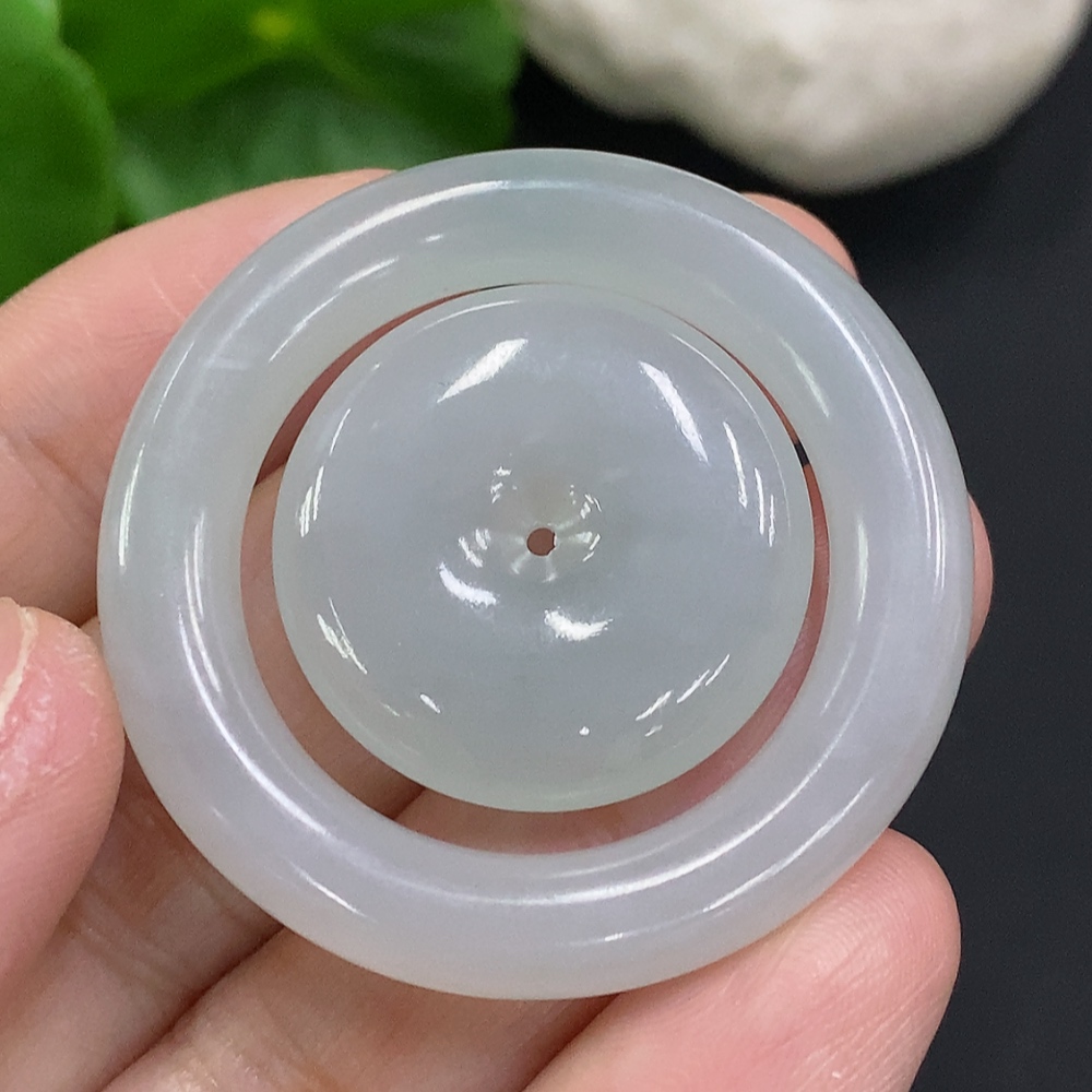 Jadeite Mother-and-Child Button Pendant Total Weight Approx. 15.3g
