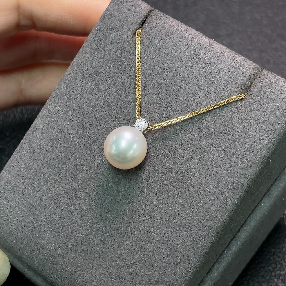 18K Saltwater Pearl Necklace Non-Diamond Total Weight Approx. 3.71g Size About 9.9mm