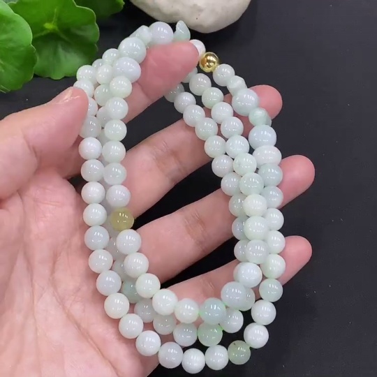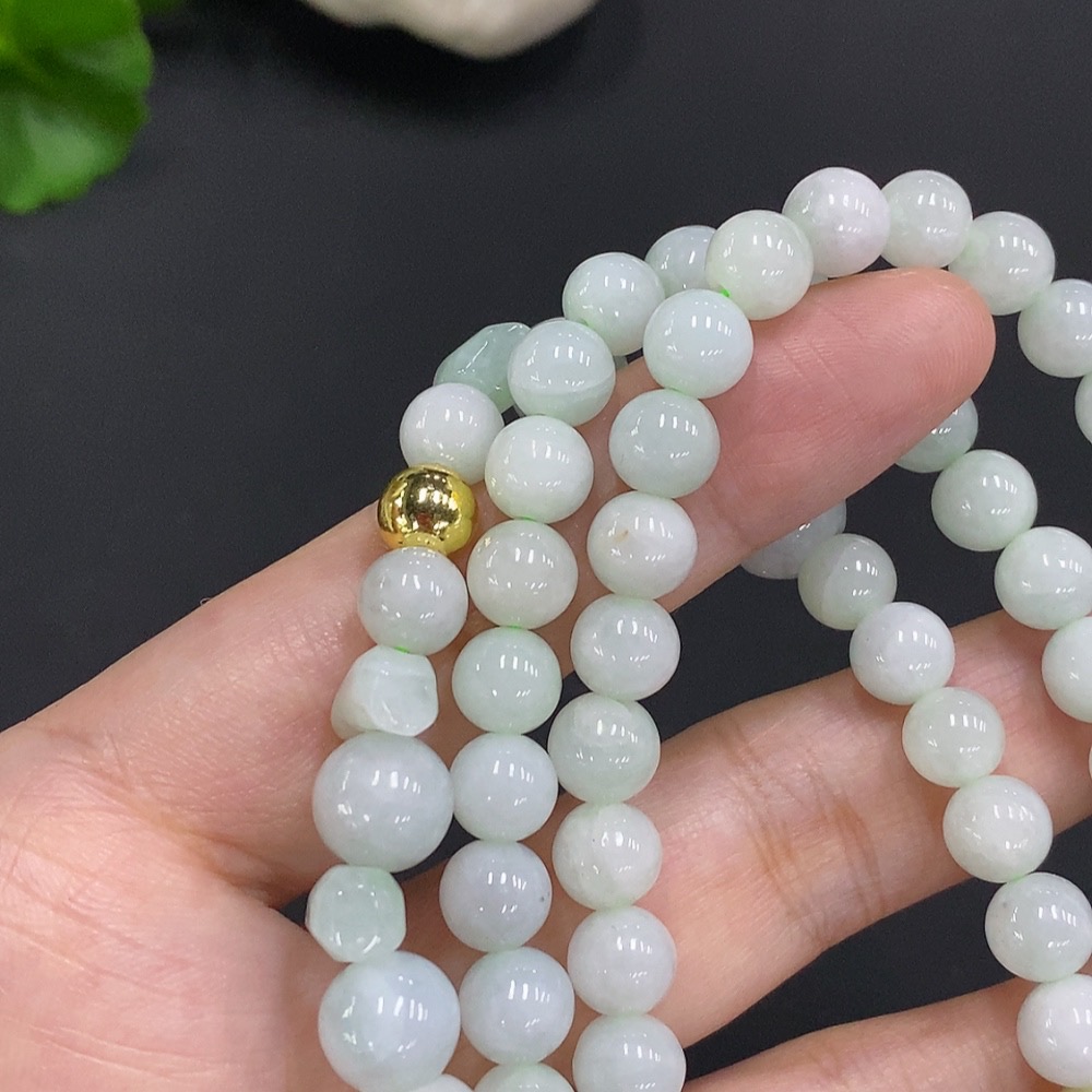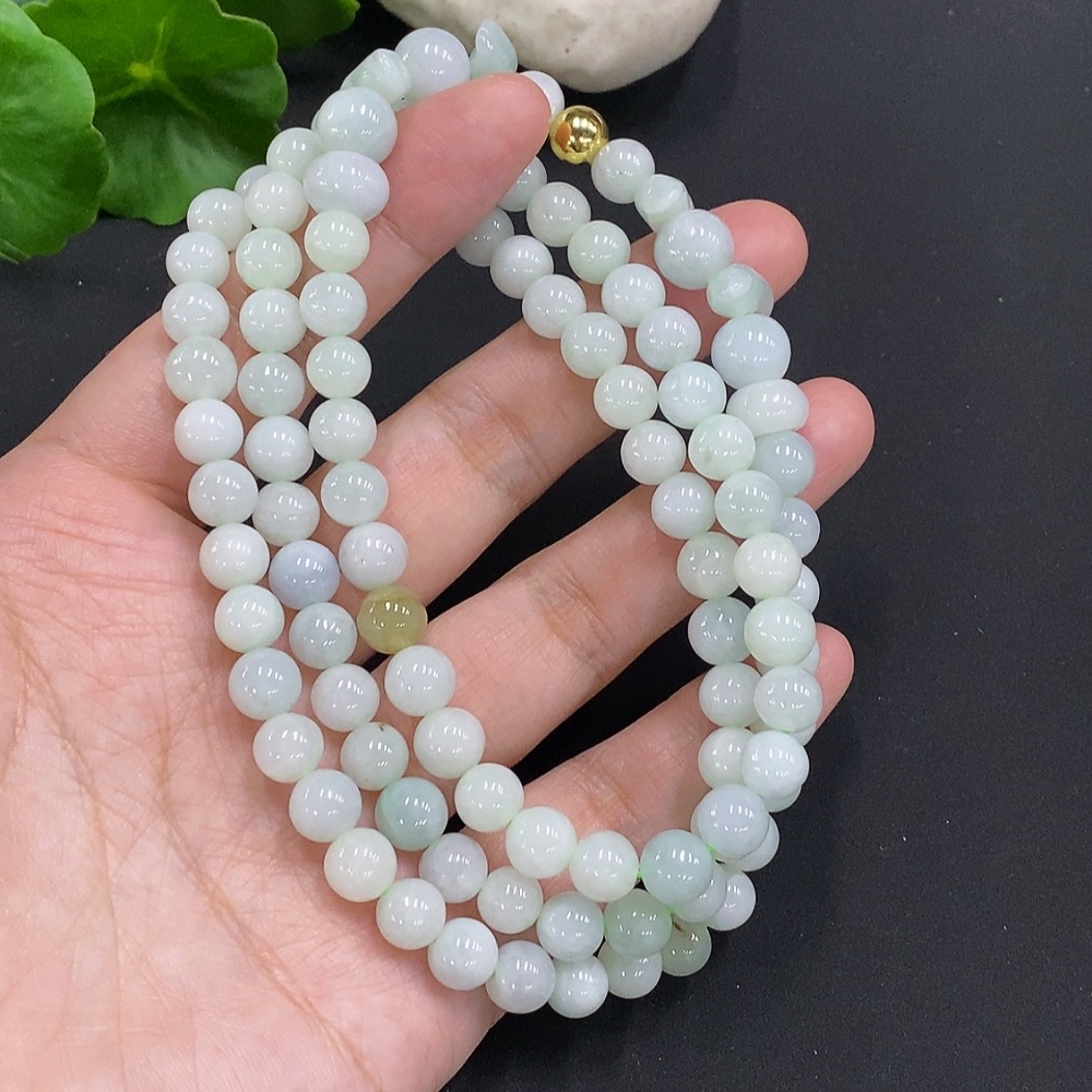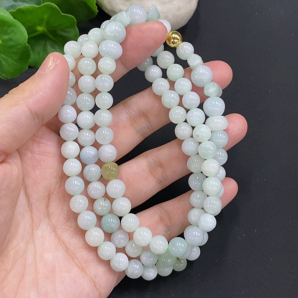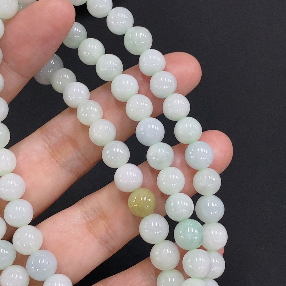 Jadeite Bead Necklace Approx. 7.5mm Non-Gold Total Weight Approx. 70.79g