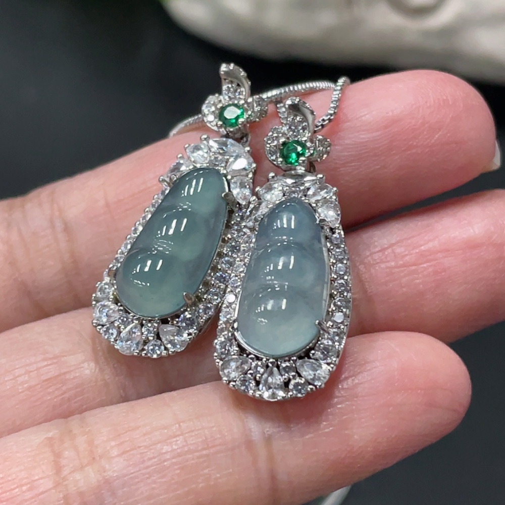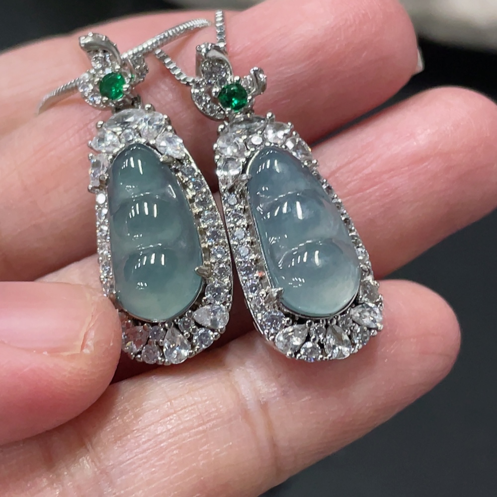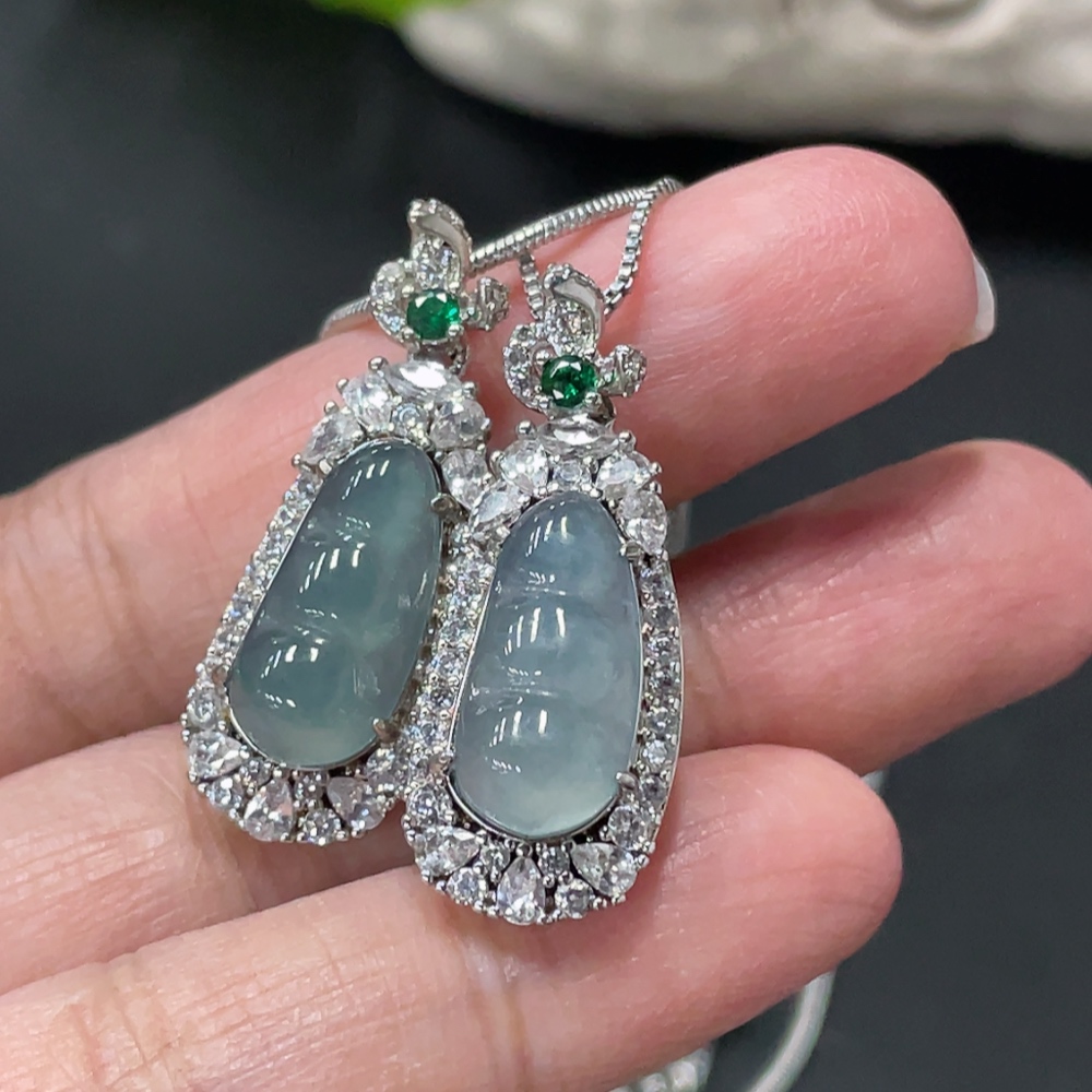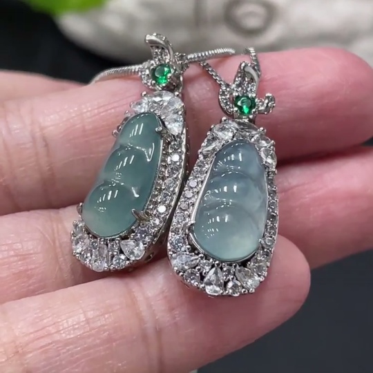 Jadeite Lucky Bean Inlay Pendant Non-Gold Inlay Total Weight Approx. 13.2g Non-Grade A Supporting Stones