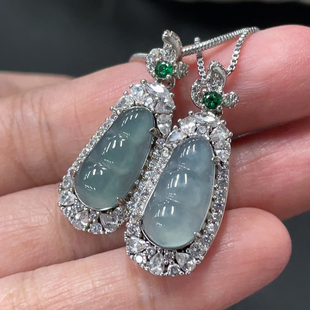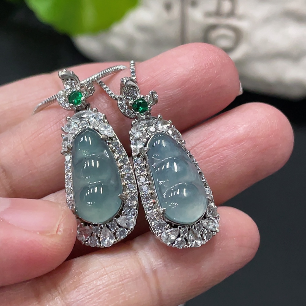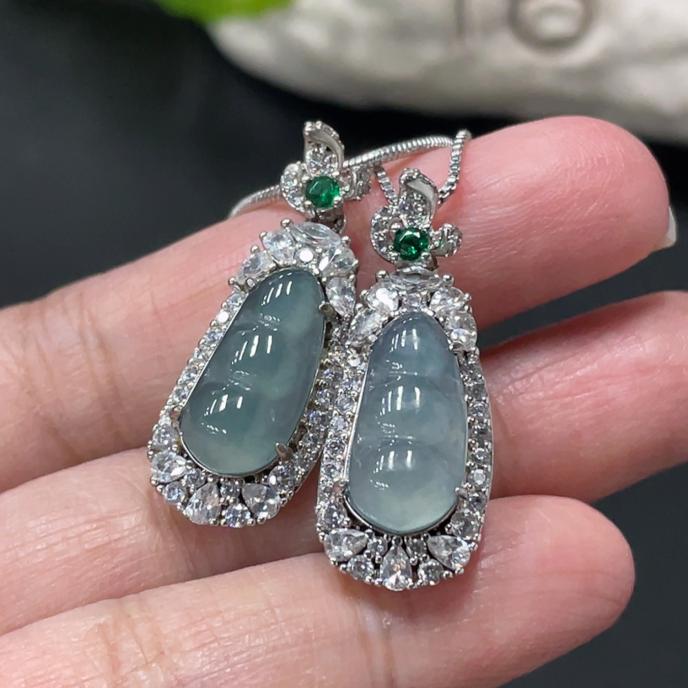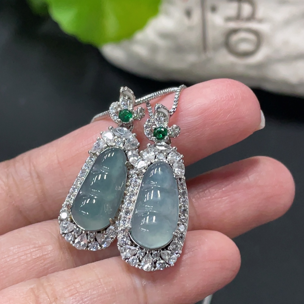 Jadeite Lucky Bean Inlay Pendant Non-Gold Inlay Total Weight Approx. 13.2g Non-Grade A Supporting Stones