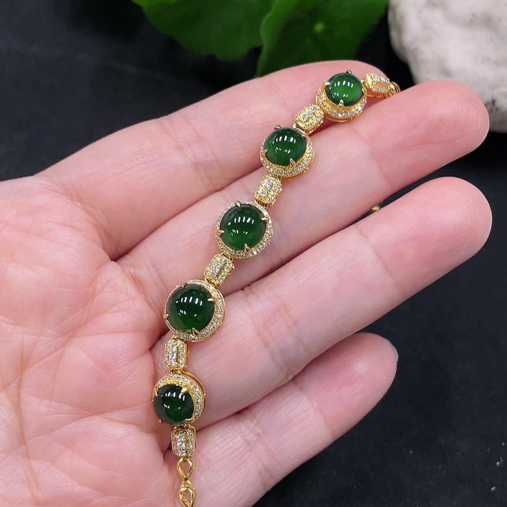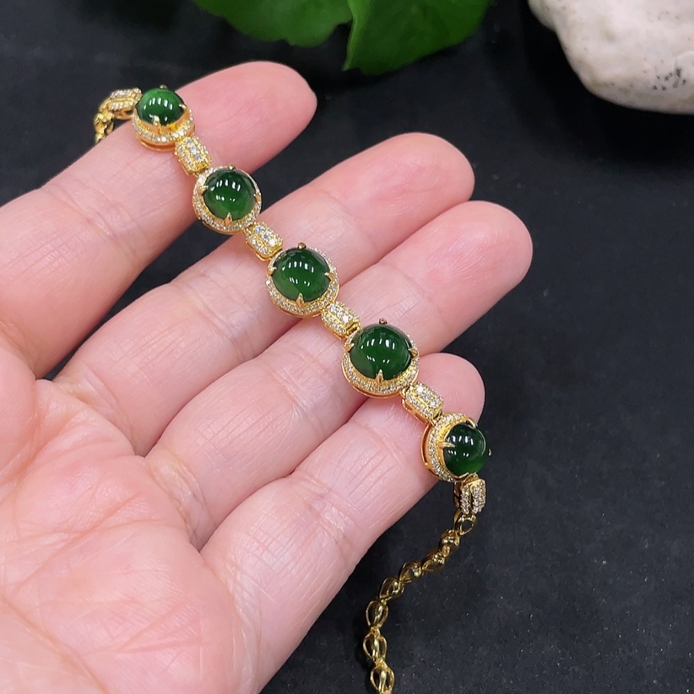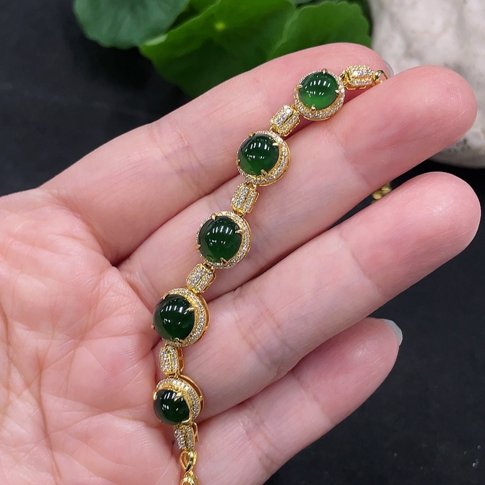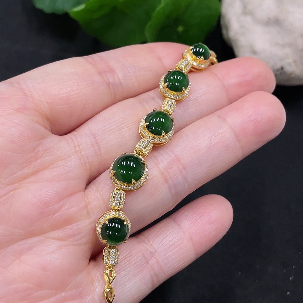 Jadeite Inlaid Bracelet 18K Gold Total Weight Approx. 8.2g (With Diamond Inlays)