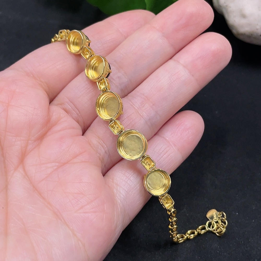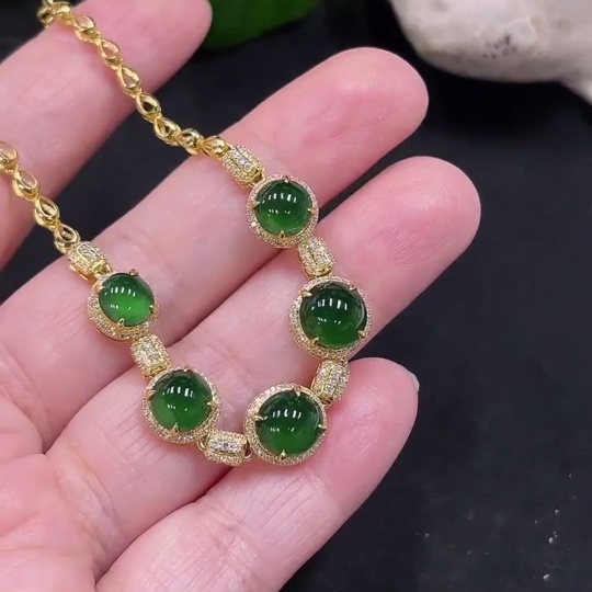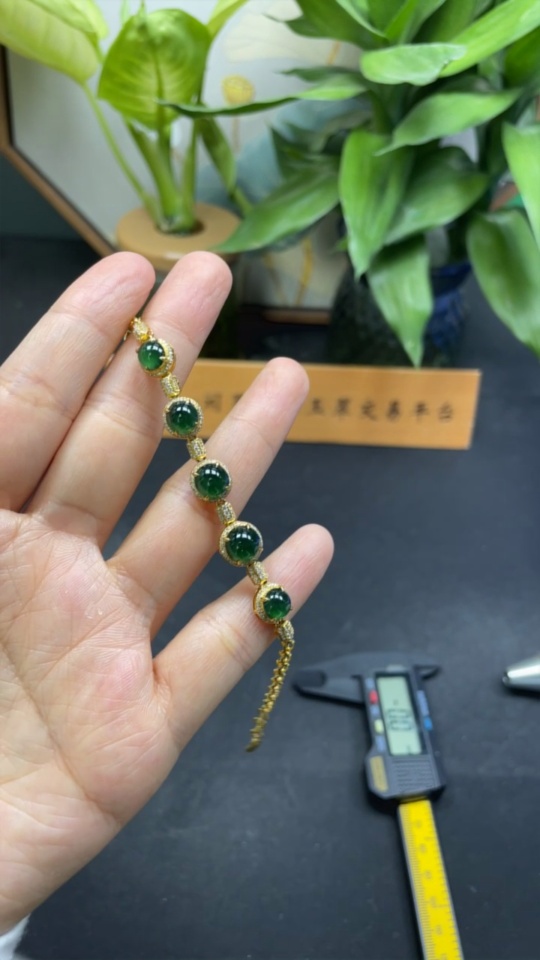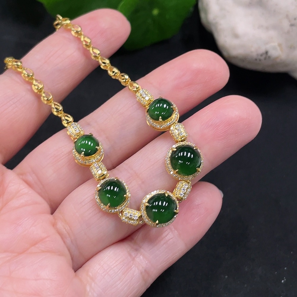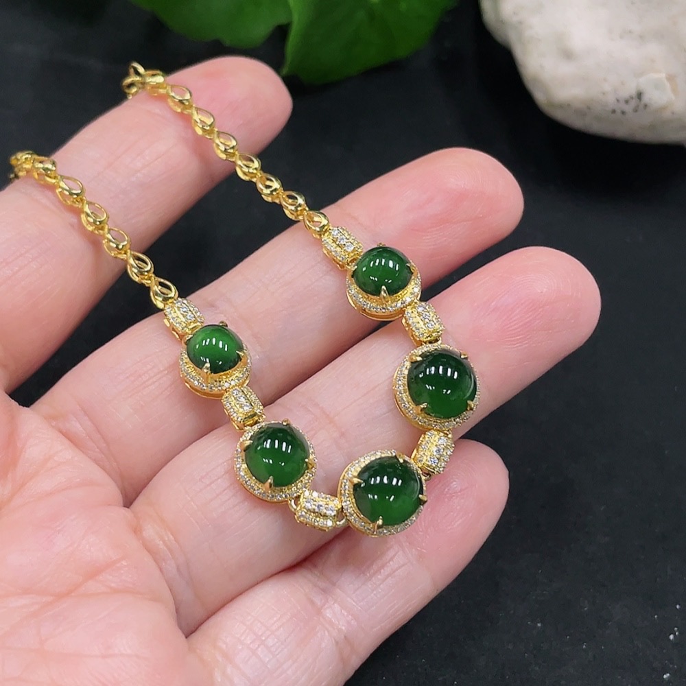 Jadeite Inlaid Bracelet 18K Gold Total Weight Approx. 8.2g (With Diamond Inlays)
