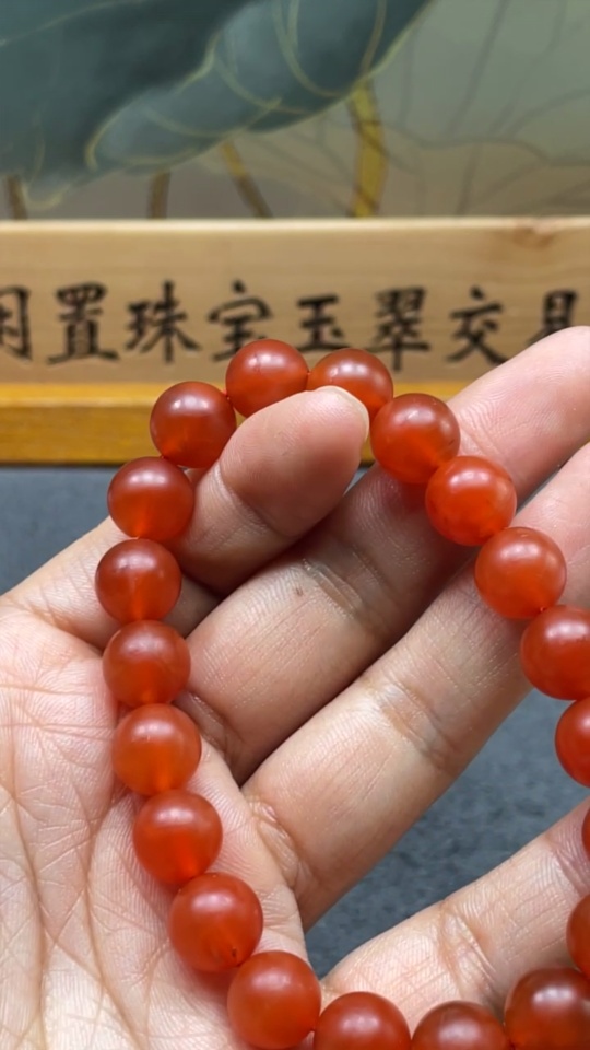 South Red Agate Bracelet with Visible Organic Matter, Total Weight Approx. 29.21g, Size About 10.1mm