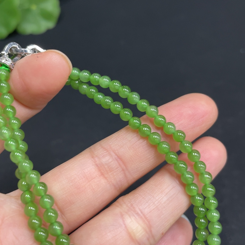Hetian Jade Jasper Bead Necklace, Approx. 3.5mm, Non-Gold Inlaid, Total Weight Approx. 9.6g
