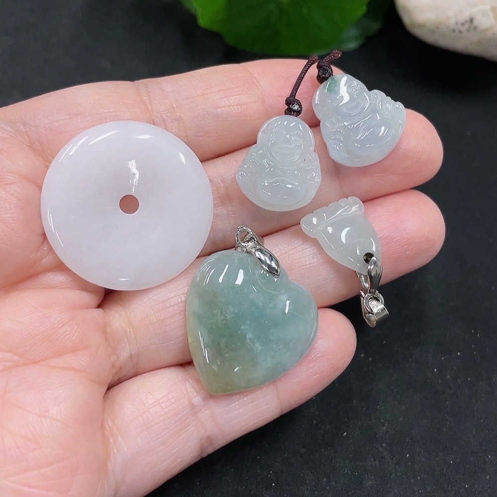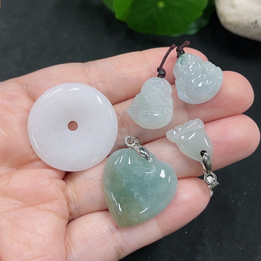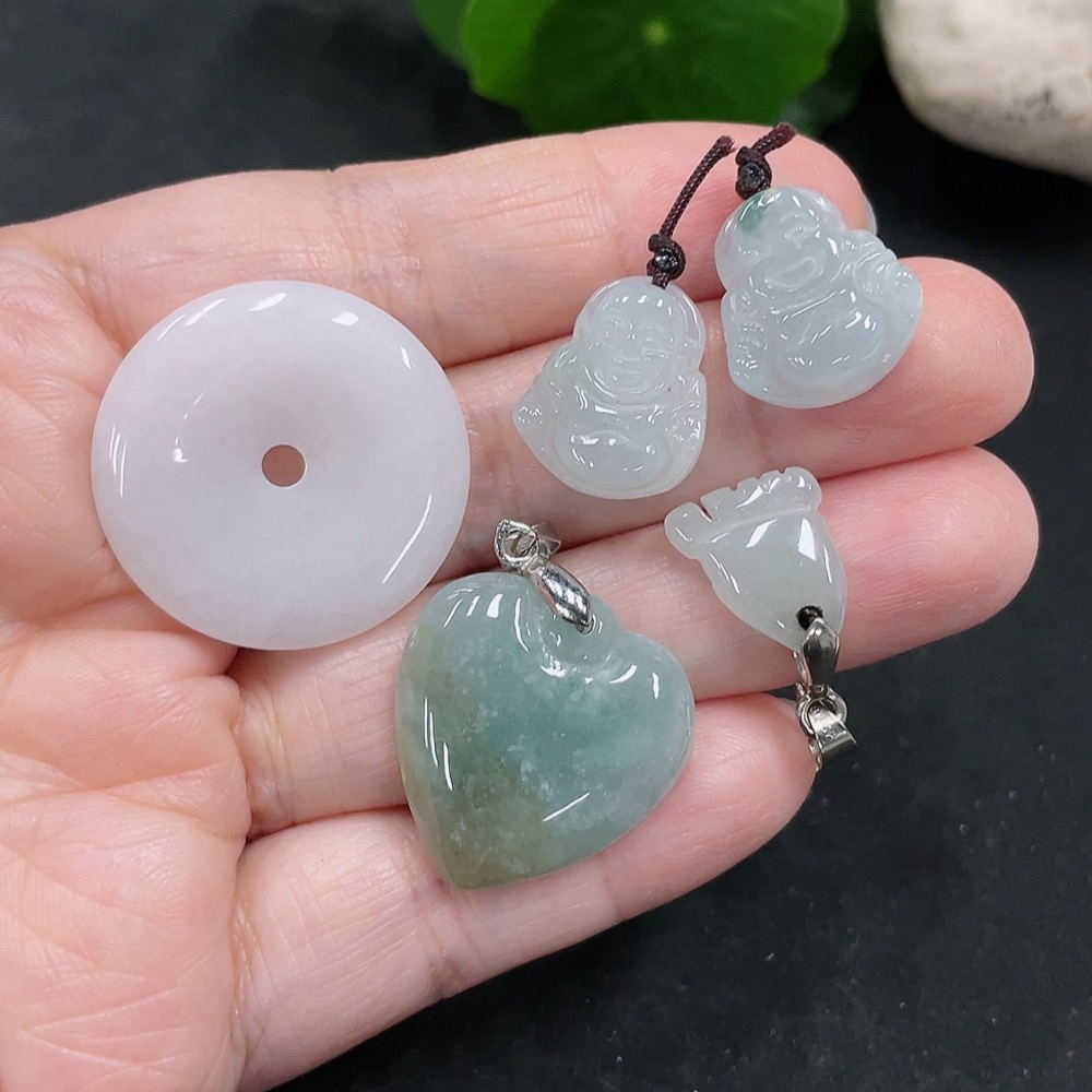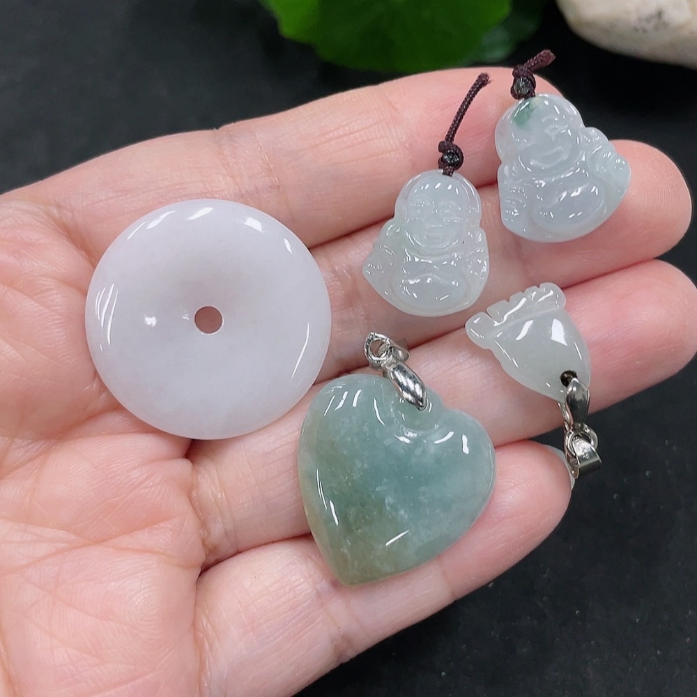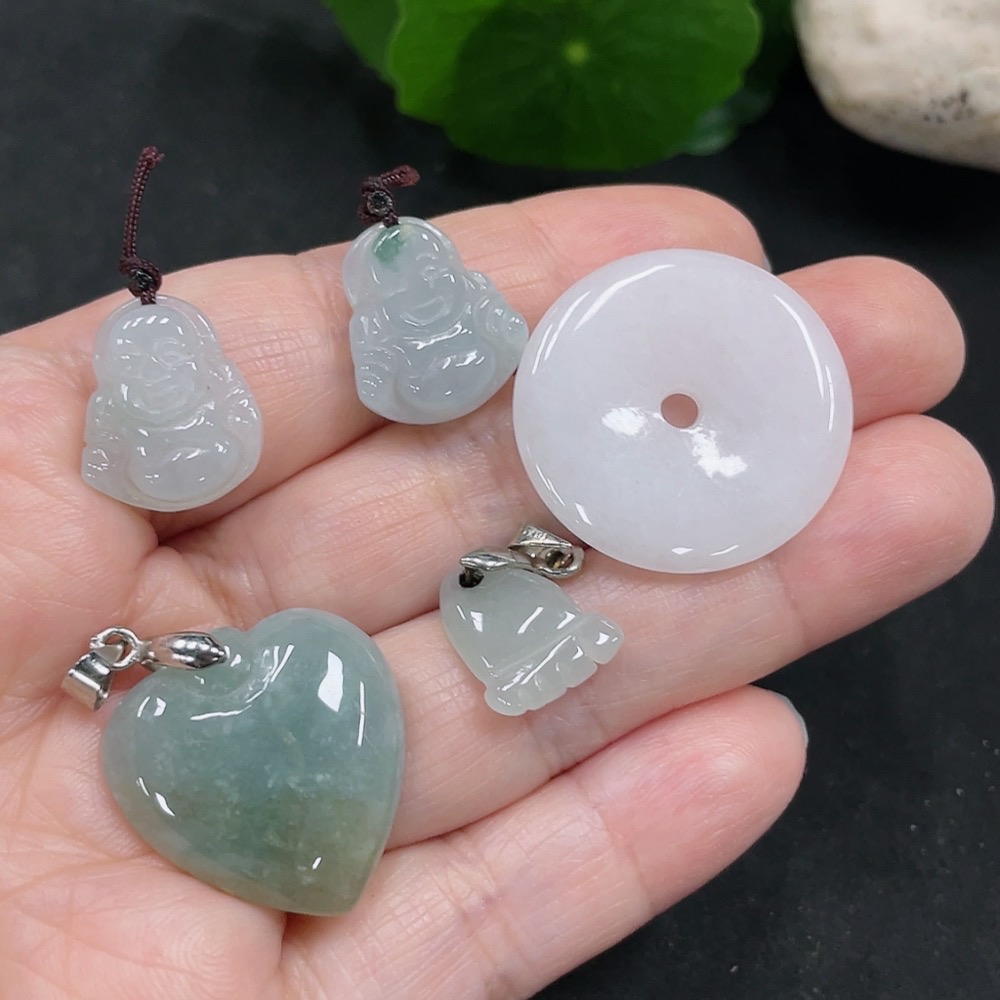 Jadeite Pendants Sell as a Lot (Non-Gold Inlaid)