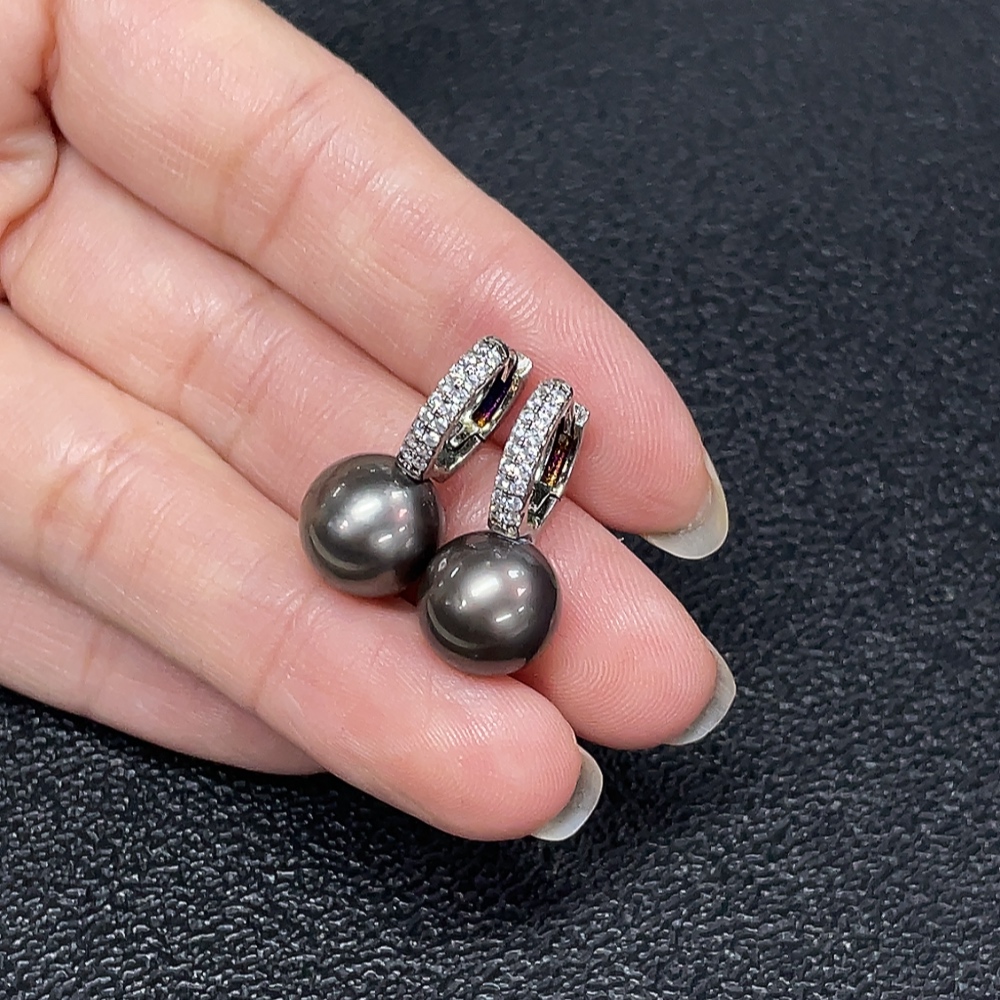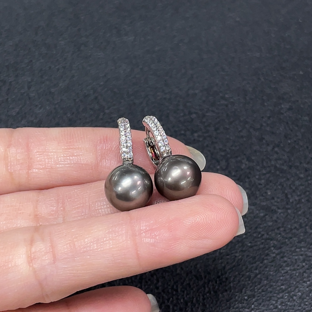 Seawater pearl earrings non-gold total weight about 5.29g size approx. 10.5mm