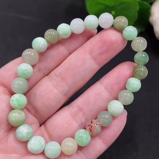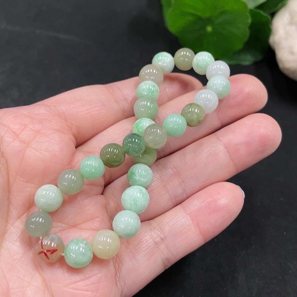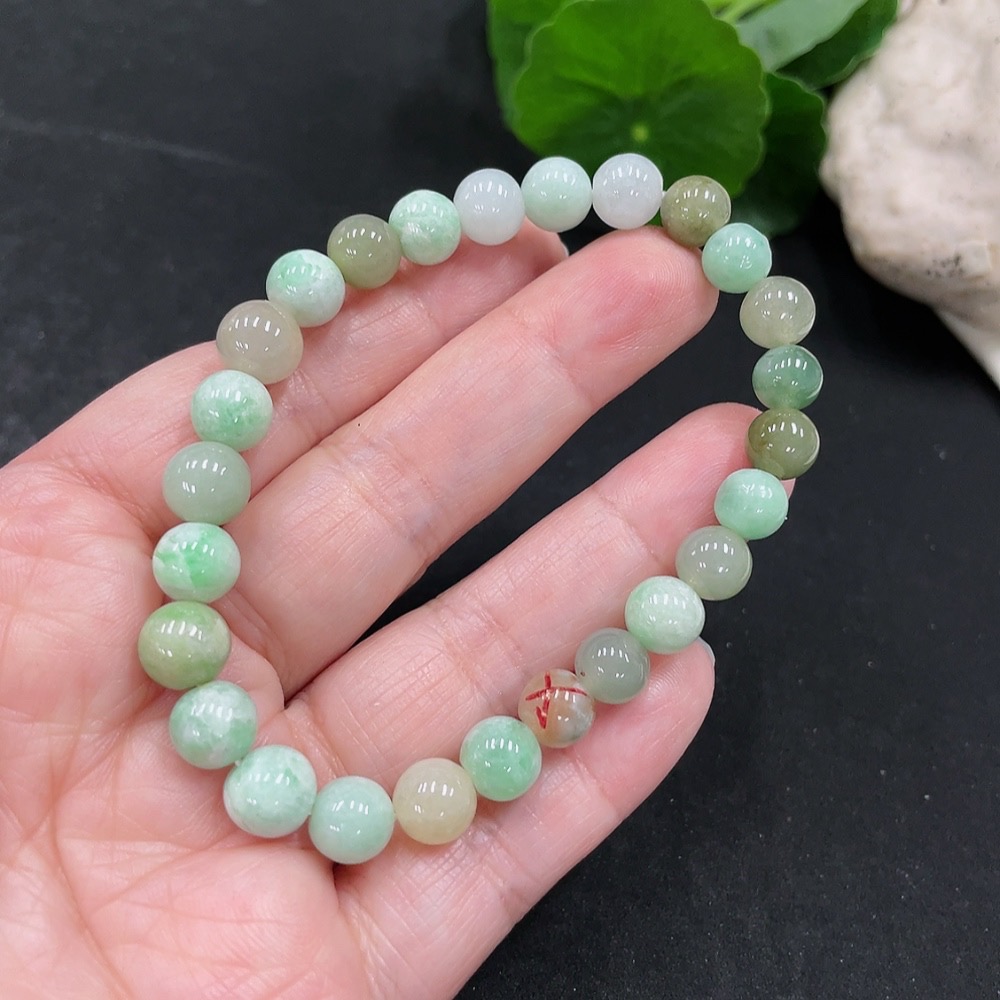 Jadeite Bracelet Approx. 7.8mm Beads Non-A with Impurities Total Weight Approx. 19.14g