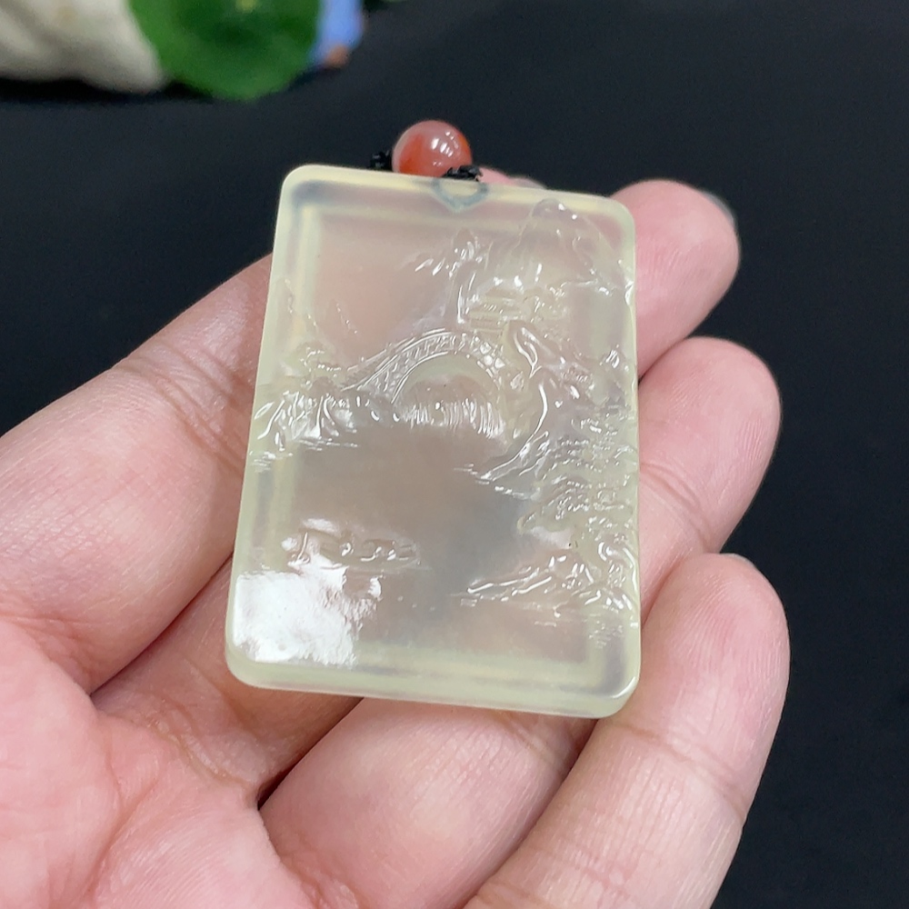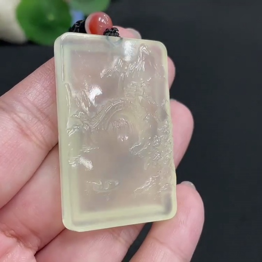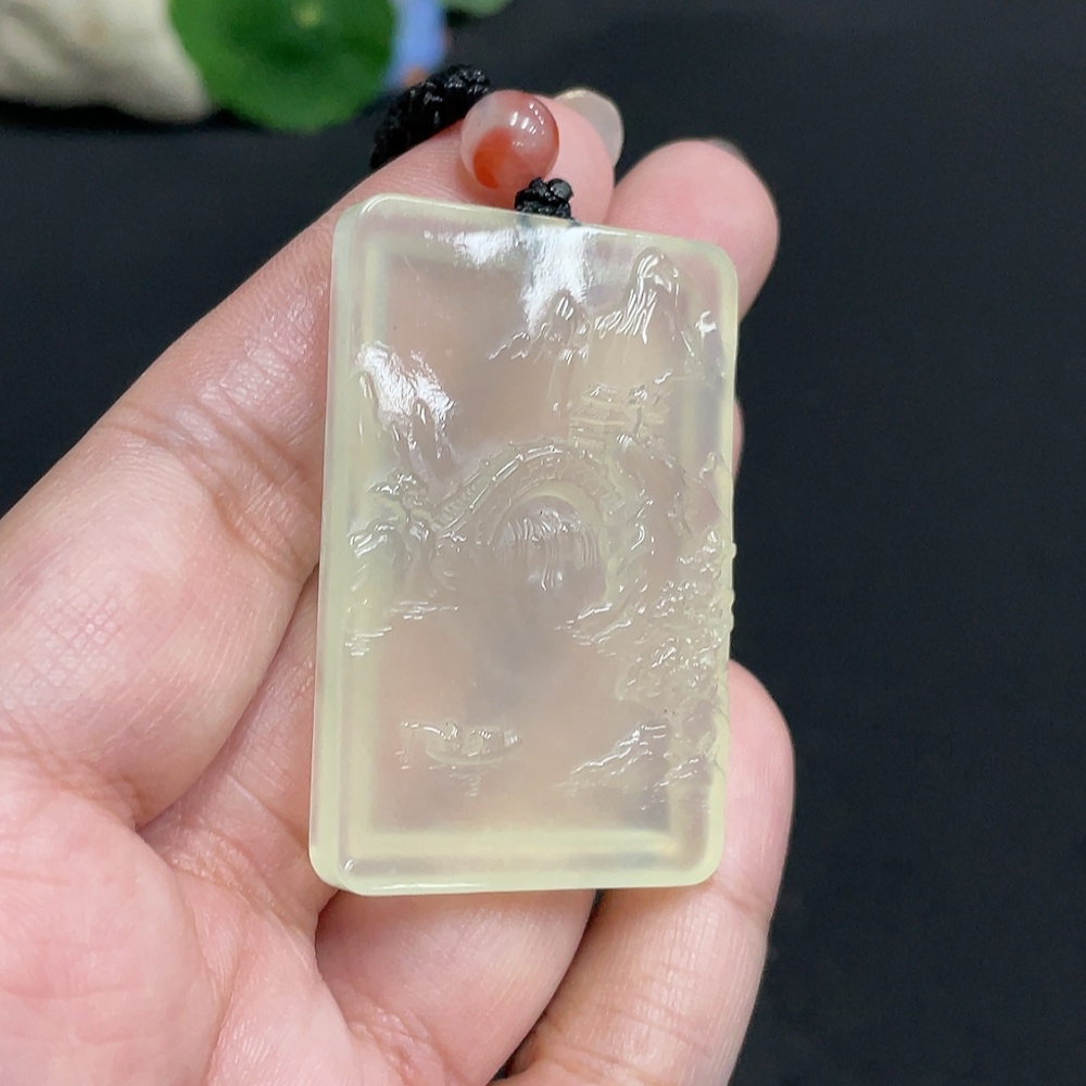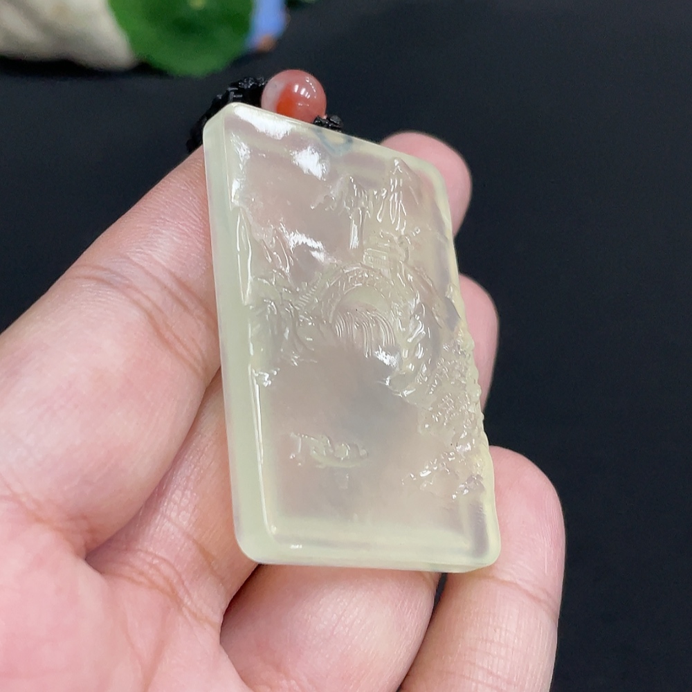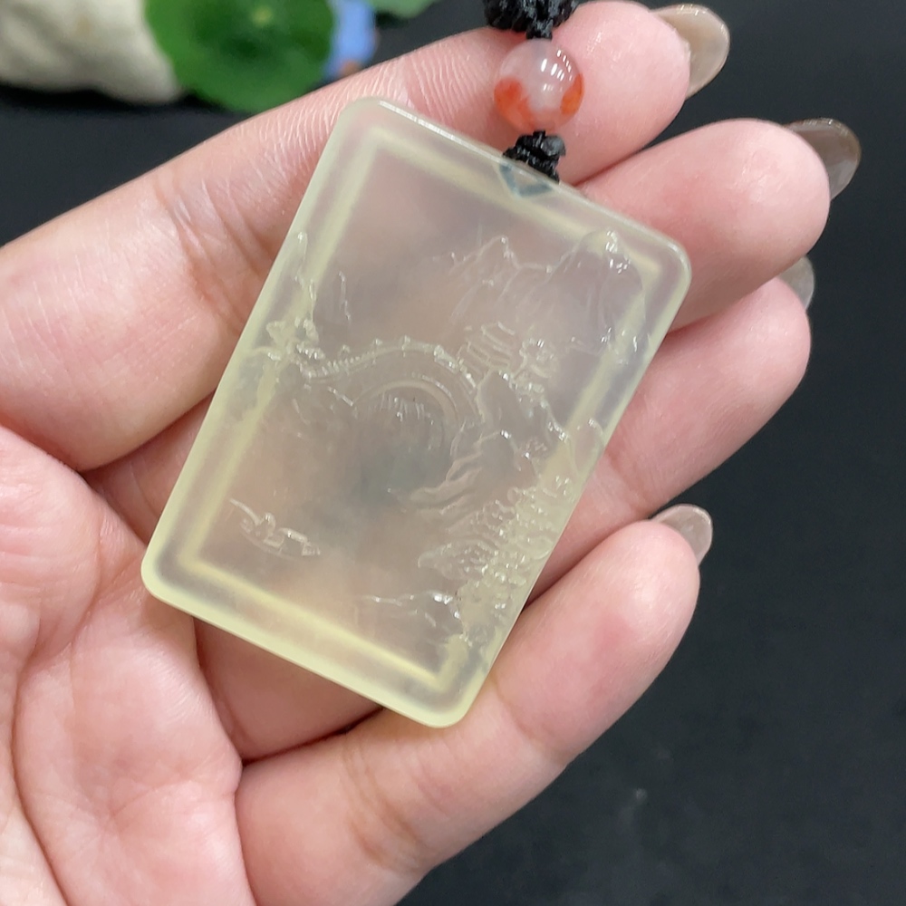 Xiuyu (serpentine jade) pendant with landscape design, non-Xiuyu beads included, total weight approx. 28.2g (including cord)