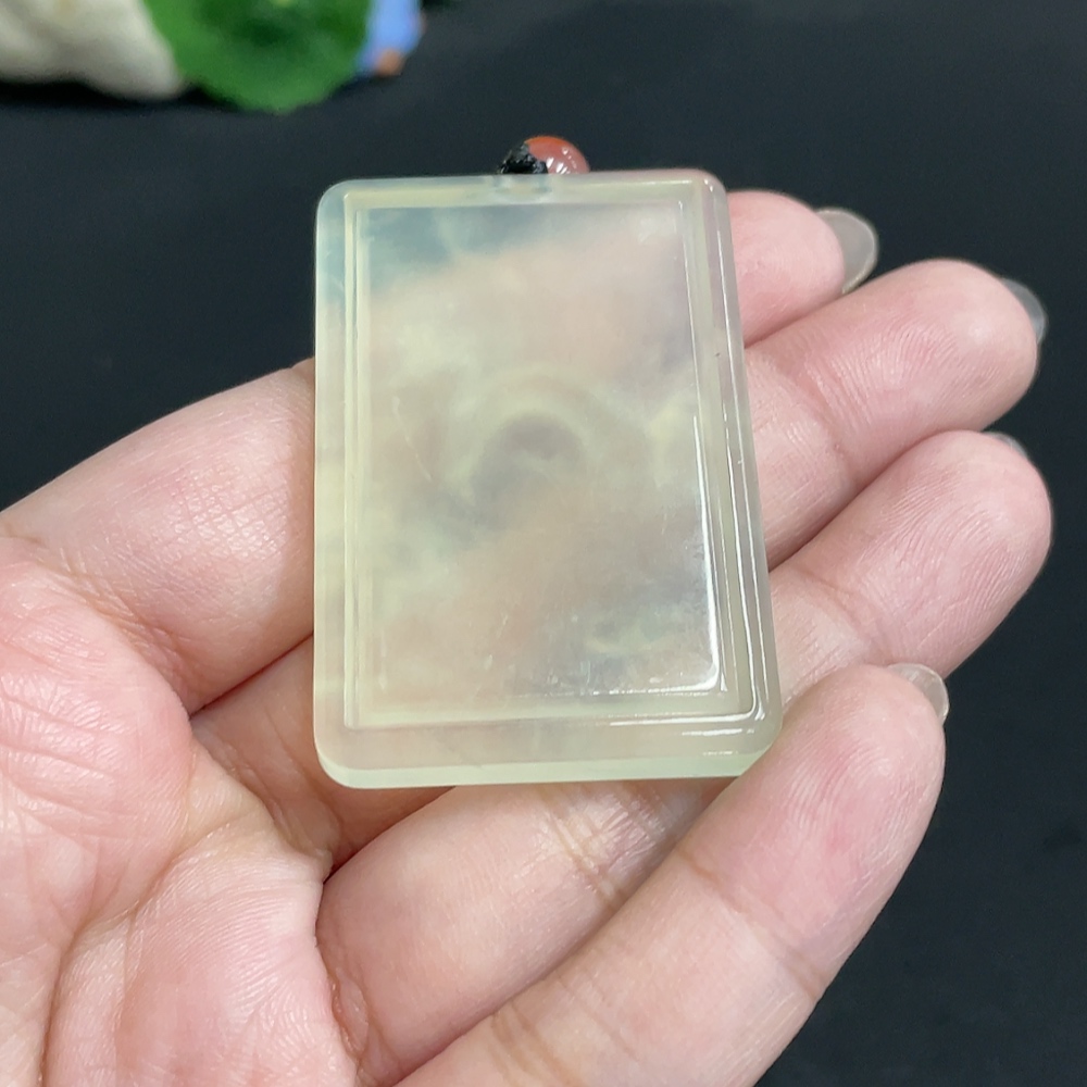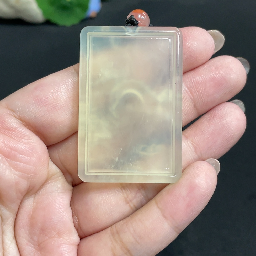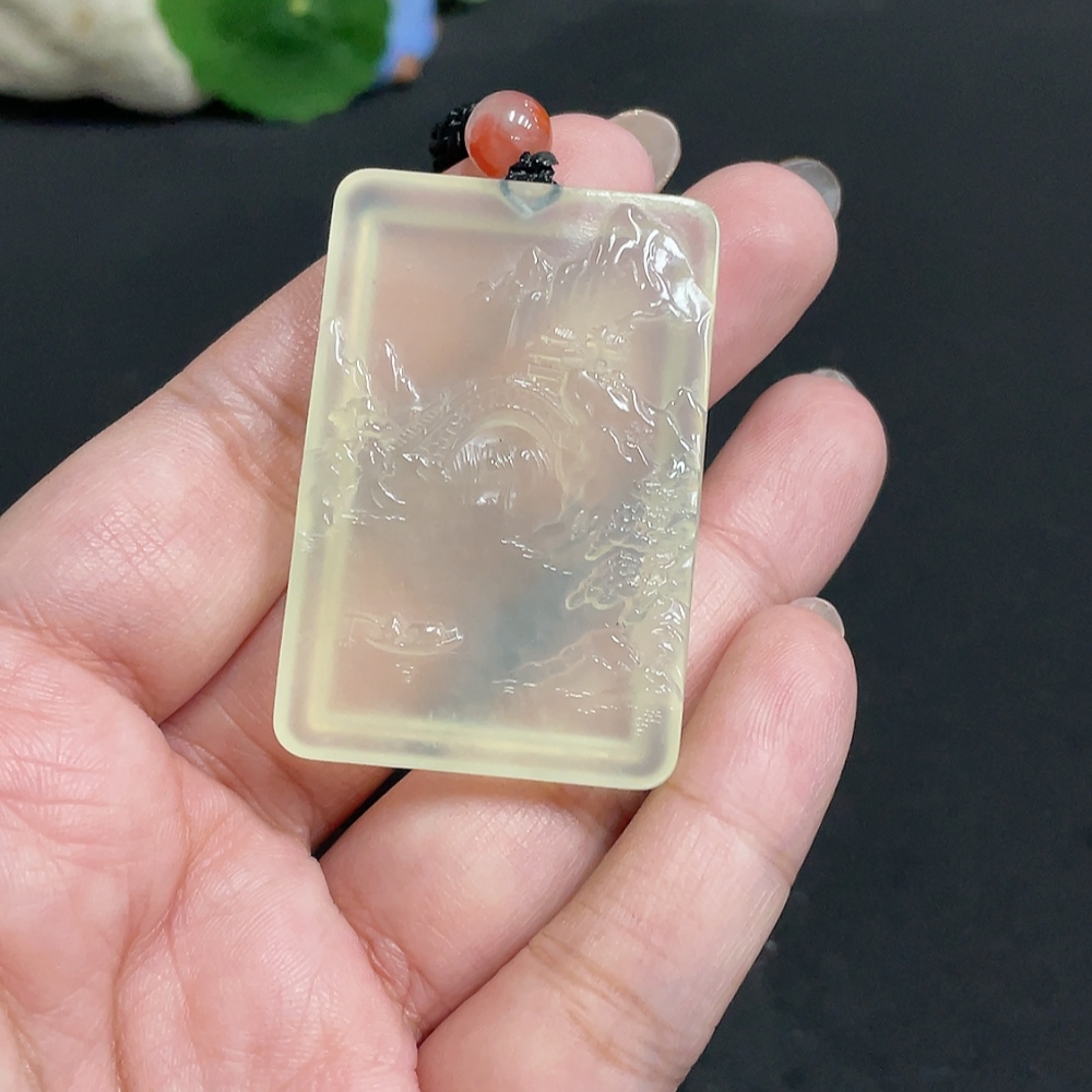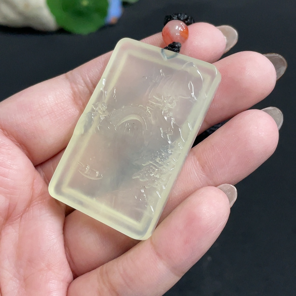 Xiuyu (serpentine jade) pendant with landscape design, non-Xiuyu beads included, total weight approx. 28.2g (including cord)