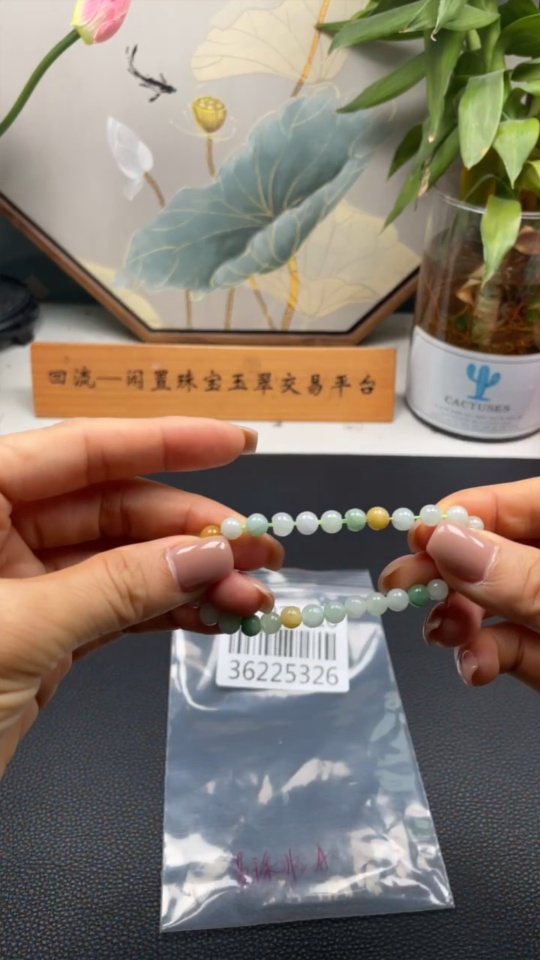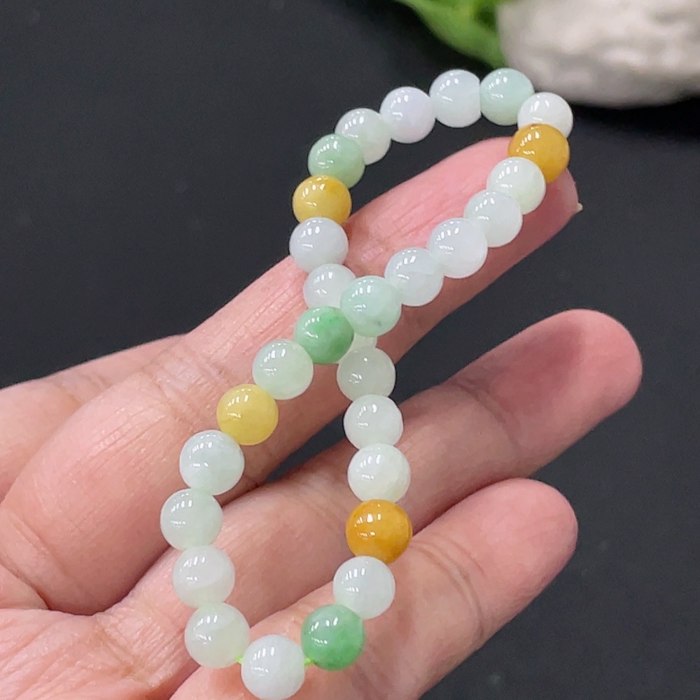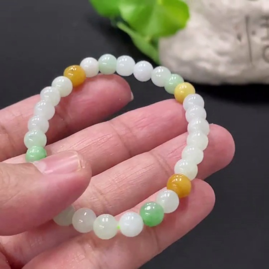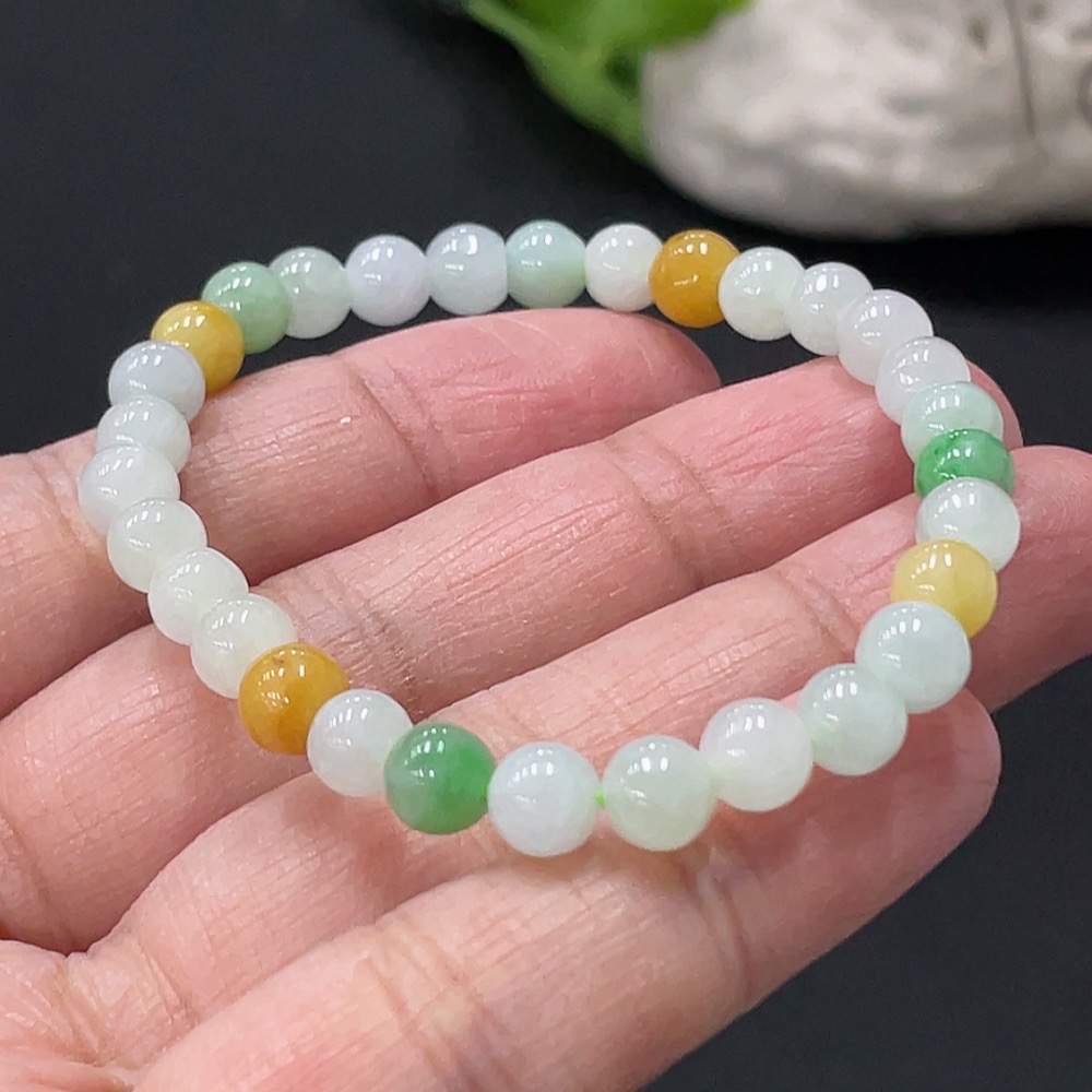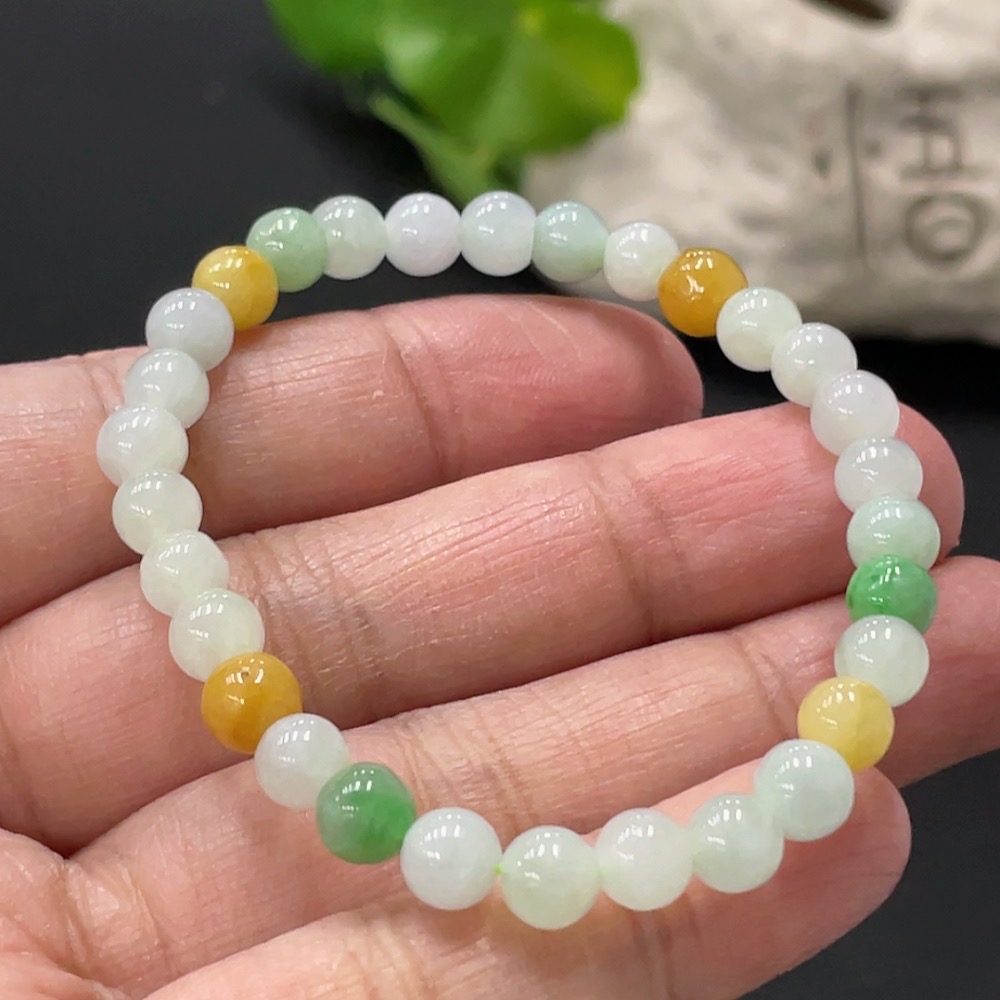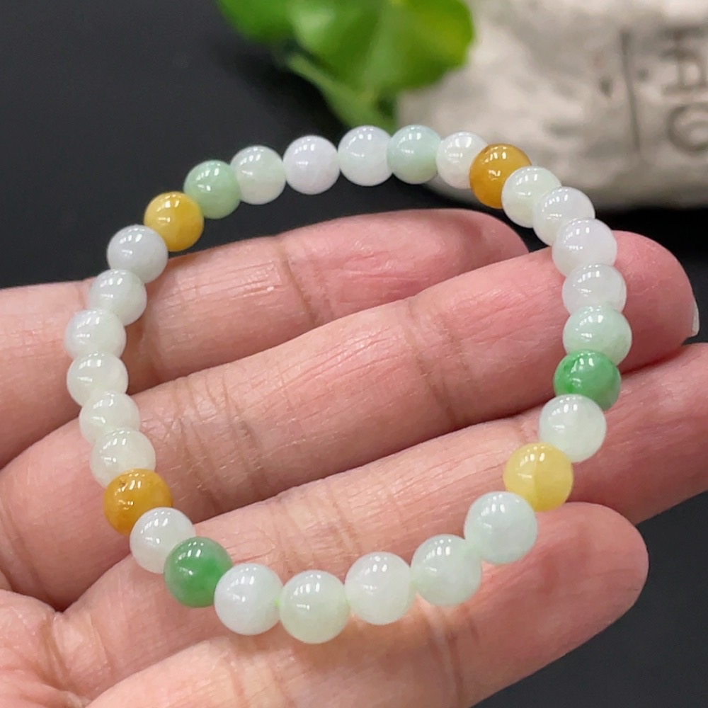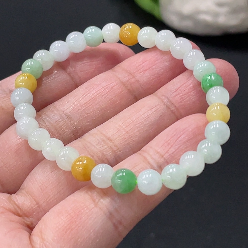 Jadeite Bracelet Approx. 5.8mm Beads Yellow Non-Grade A Total Weight Approx. 9.62g