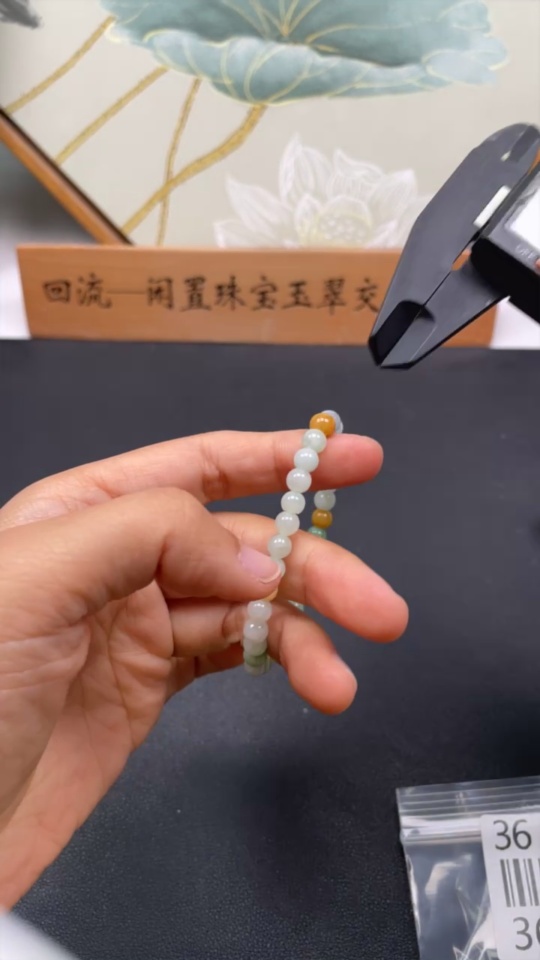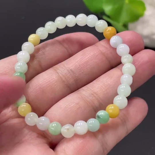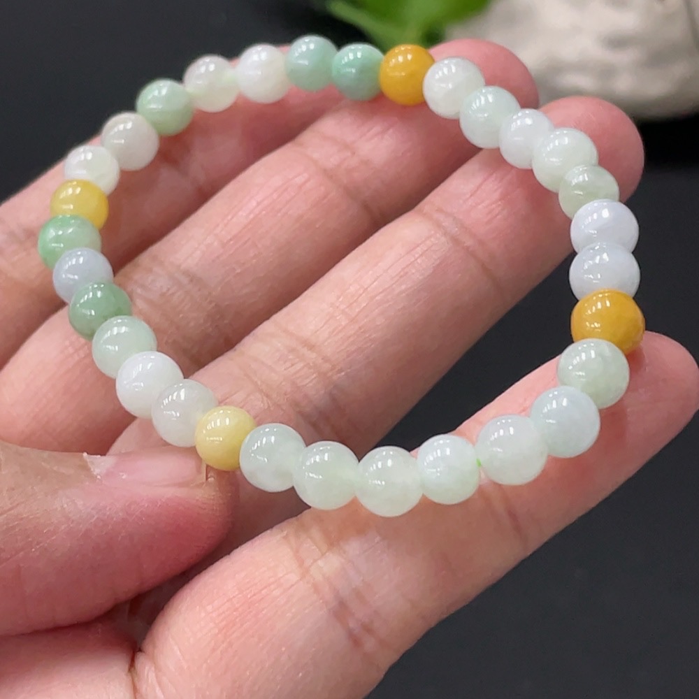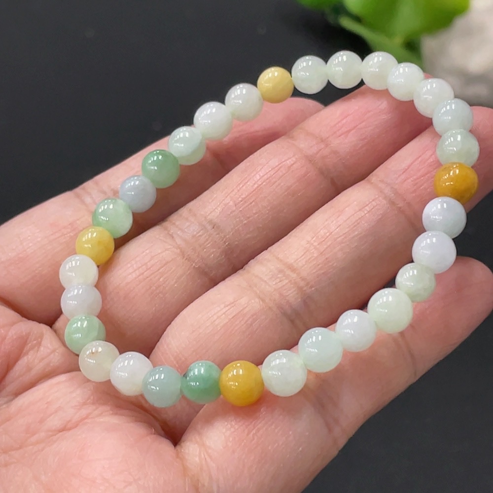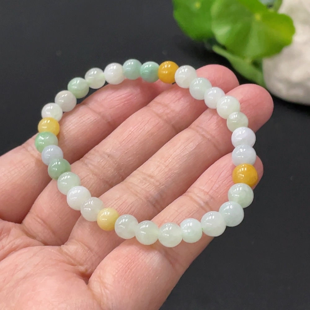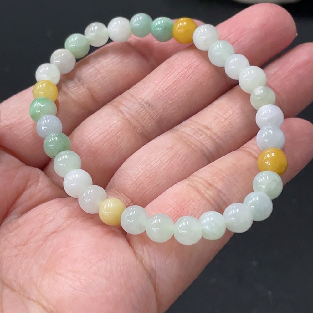 Jadeite Bracelet Approx. 5.8mm Beads Yellow Non-A Total Weight Approx. 10.25g