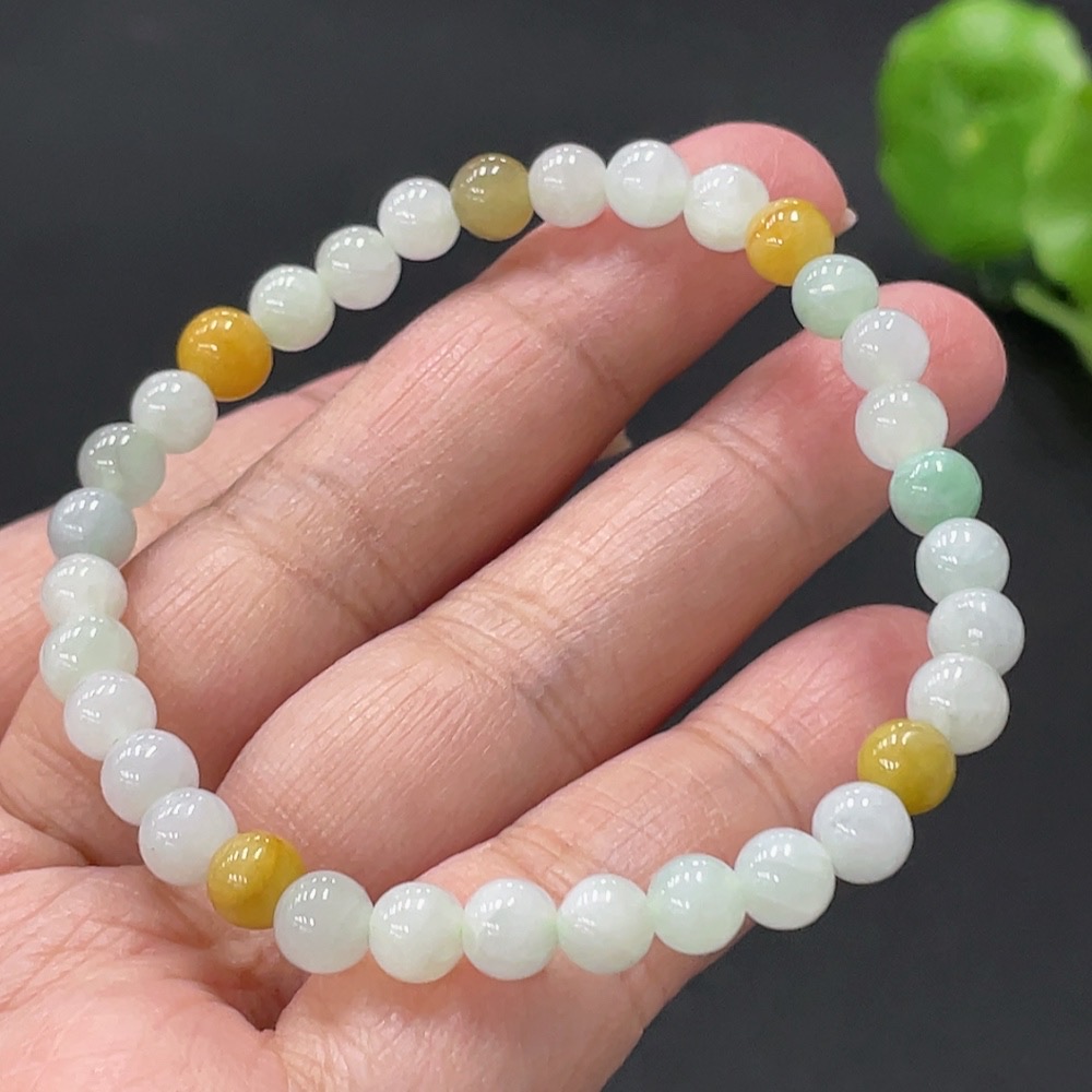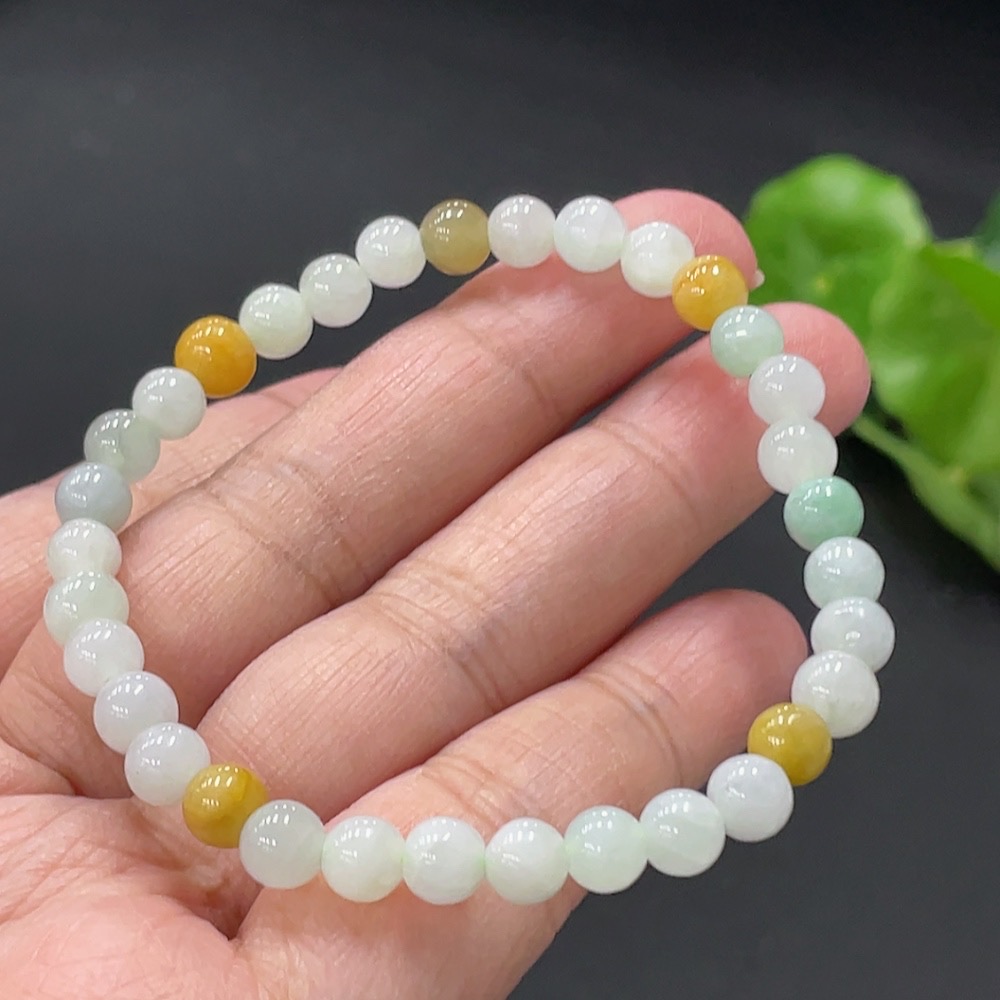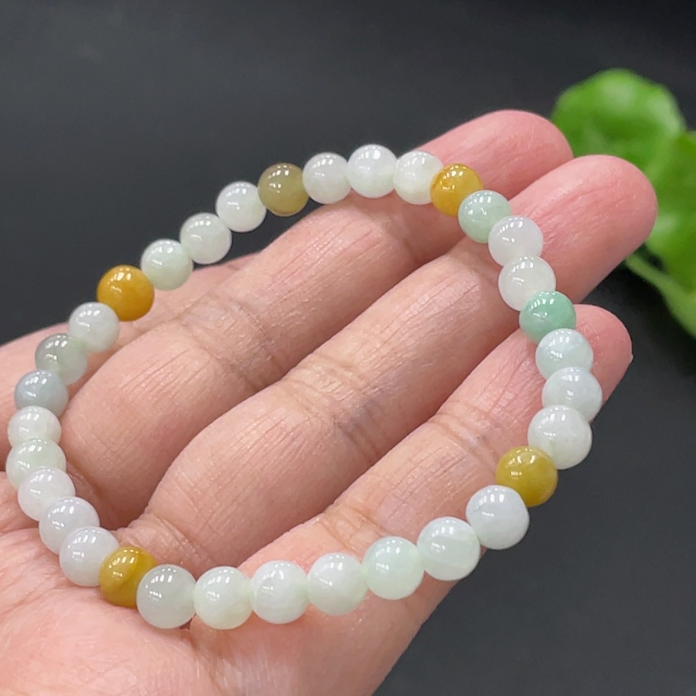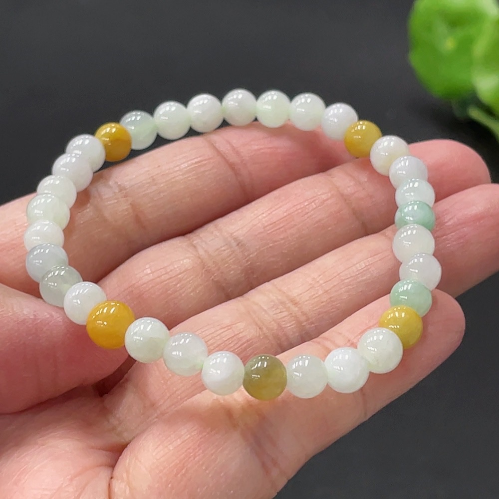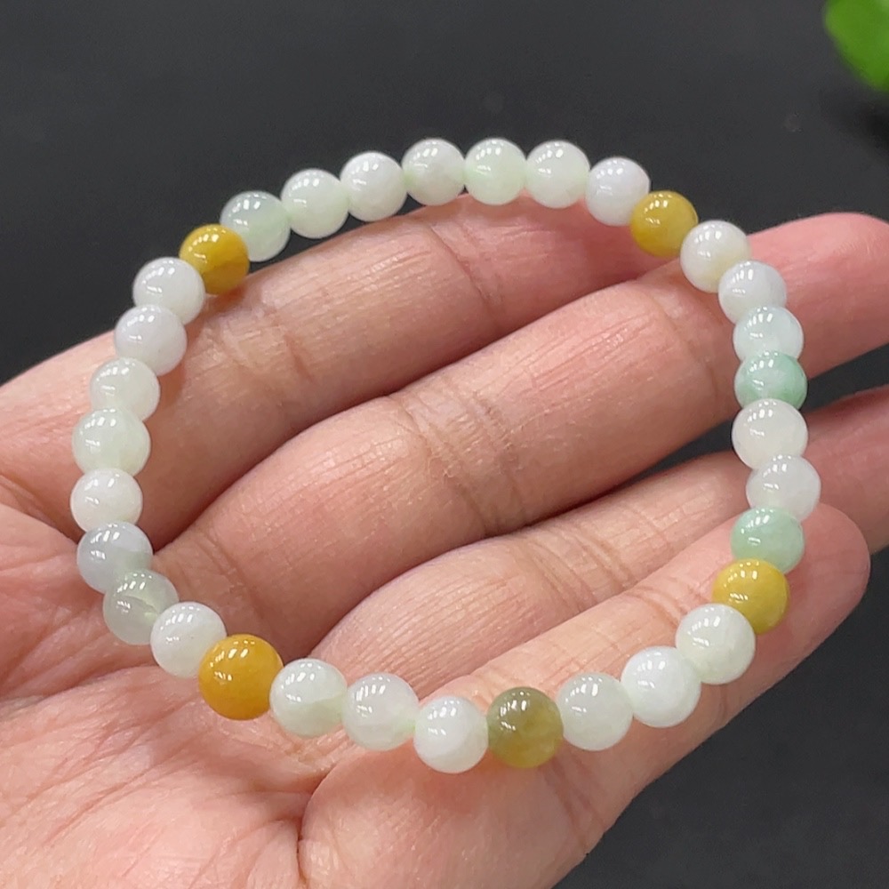 Jadeite Beads Bracelet Approx. 5.5mm Yellow Beads Non-Grade A Total Weight Approx. 10g