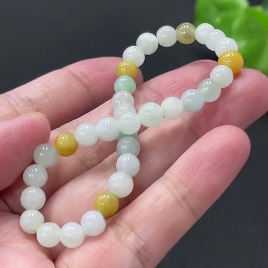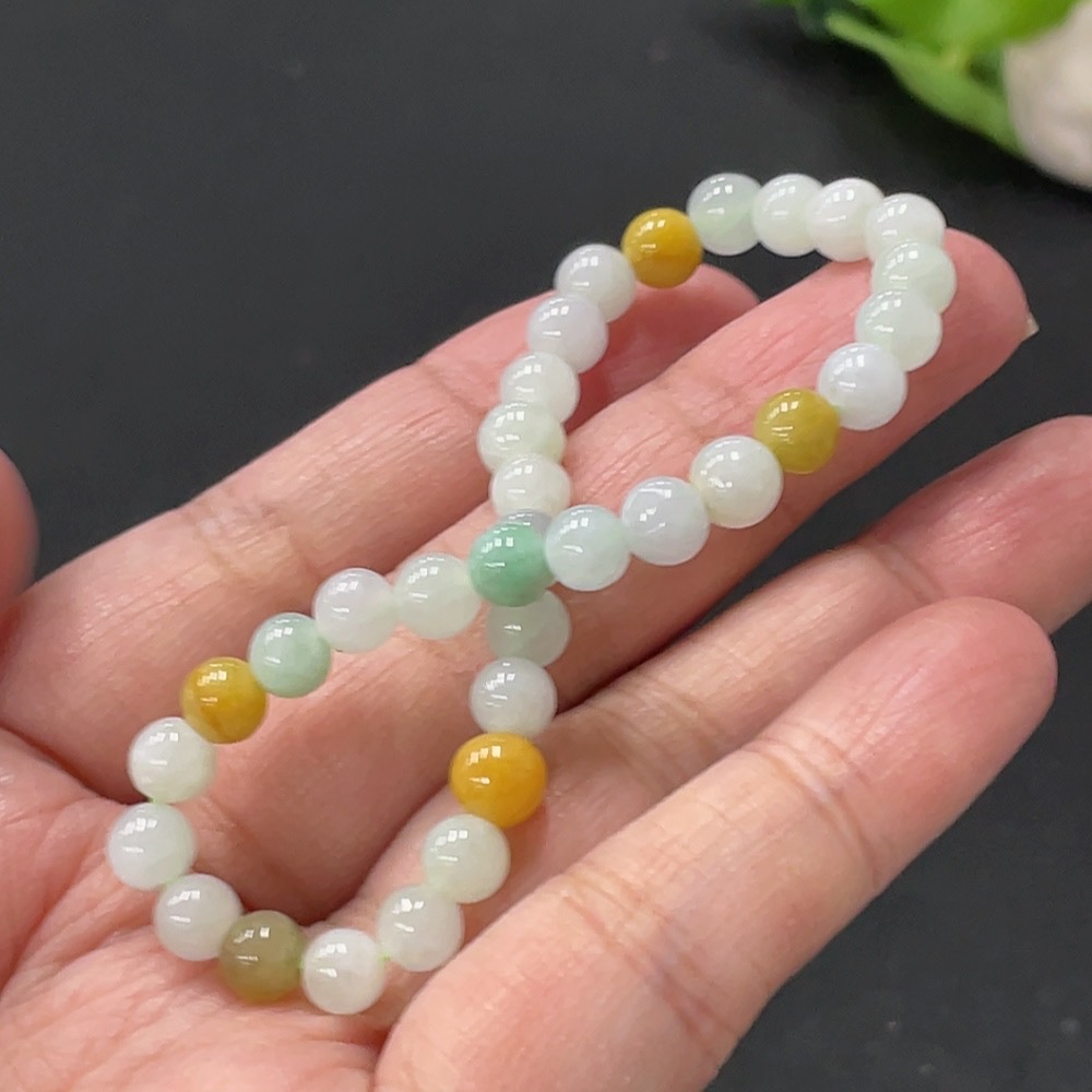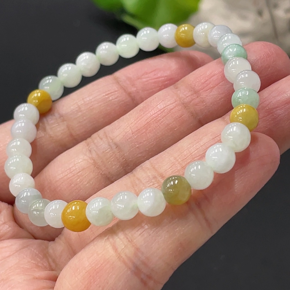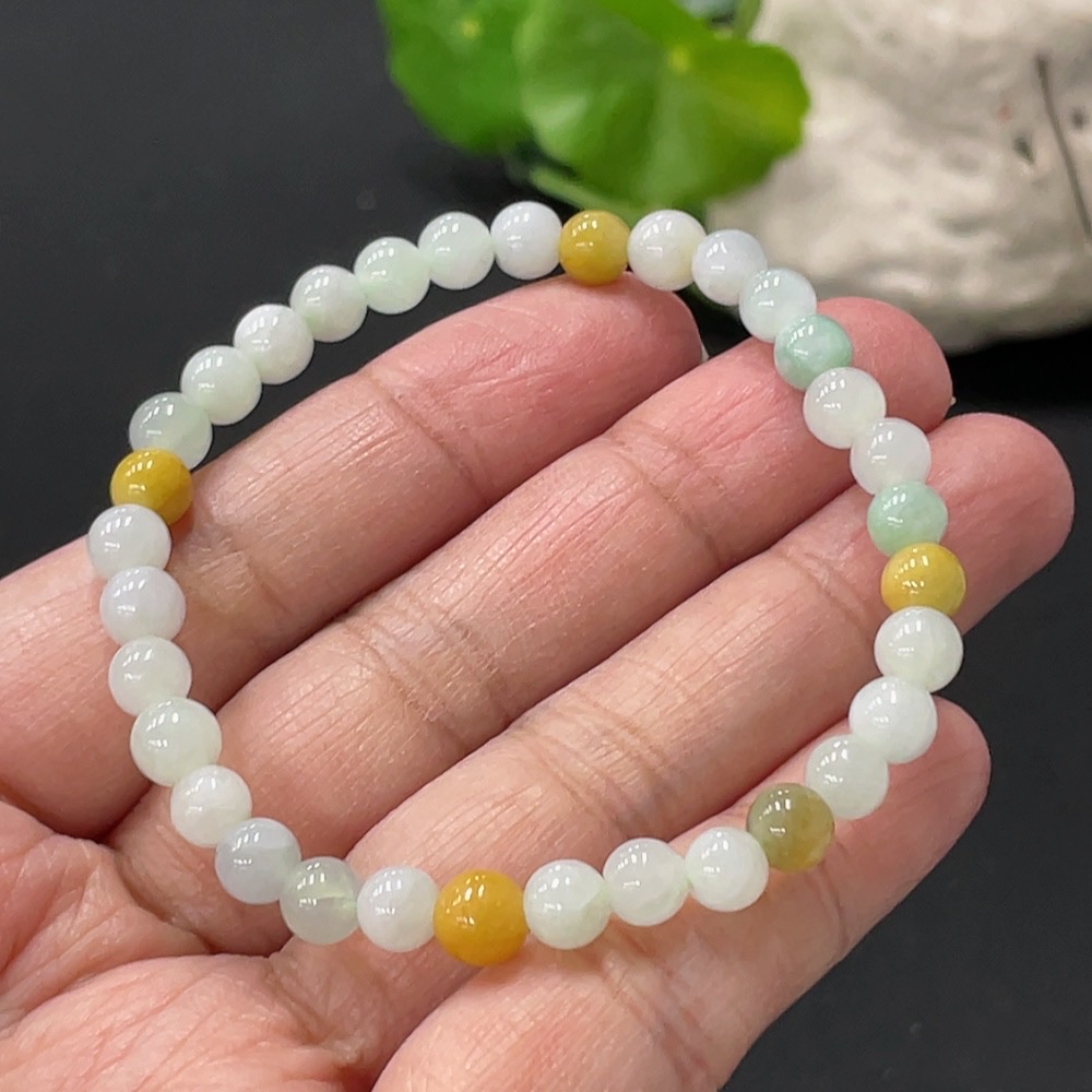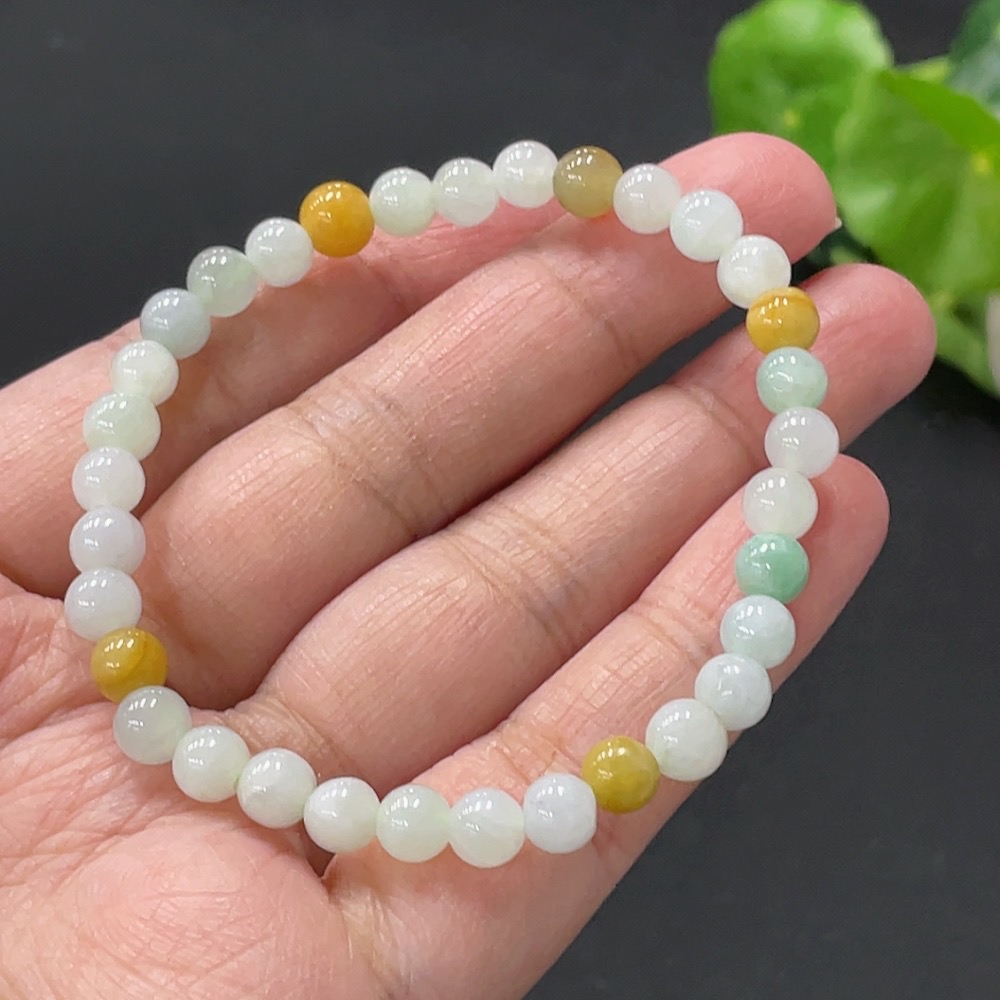 Jadeite Beads Bracelet Approx. 5.5mm Yellow Beads Non-Grade A Total Weight Approx. 10g