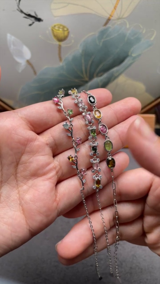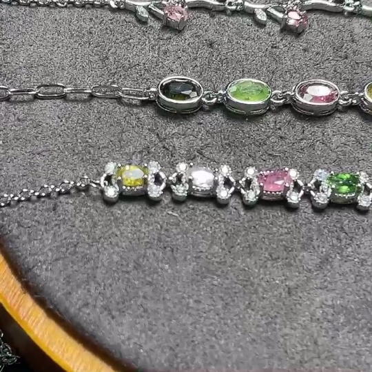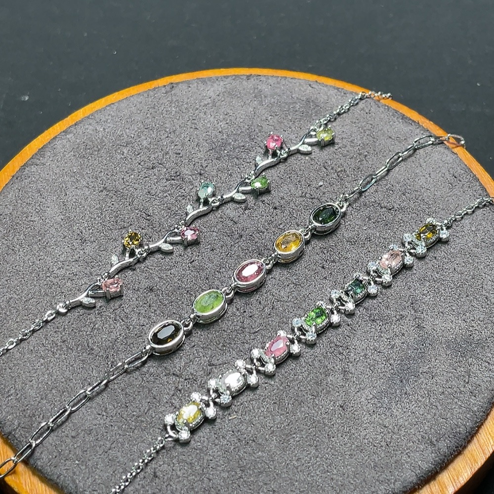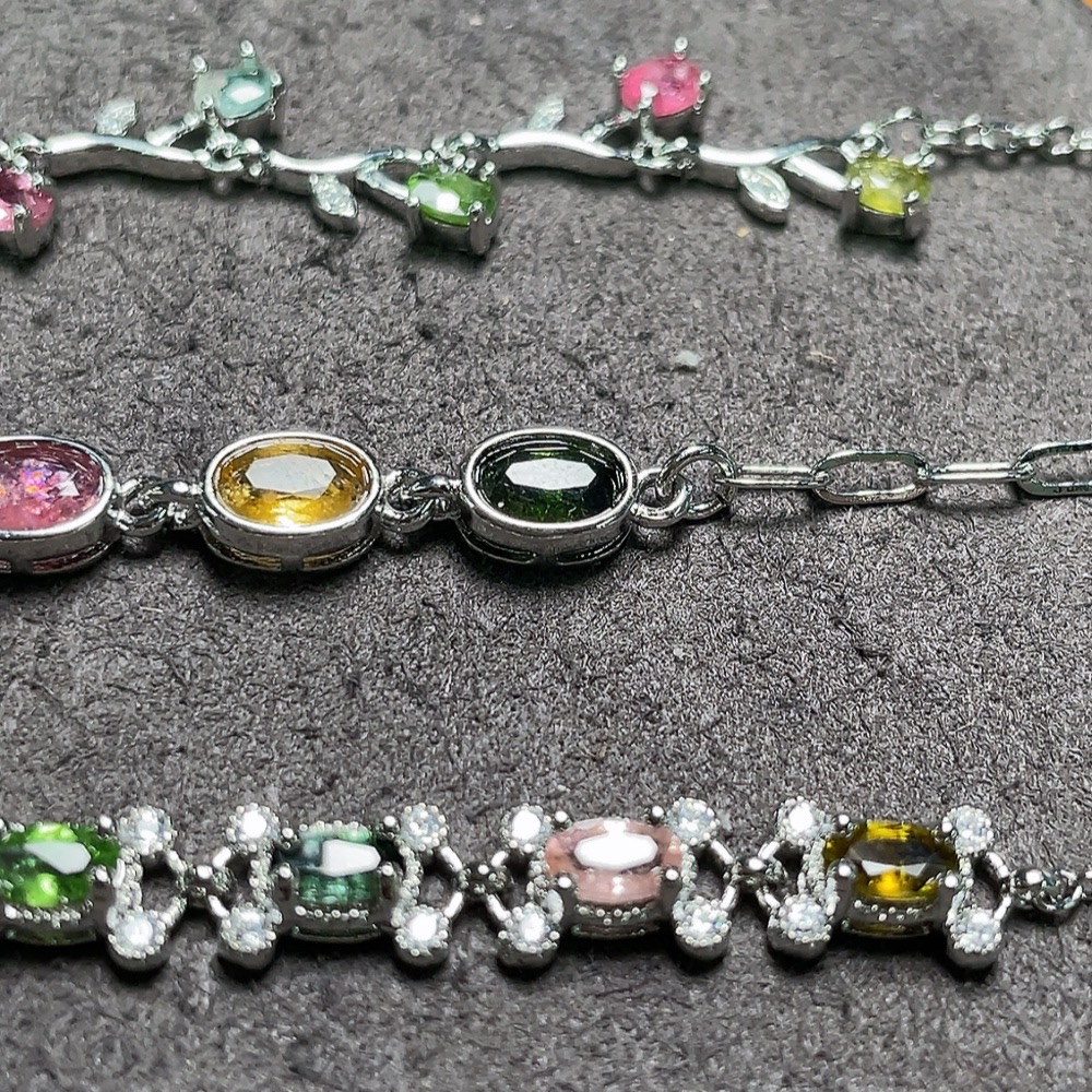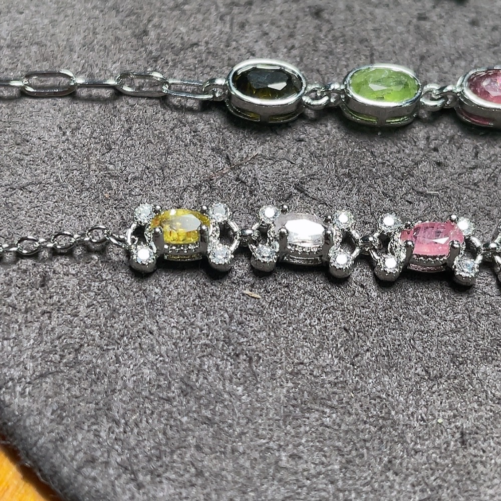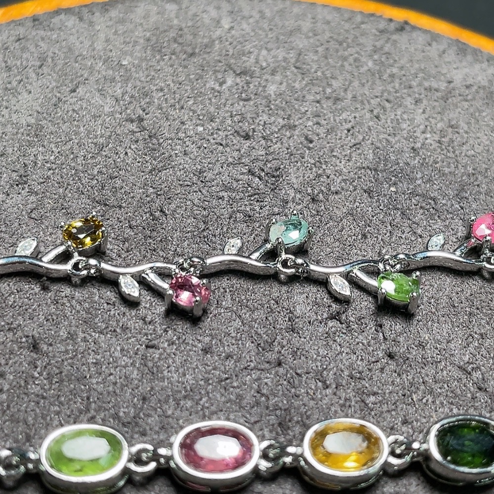 Trezaar - Tourmaline Bracelet with Visible Organic Matter, Non-Gold, Total Weight Approx. 9.7g, Sell as a Lot