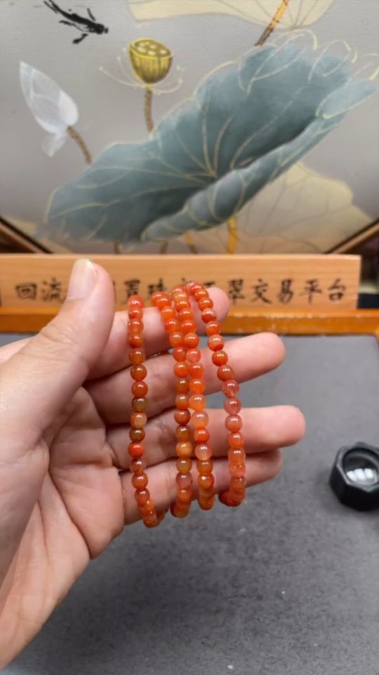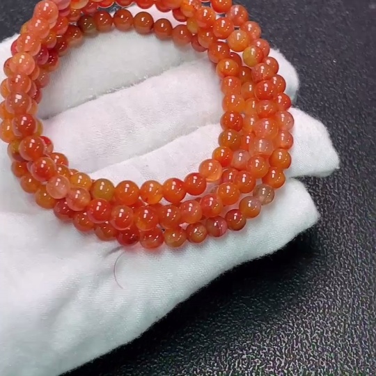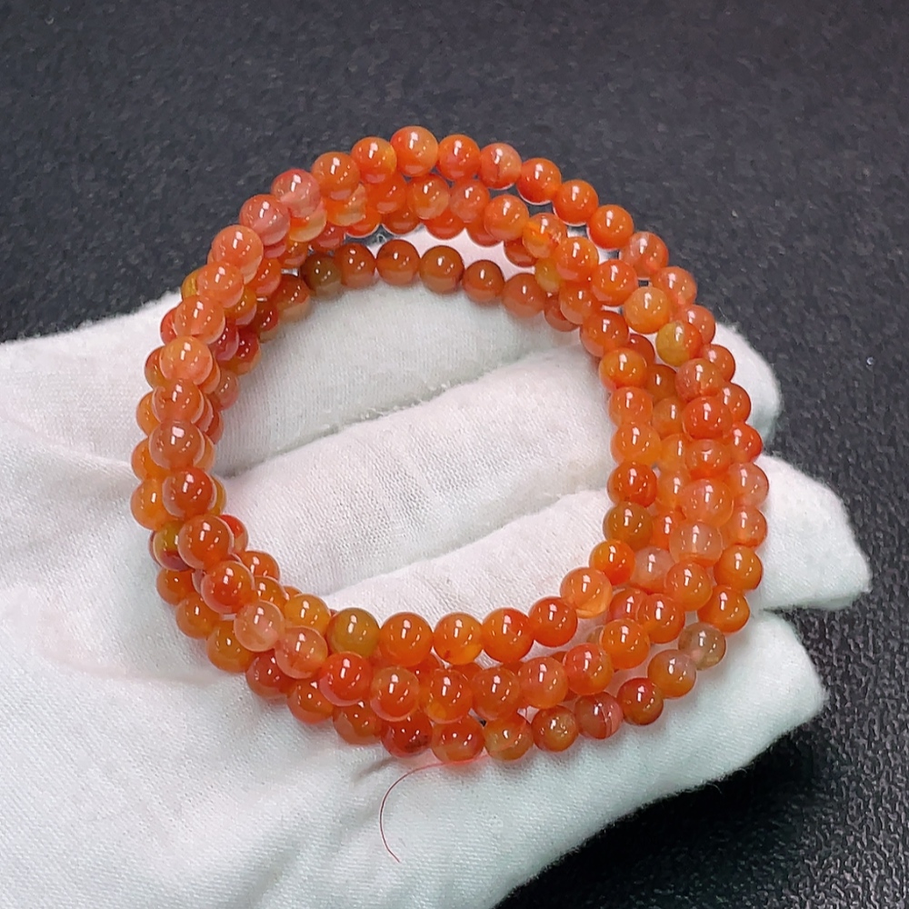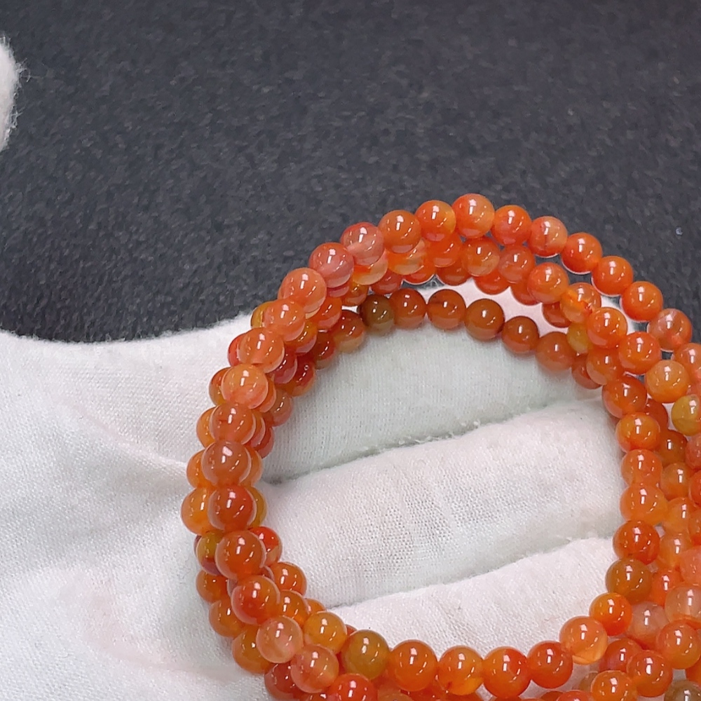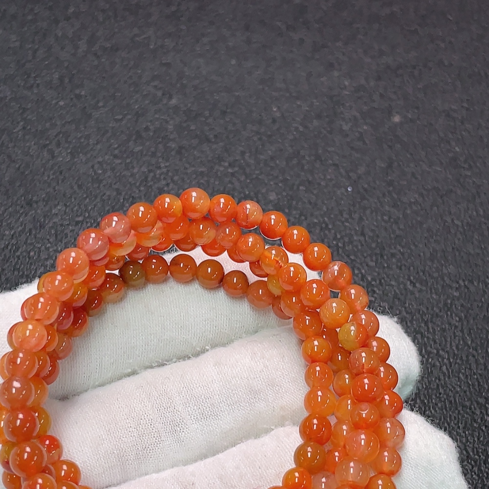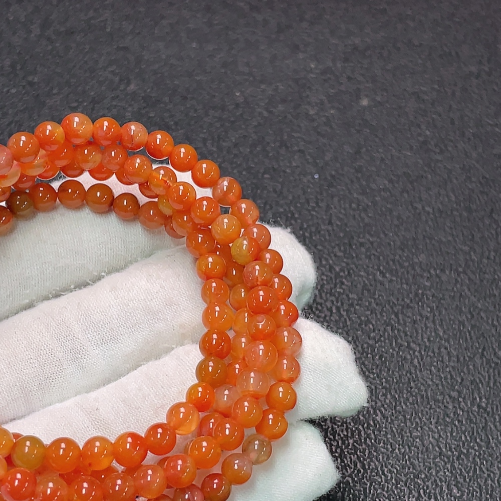 South Red Agate Bead Strand with Visible Organic Matter, Total Weight Approximately 26.03g, Size About 5.2mm