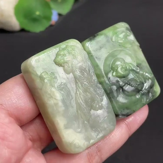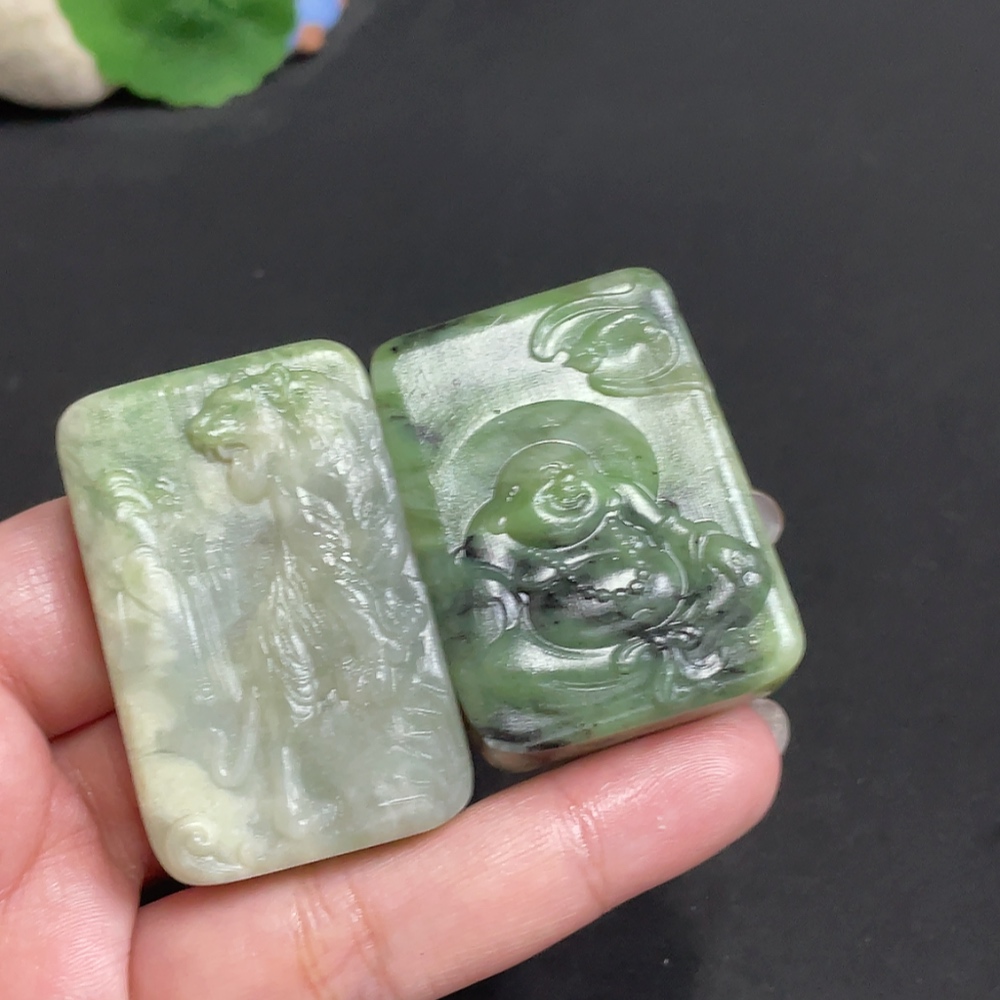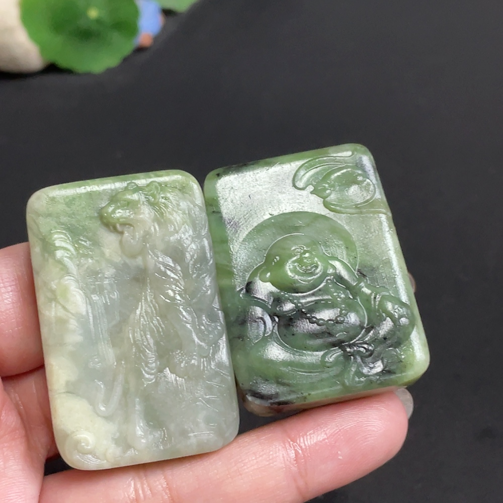Hetian Jade Pendant Buddha + Mountain Tiger Total Weight Approx. 98.4g