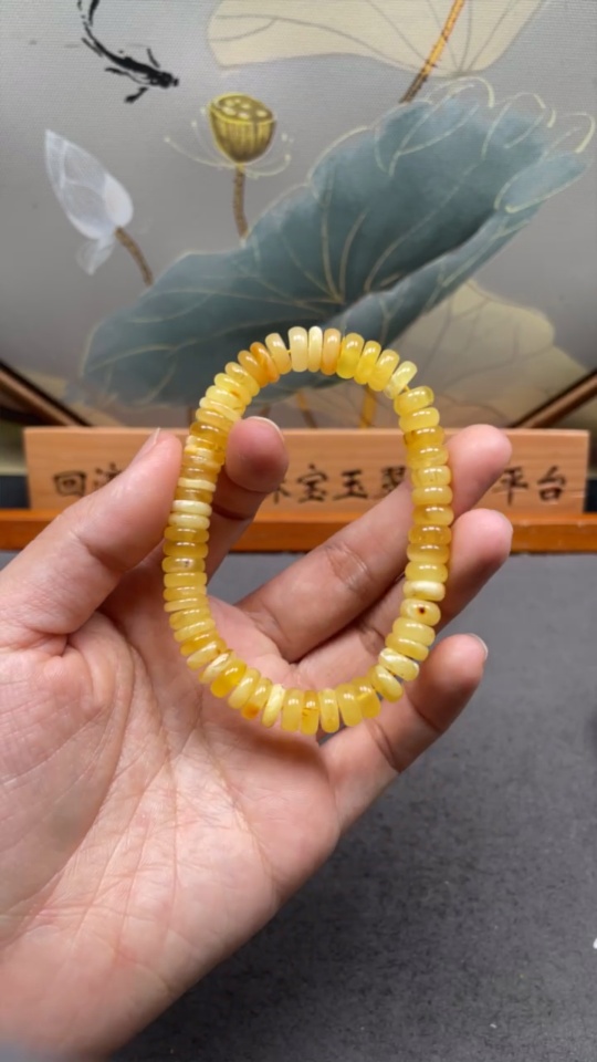 Amber Beeswax Bracelet, Total Weight Approx. 10.95g, Size About 9.5mm