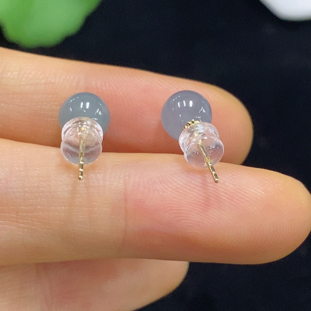 Jadeite Bezel-Set Stud Earrings 18k Gross Weight Approx.1.11g (Excl. Backs)