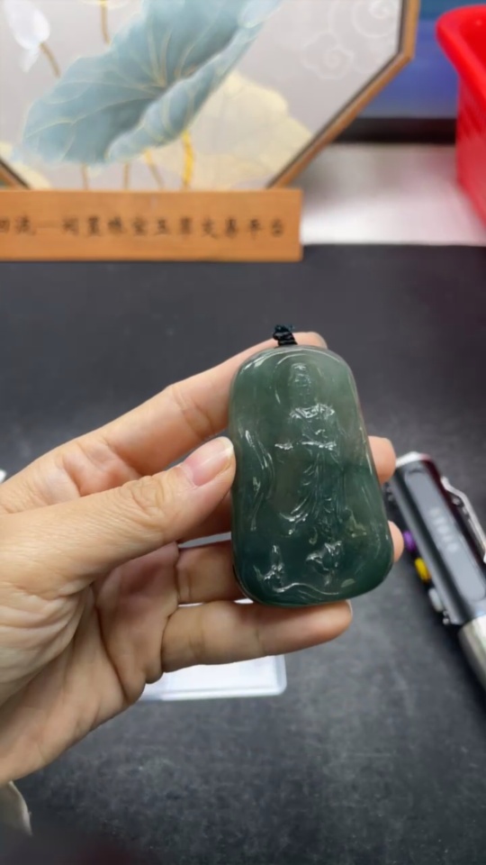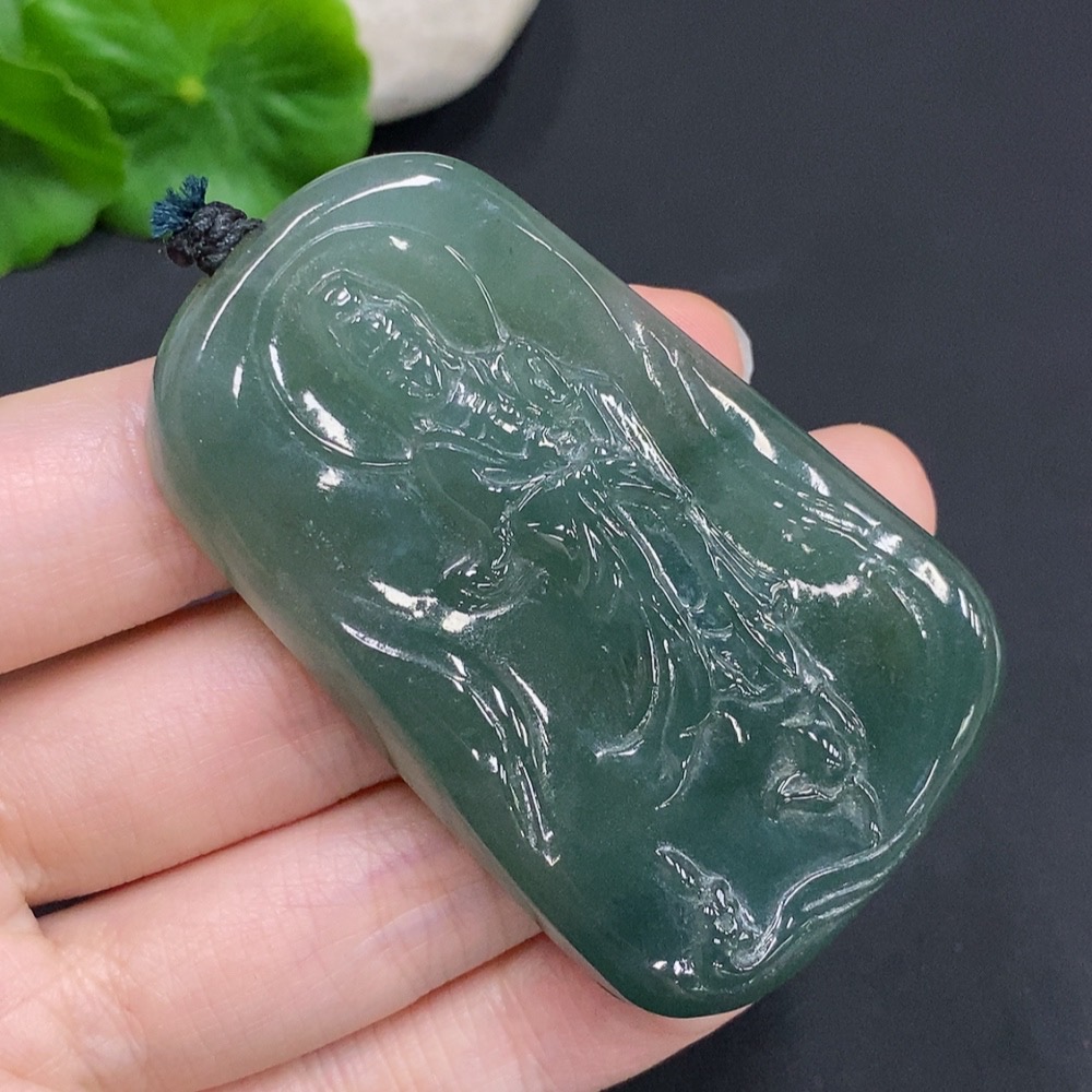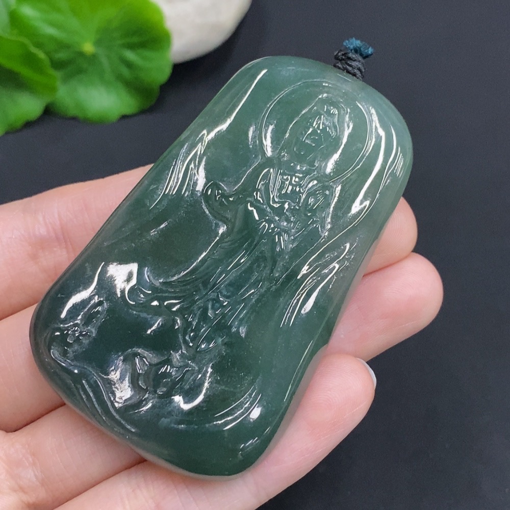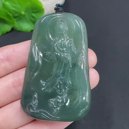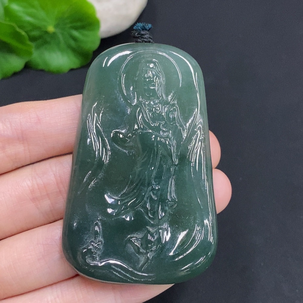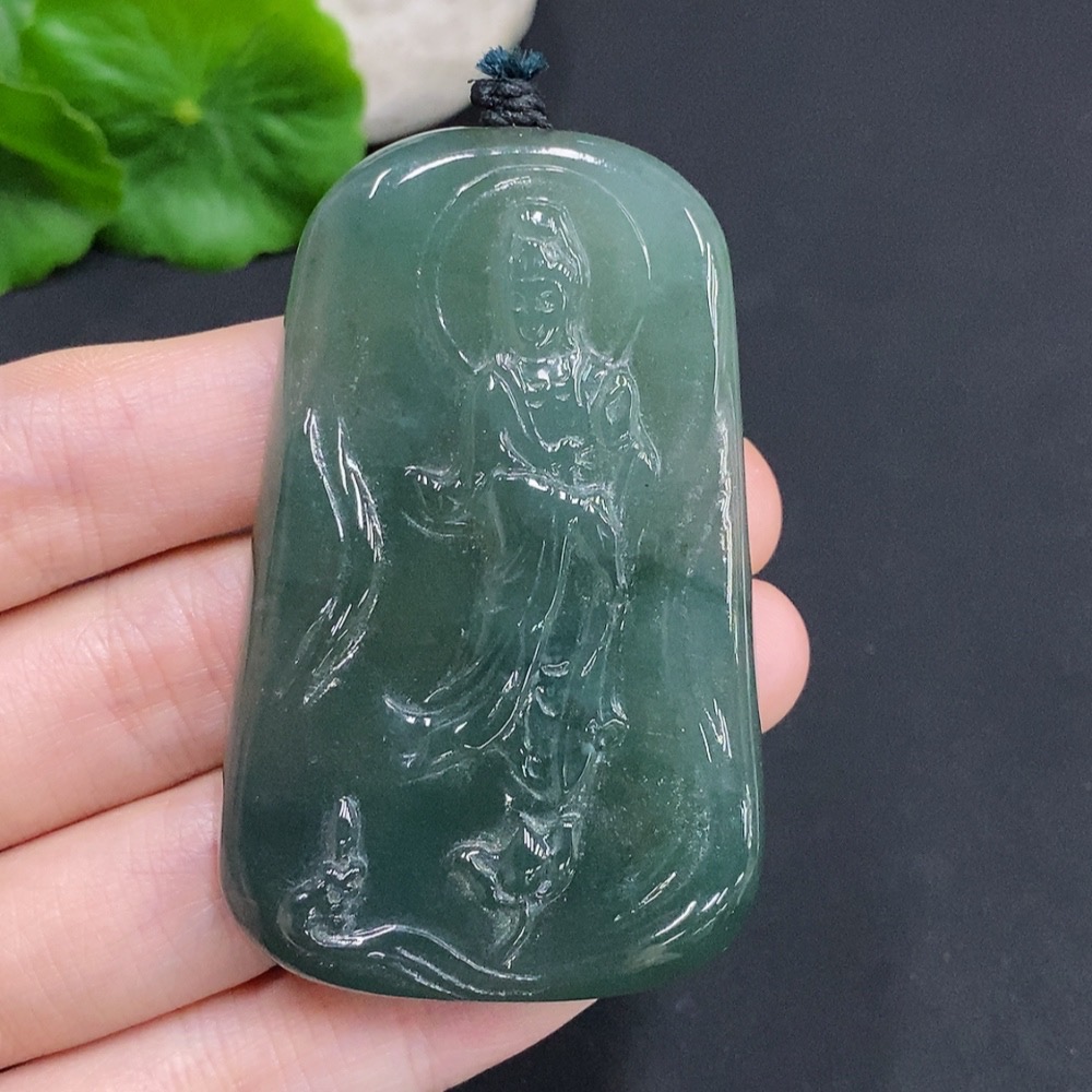 Jadeite Guanyin Pendant, Total Weight Approximately 51.8 Grams