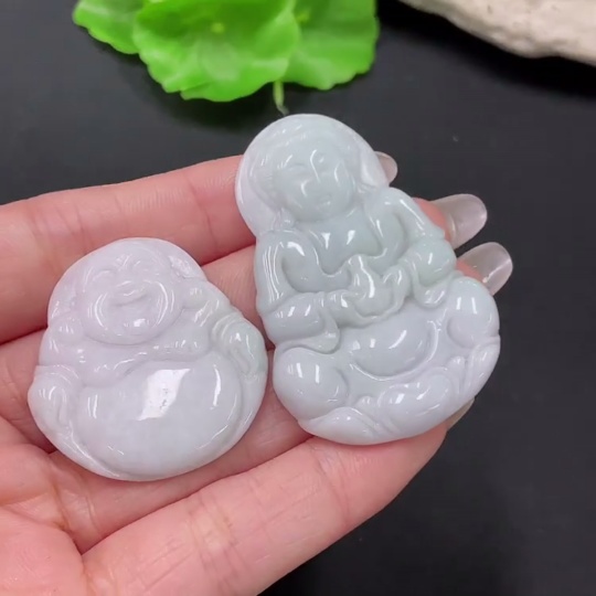 Jadeite Pendant Buddha + Guanyin Sell as a Lot