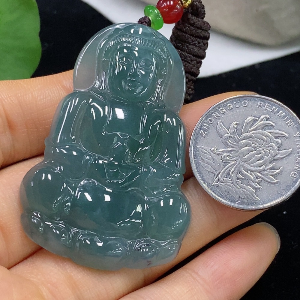 Jadeite Guanyin Pendant Total Weight Approx. 20.42g (including rope weight)