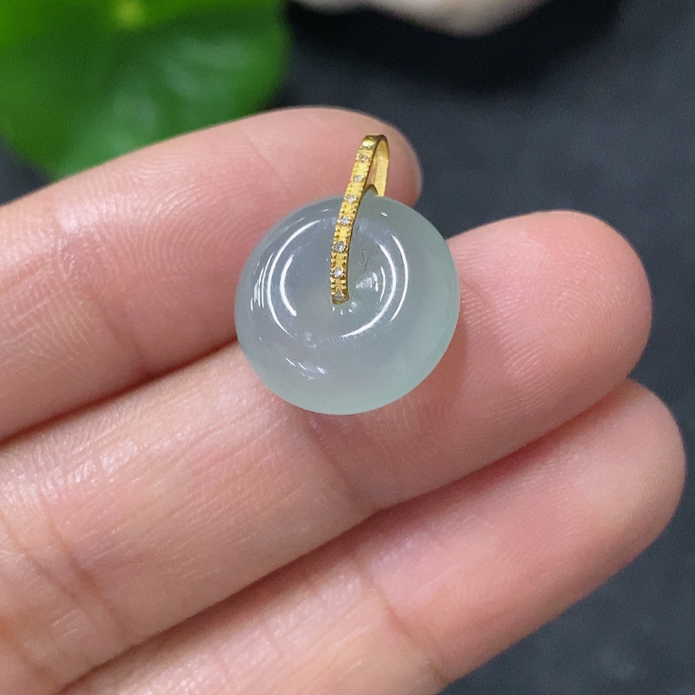 Jadeite Pendant Peace Knot 18k Total Weight Approx. 2.13g with Diamond Accents