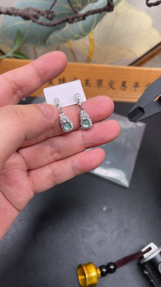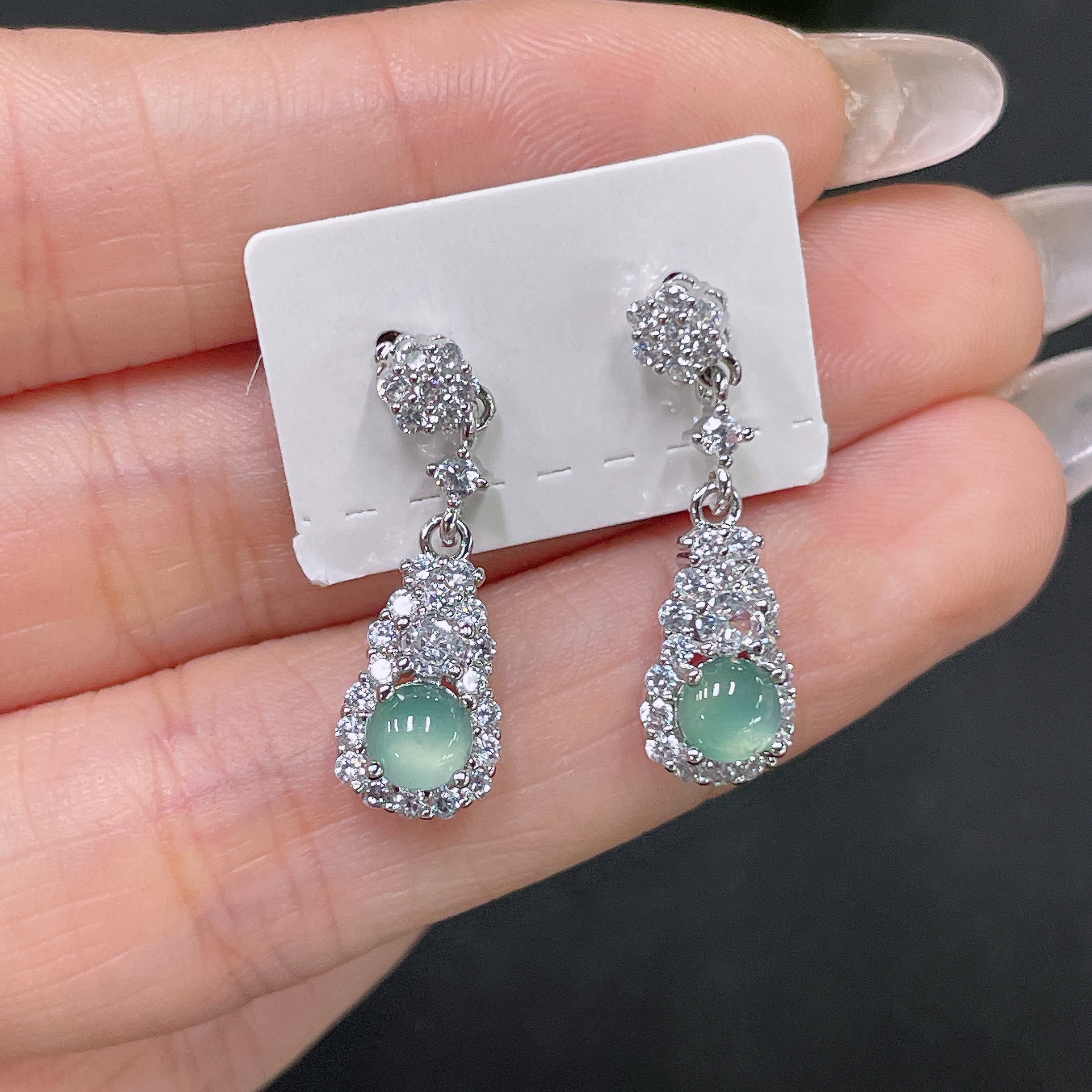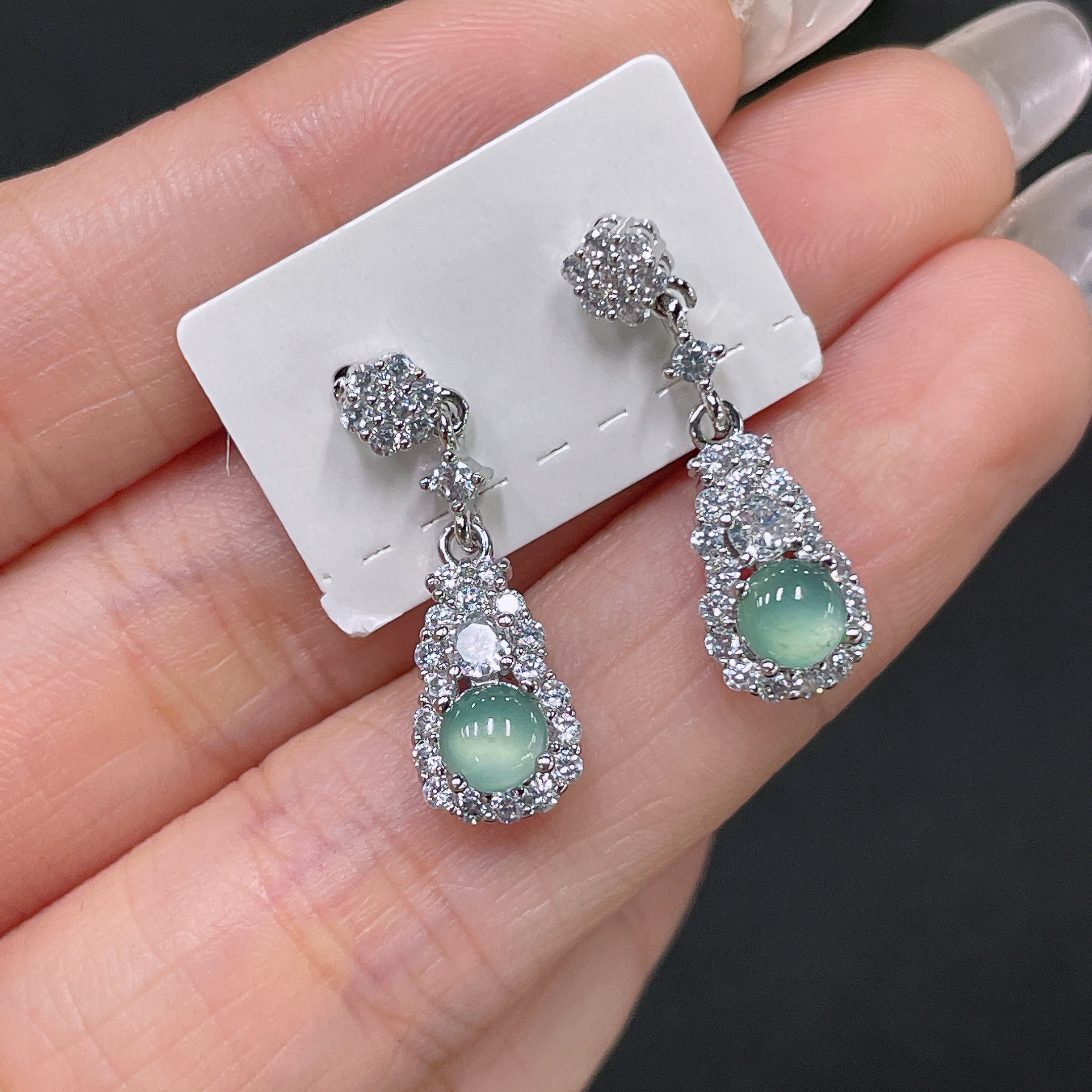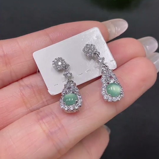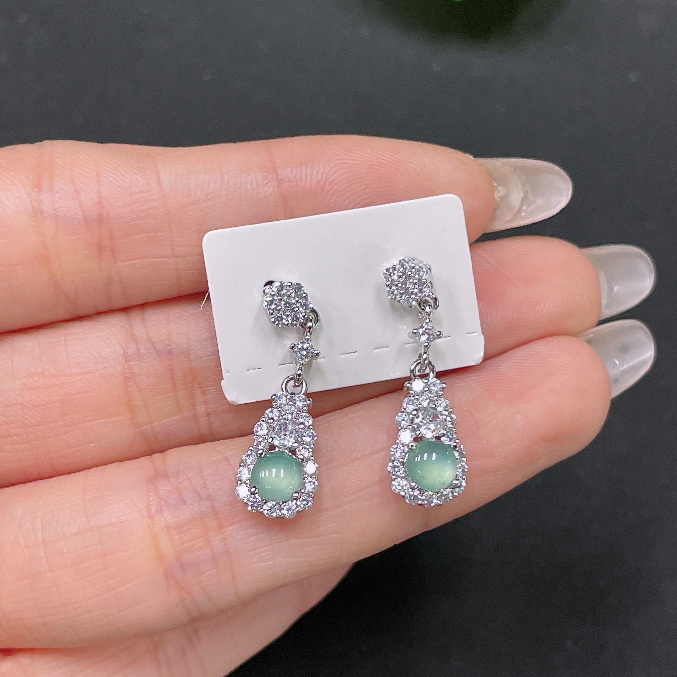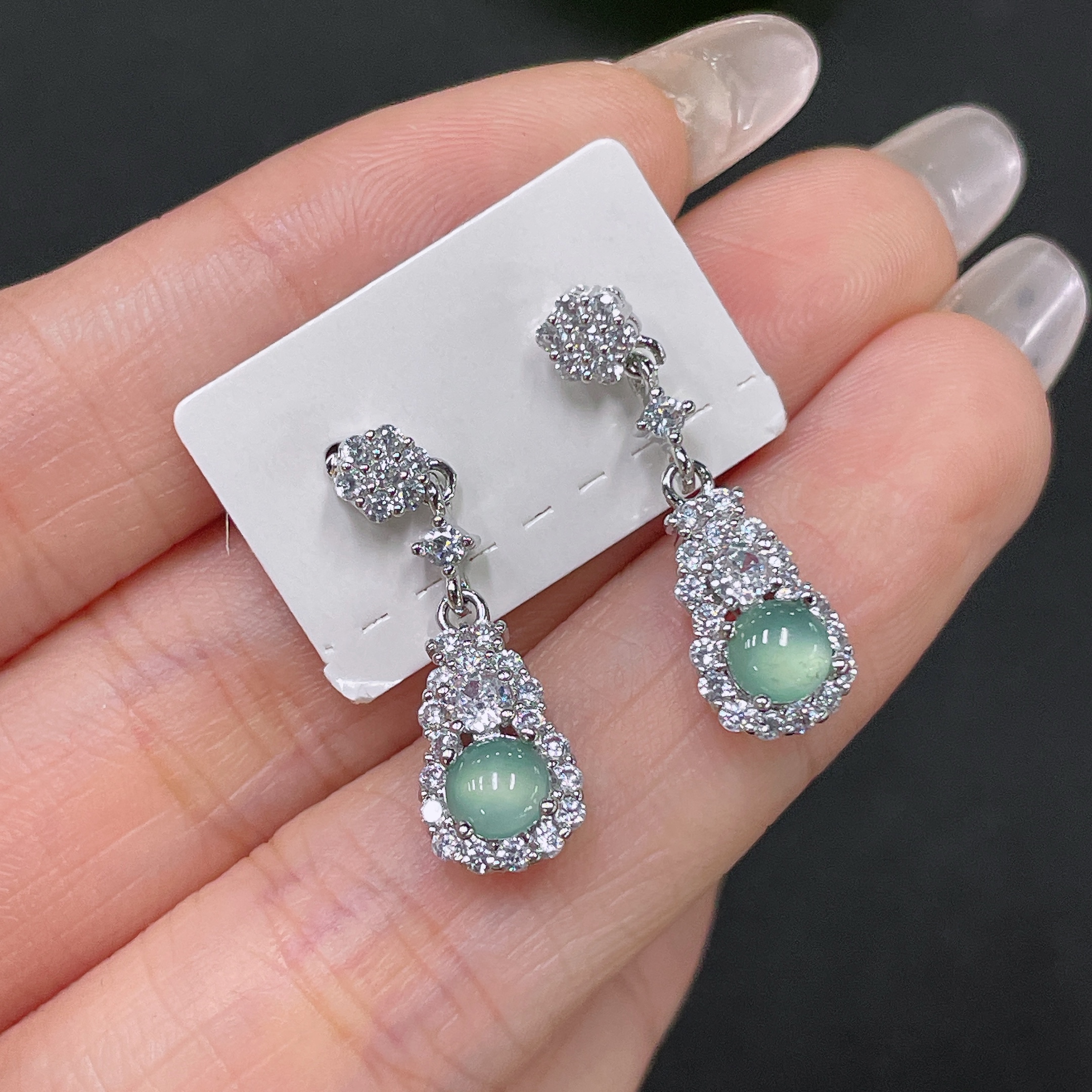 Jadeite cabochon earrings, non-gold, total weight approx. 2.92g