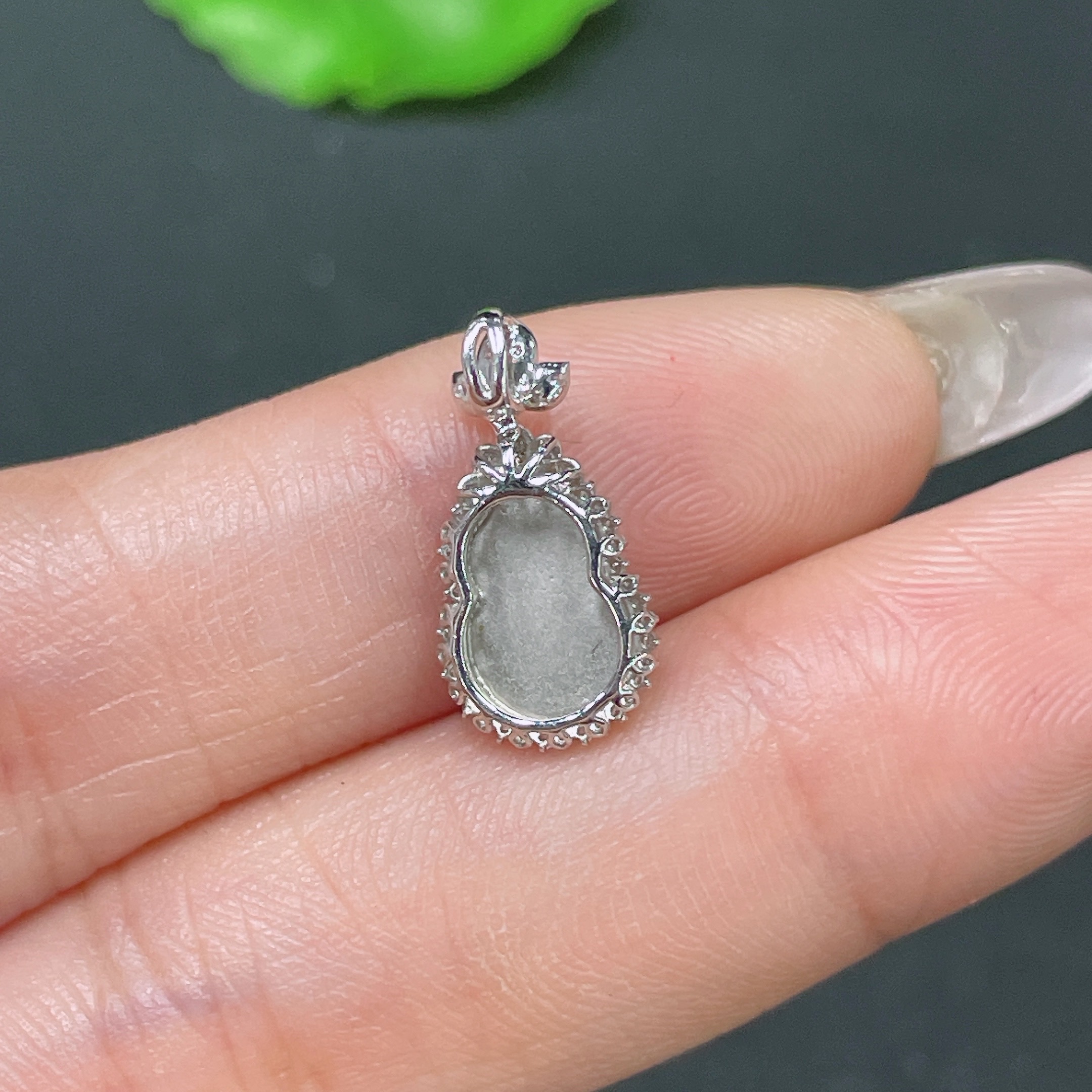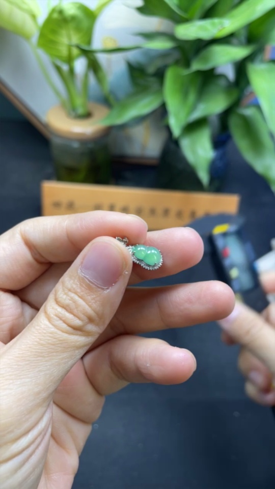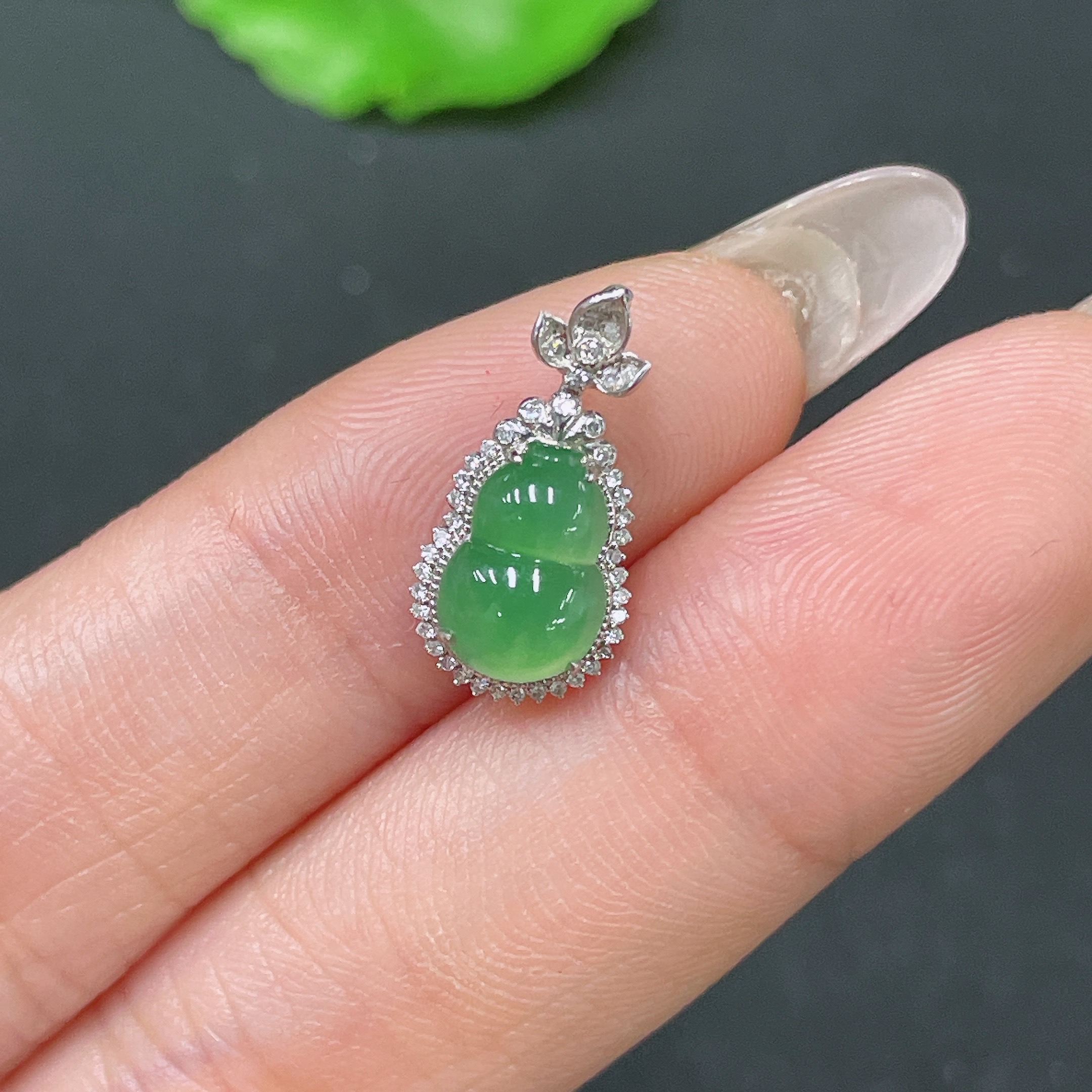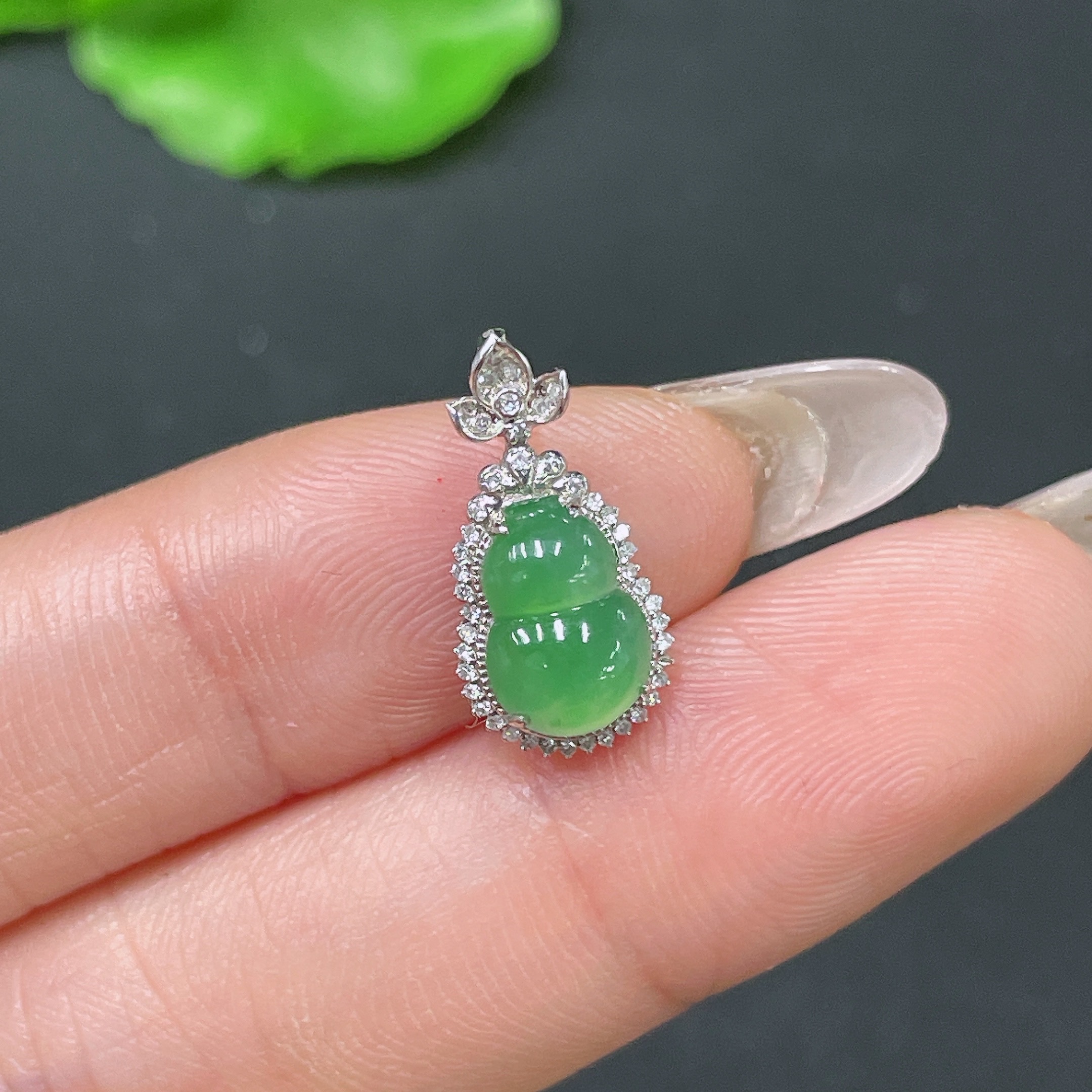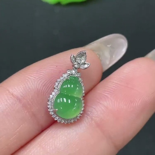 Jadeite Gourd Inlaid Pendant with 18k Gold and Diamonds, Total Weight Approximately 0.91g