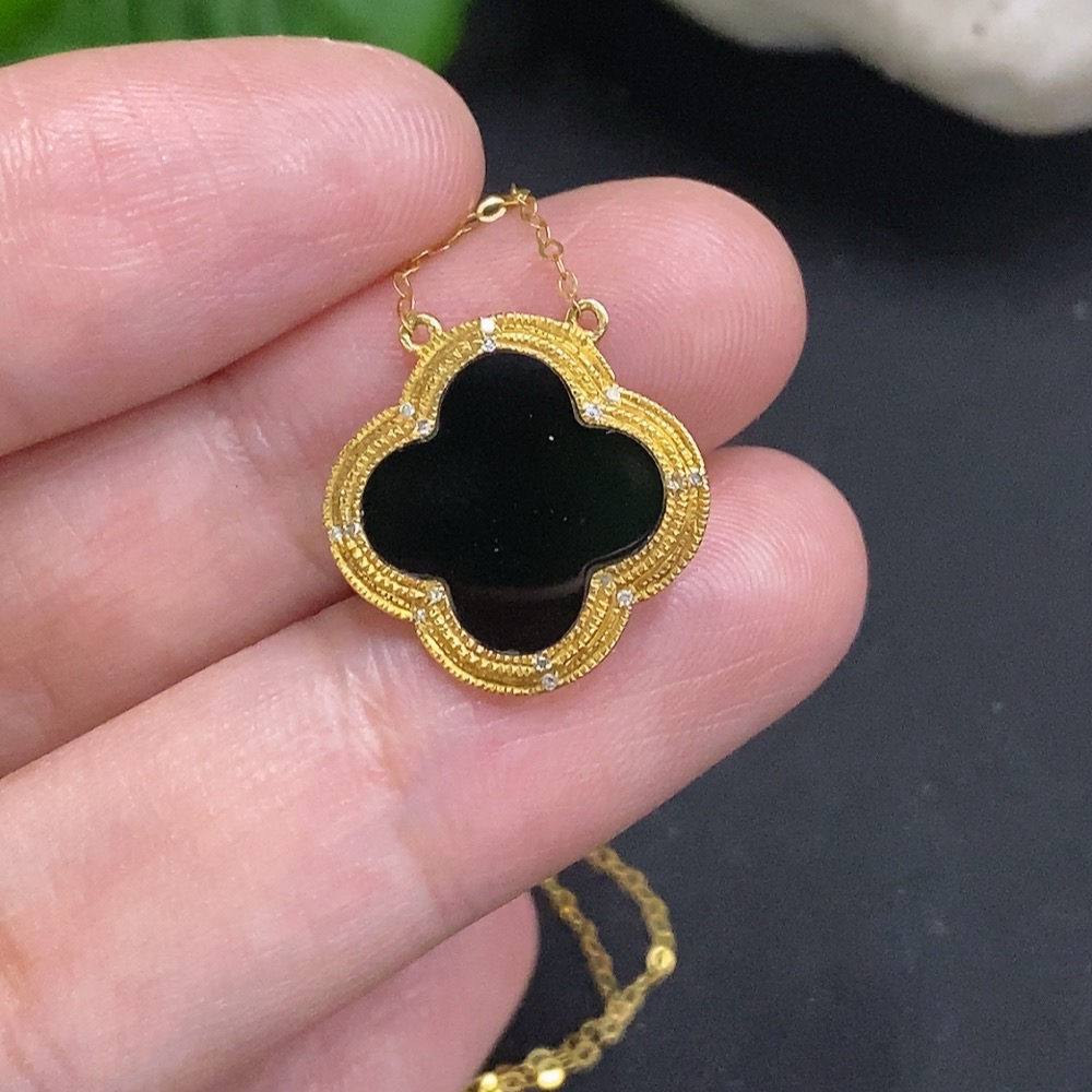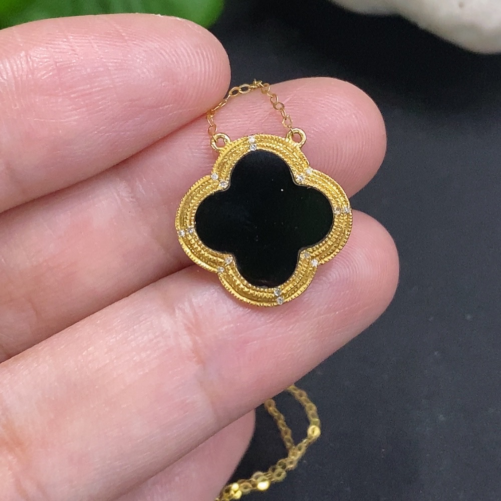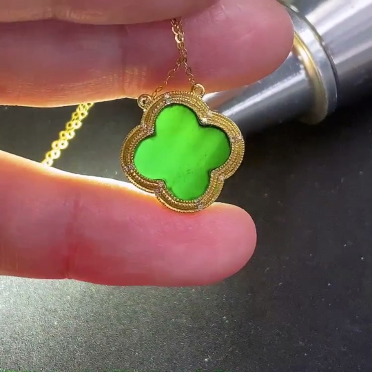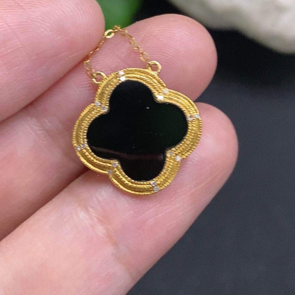 Jadeite Pendant with 18K Gold Mount, Total Weight Approx. 1.7g (Diamond Accented)