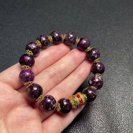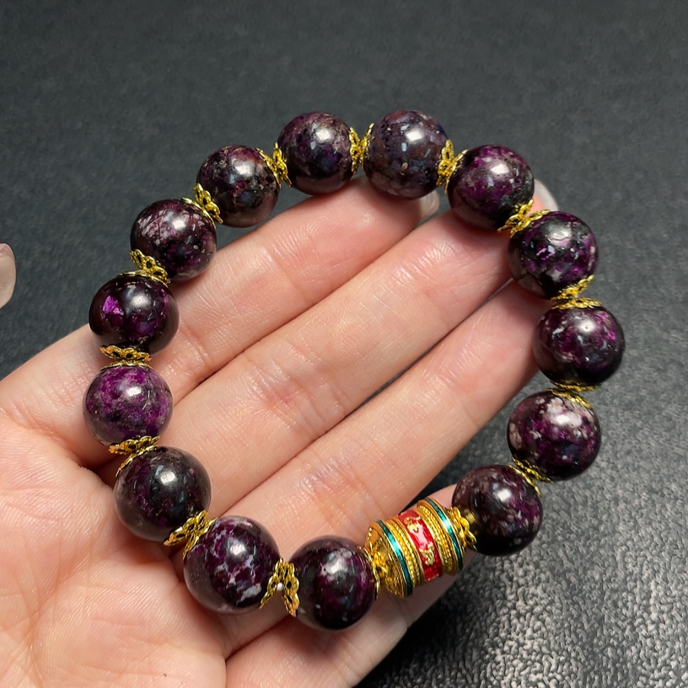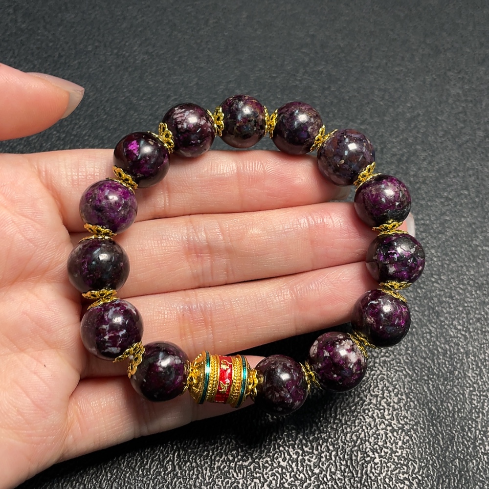 Sugilite Bracelet Purple Only with Other Mineral Components Visible Organic Matter Total Weight Approx. 41.59g Size About 12.4mm Non-Gold Containing Minerals