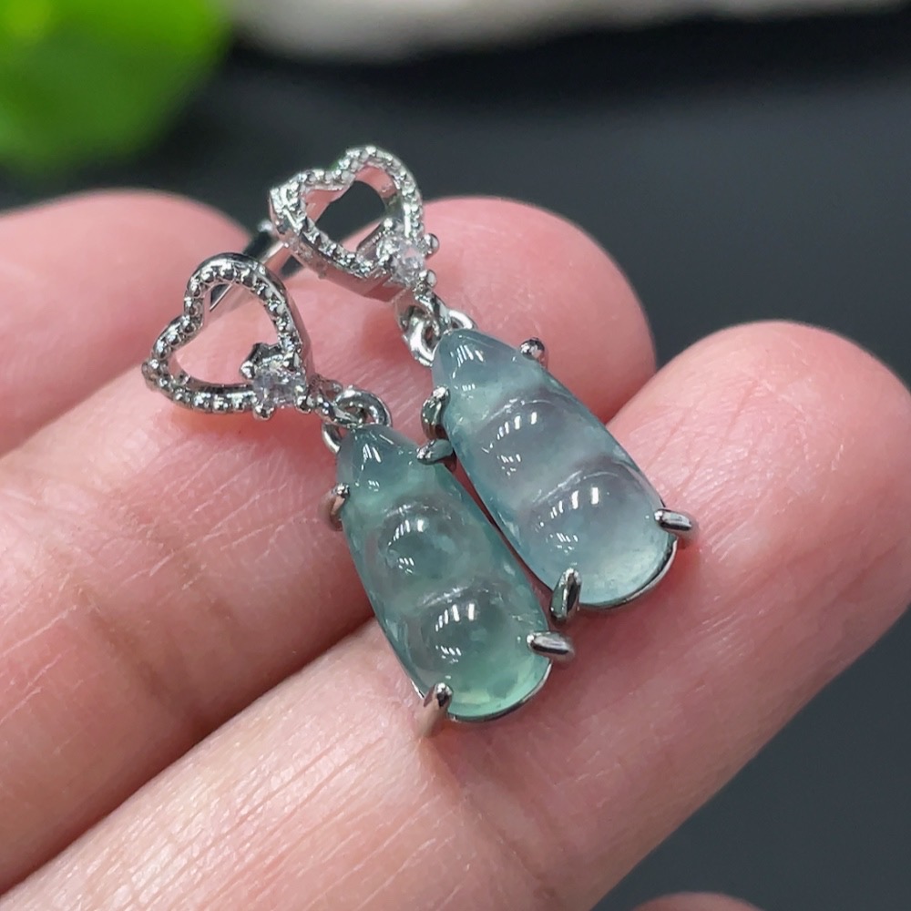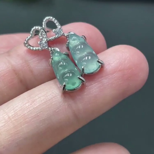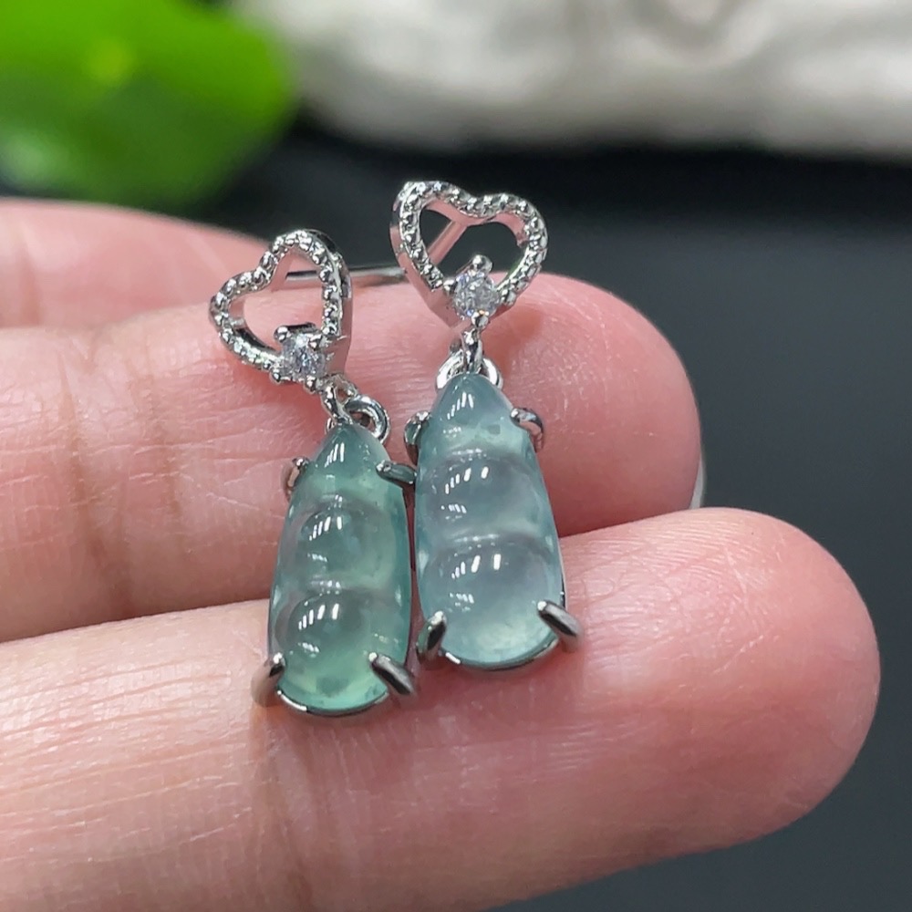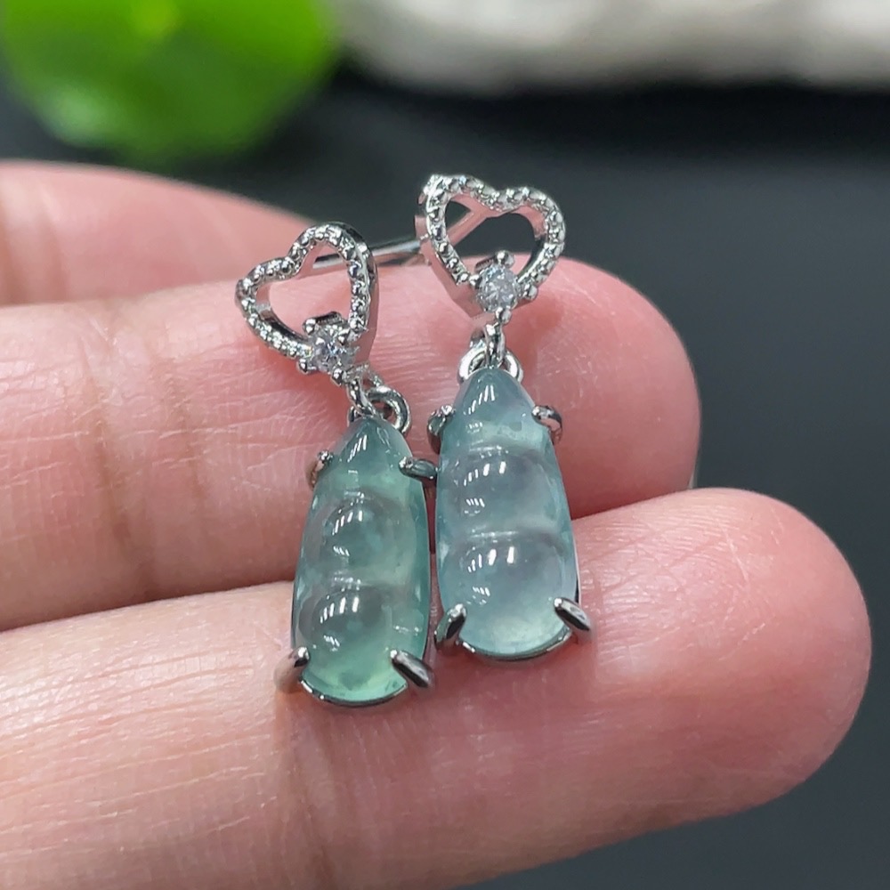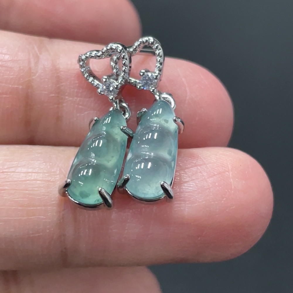 Jadeite Bean Inlaid Earrings Non-Gold Inlaid Total Weight Approx. 2g