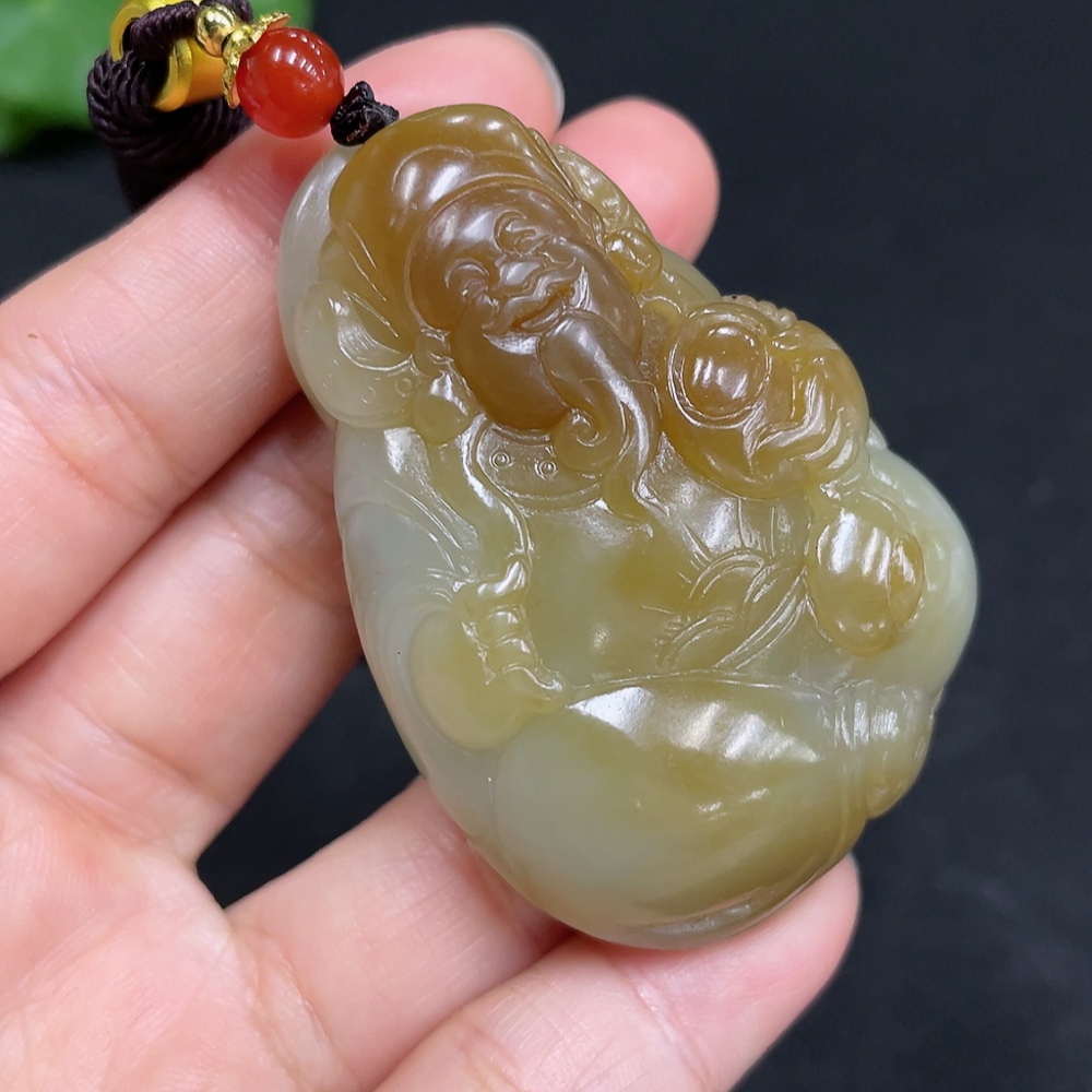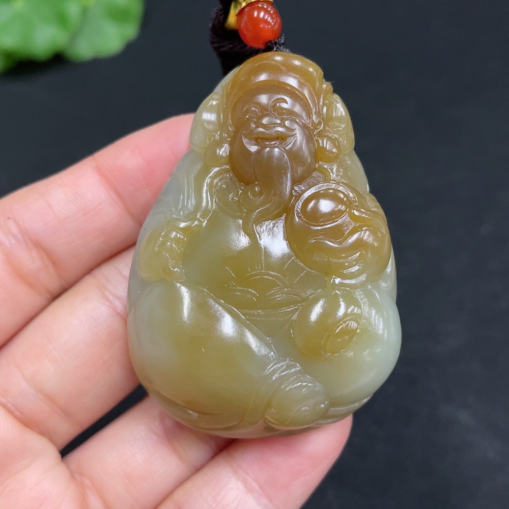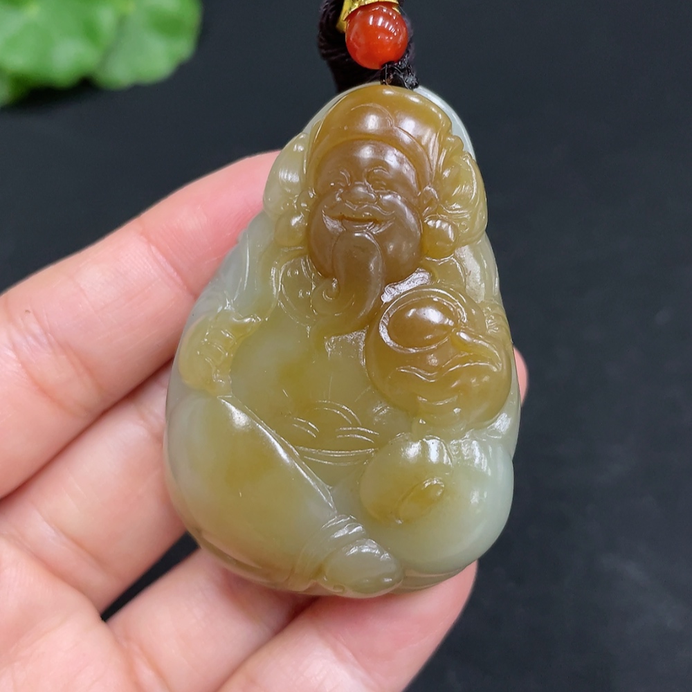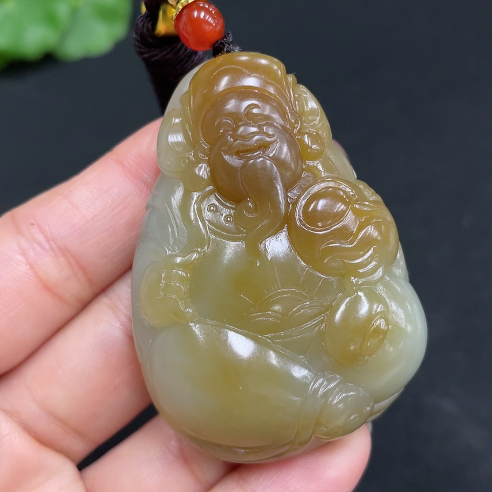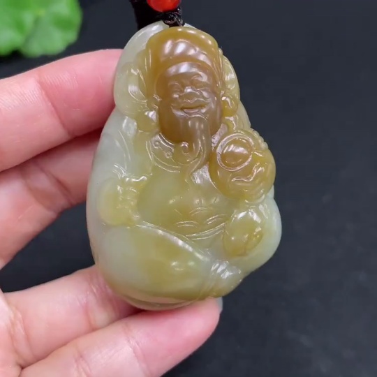 Hetian Jade Pendant God of Wealth Total Weight (with rope) Approx. 58.7g