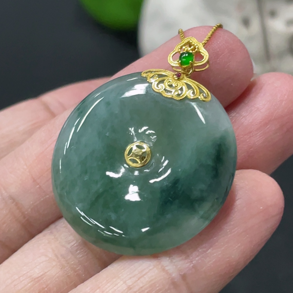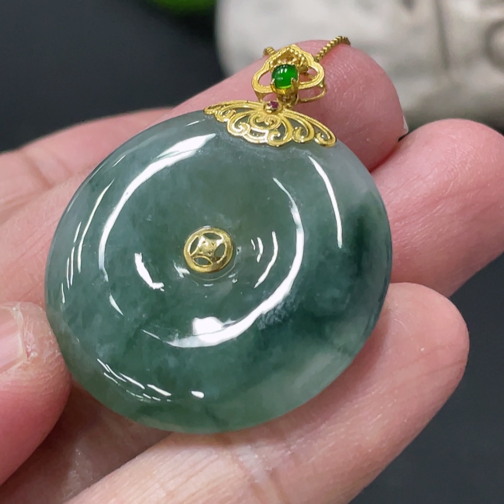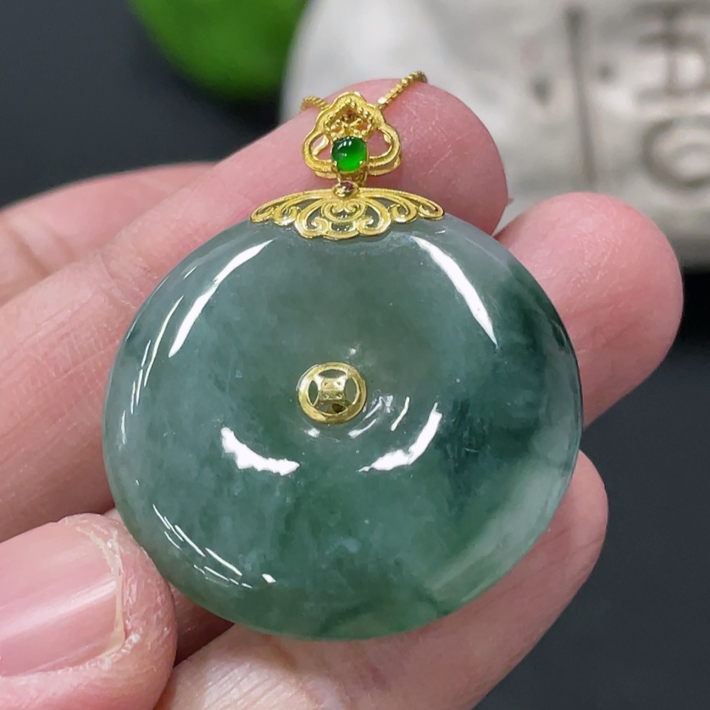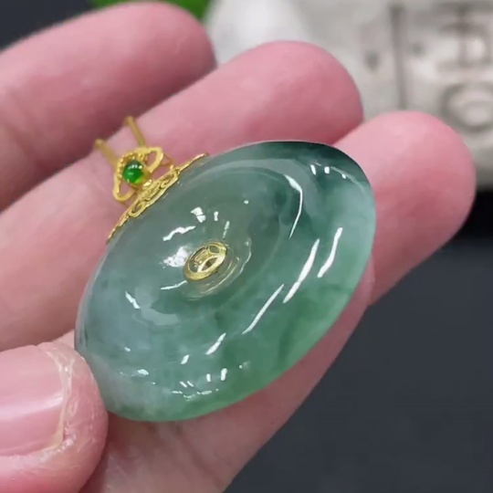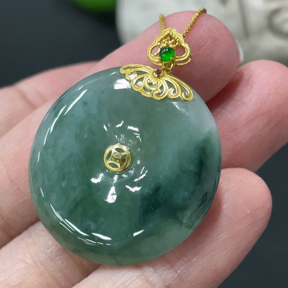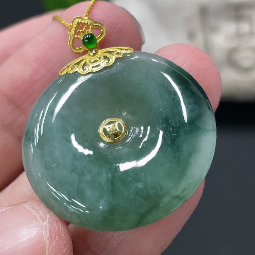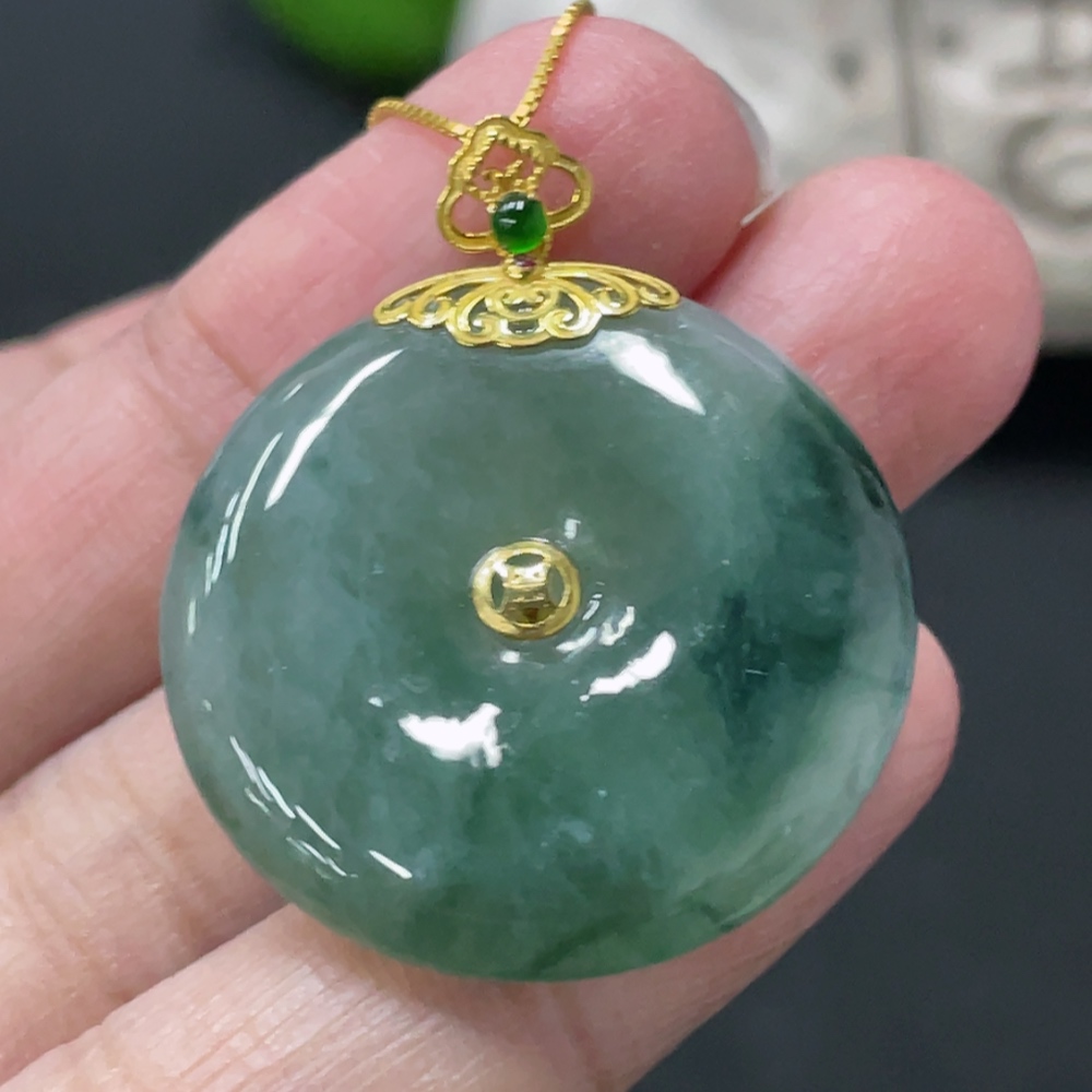 Jadeite Safety Buckle Pendant with 18K Gold Buckle Head, Non-Gold Chain, Item Weight Approximately 9.4g (Excluding Chain)